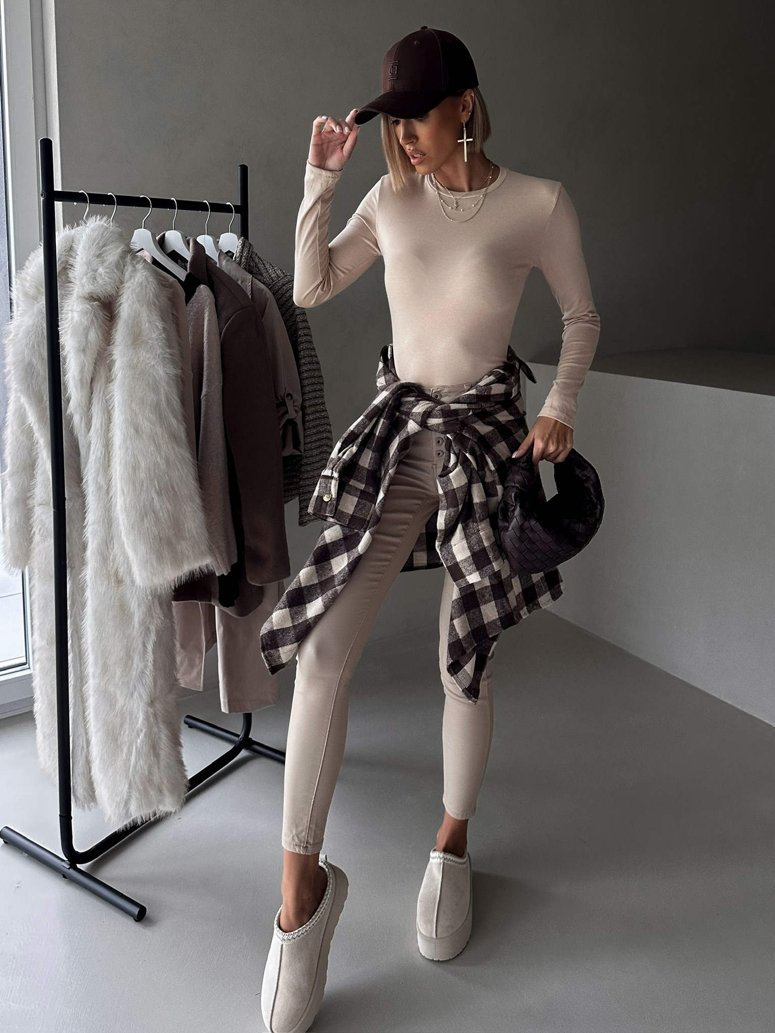 Béžové basic triko EUNIKA s dlouhým rukávem Velikost: M/L