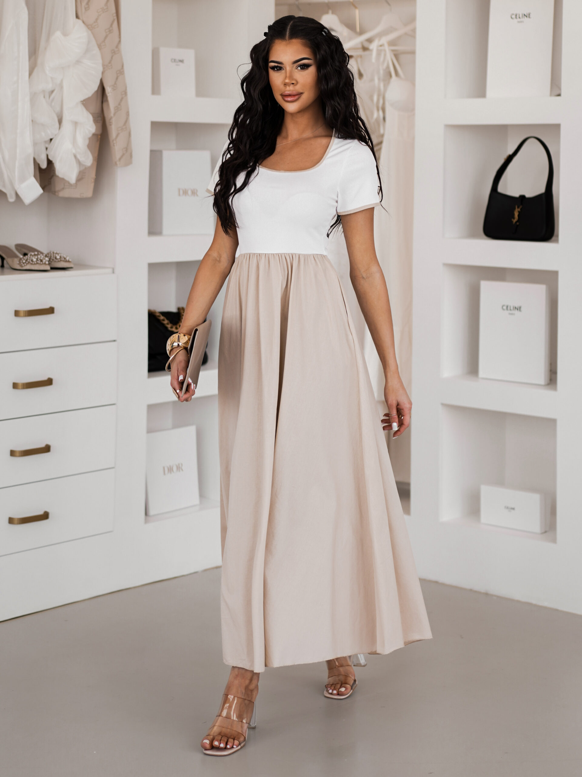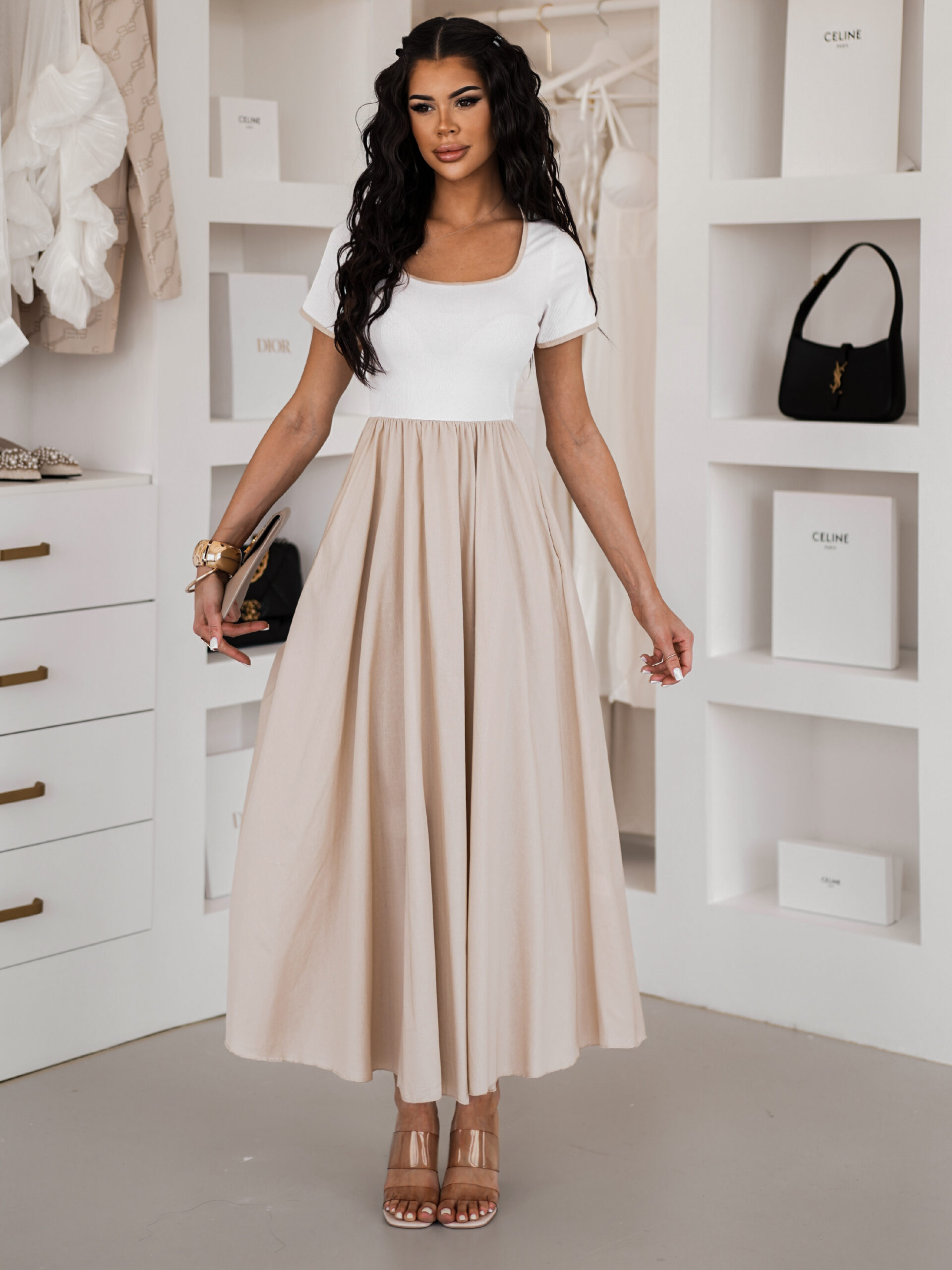 Béžové bavlněné áčkové šaty FLEXTA Velikost: ONESIZE