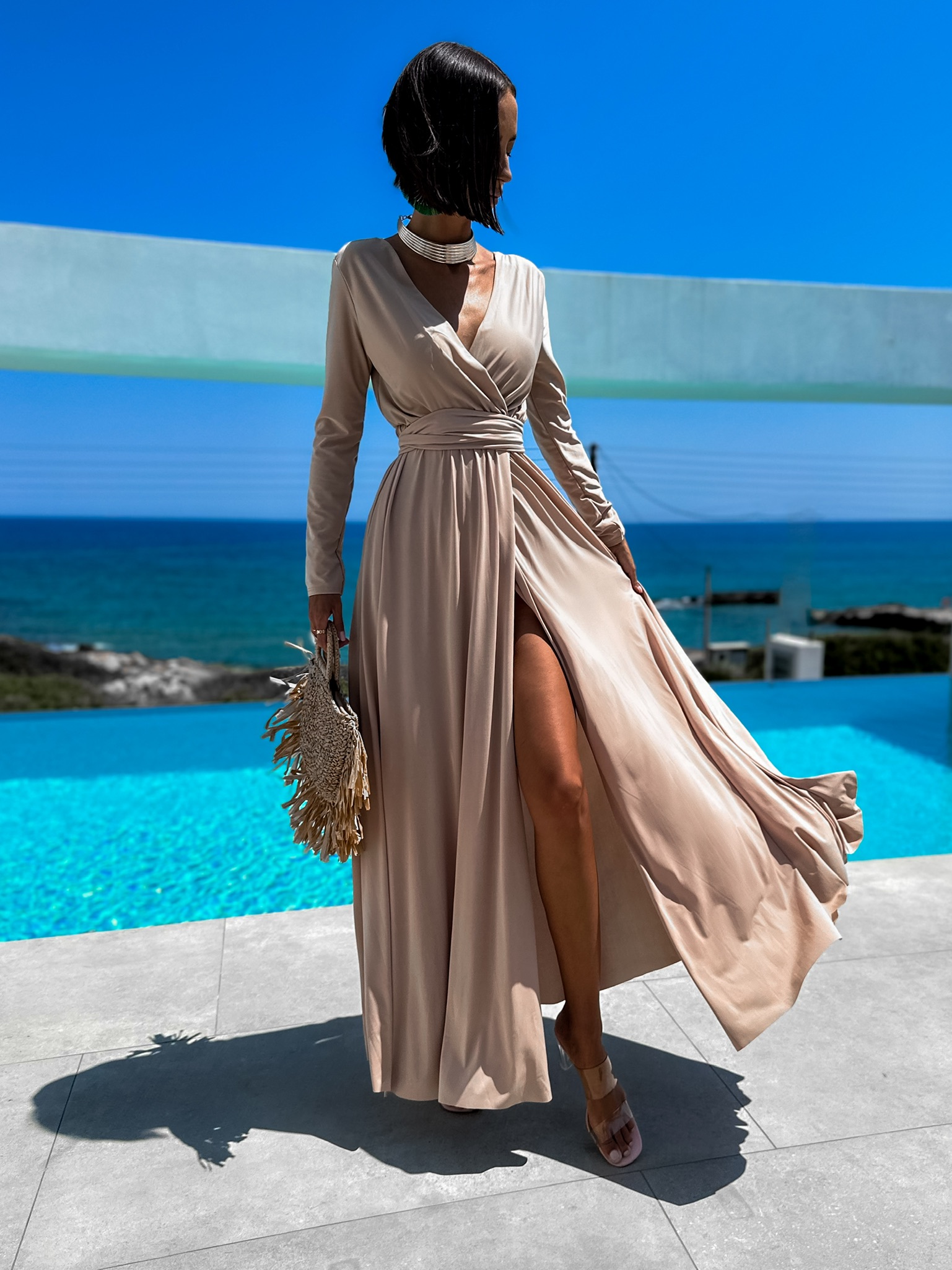 Béžové dlouhé elegantní šaty JOELLIAN Velikost: ONESIZE