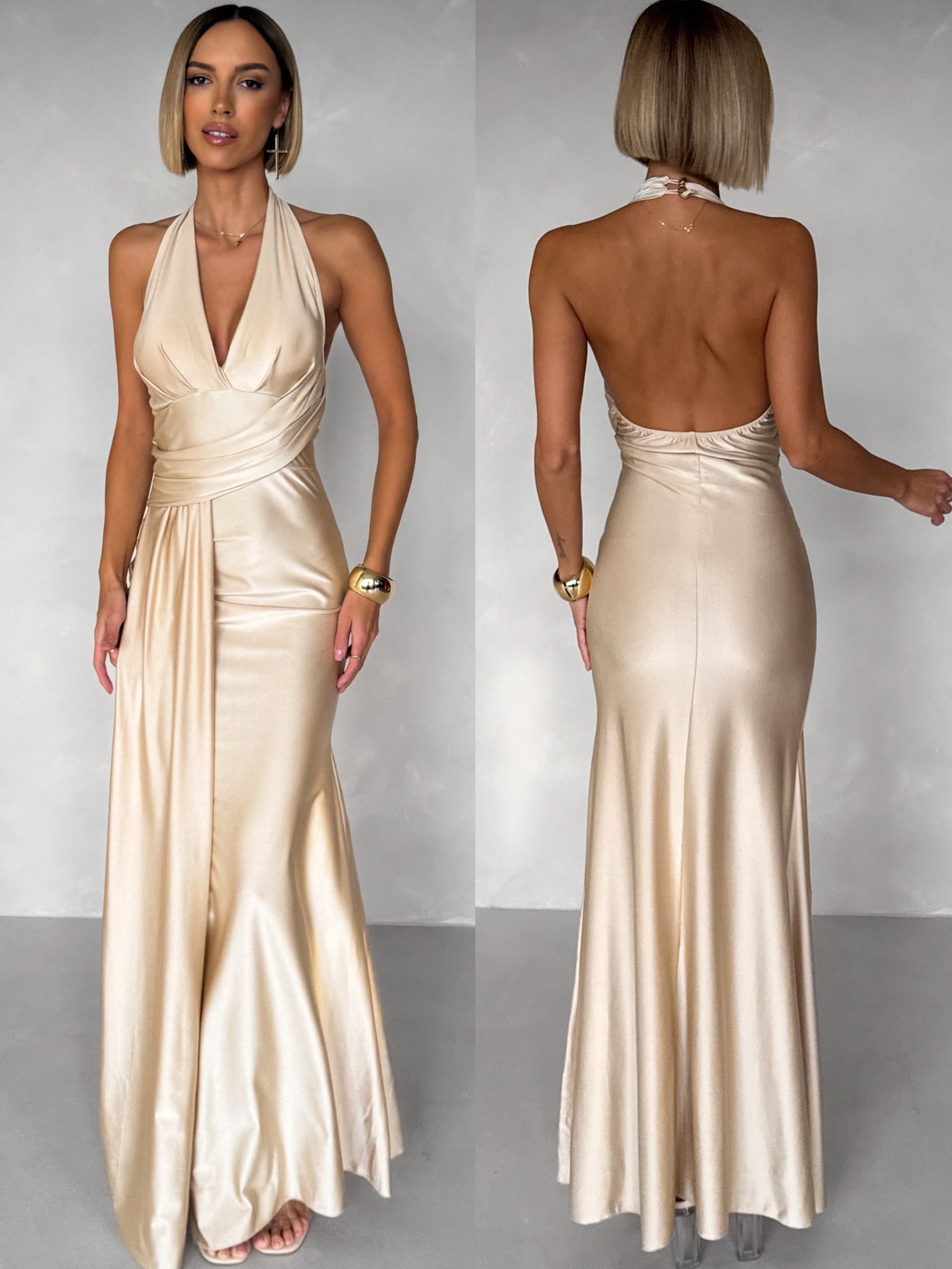 Béžové dlouhé společenské šaty CELESTIA s vlečkou Velikost: ONESIZE