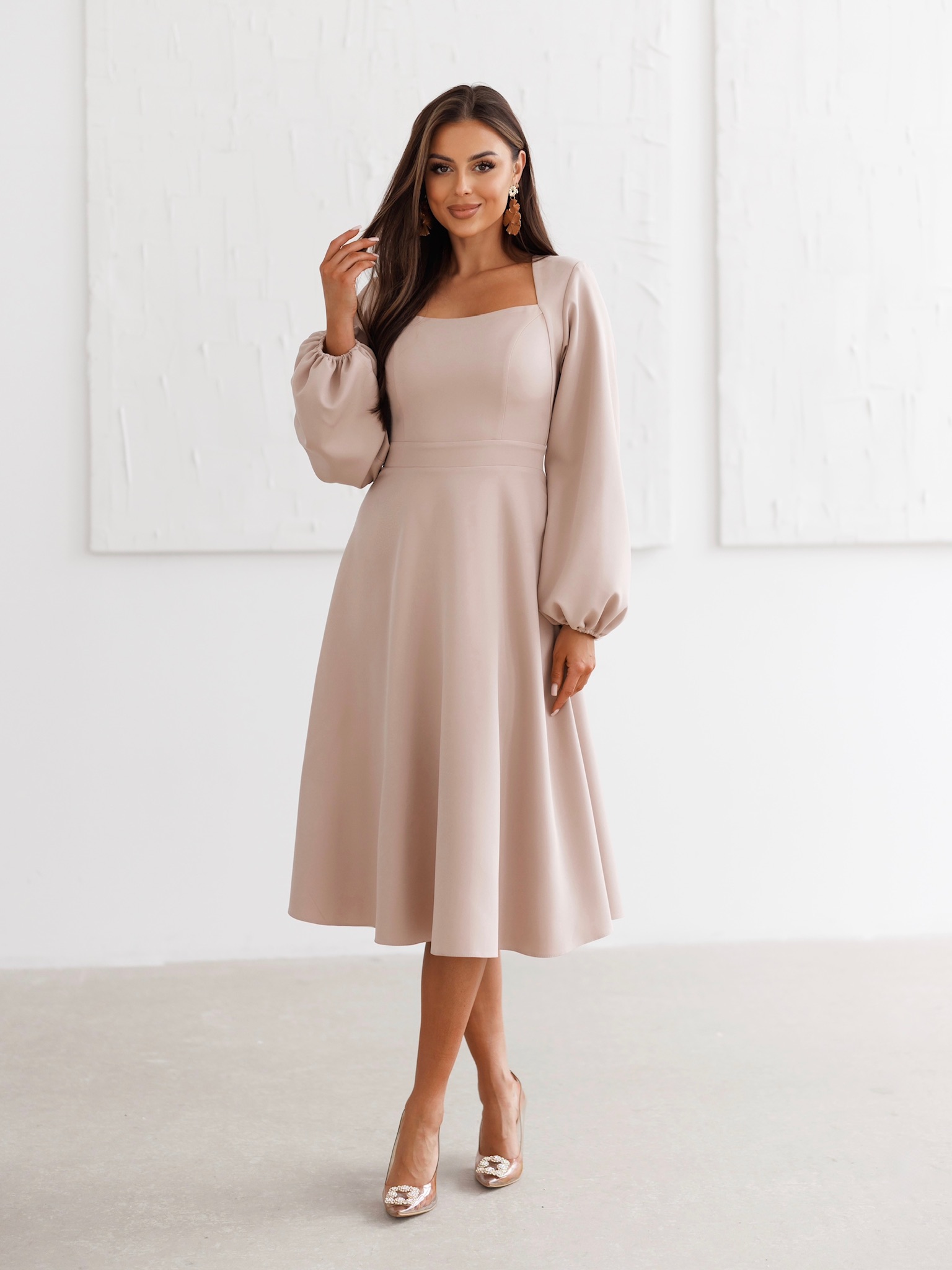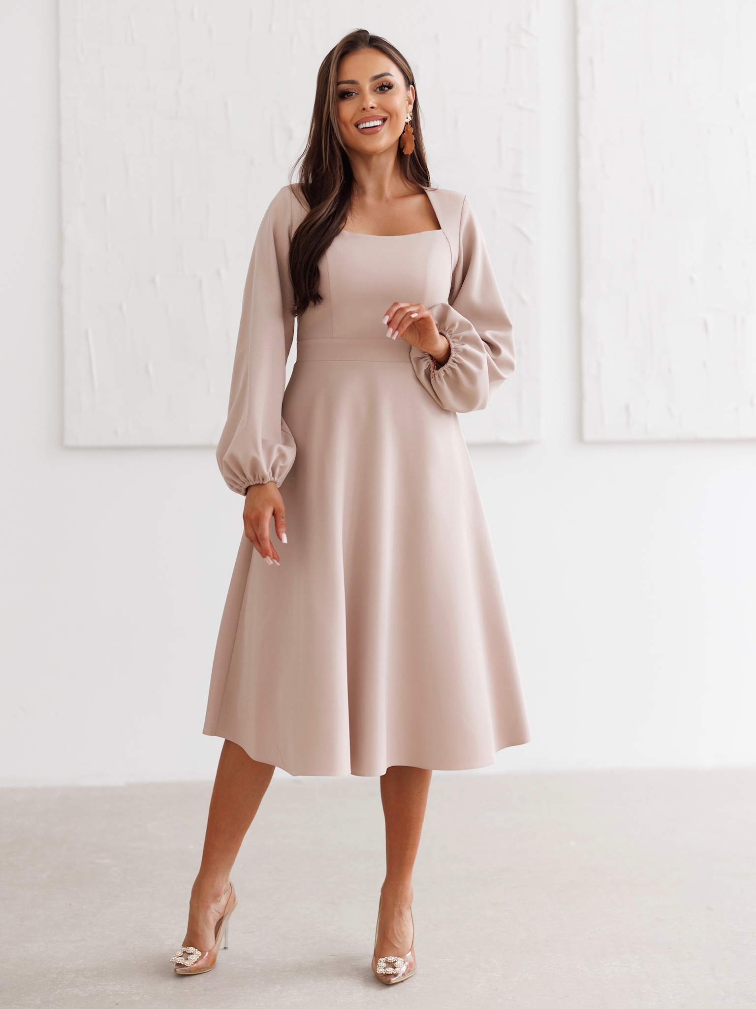 Béžové elegantní společenské midi šaty MARAYA Velikost: L