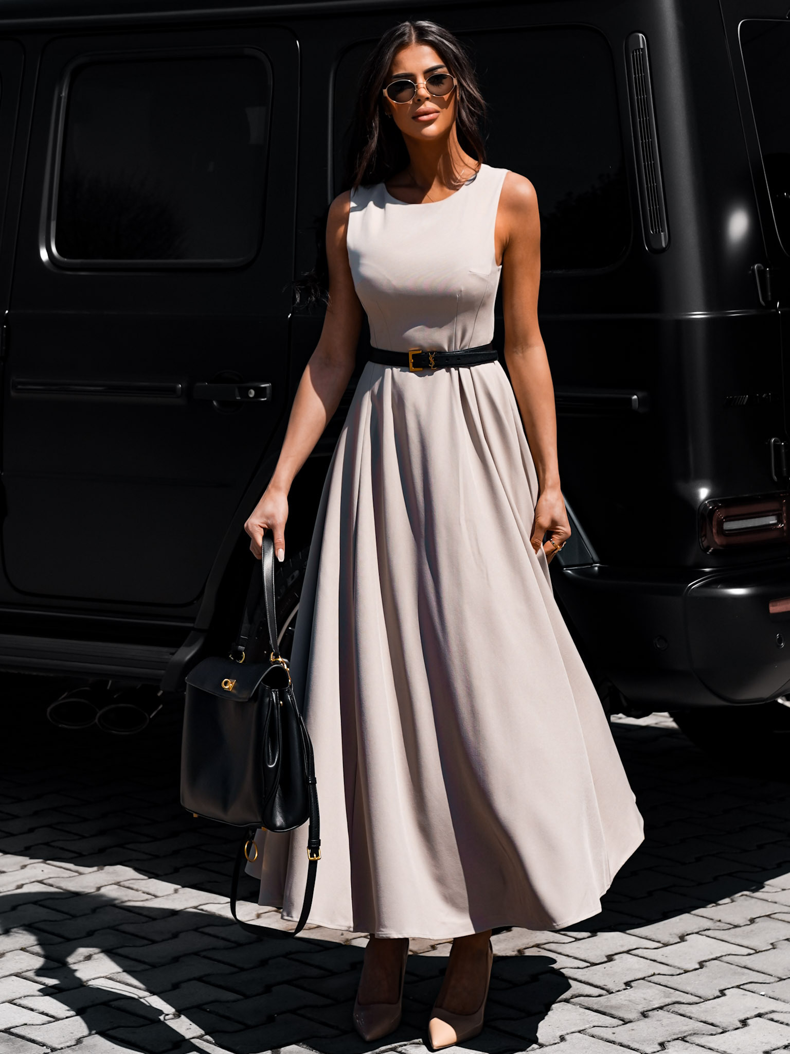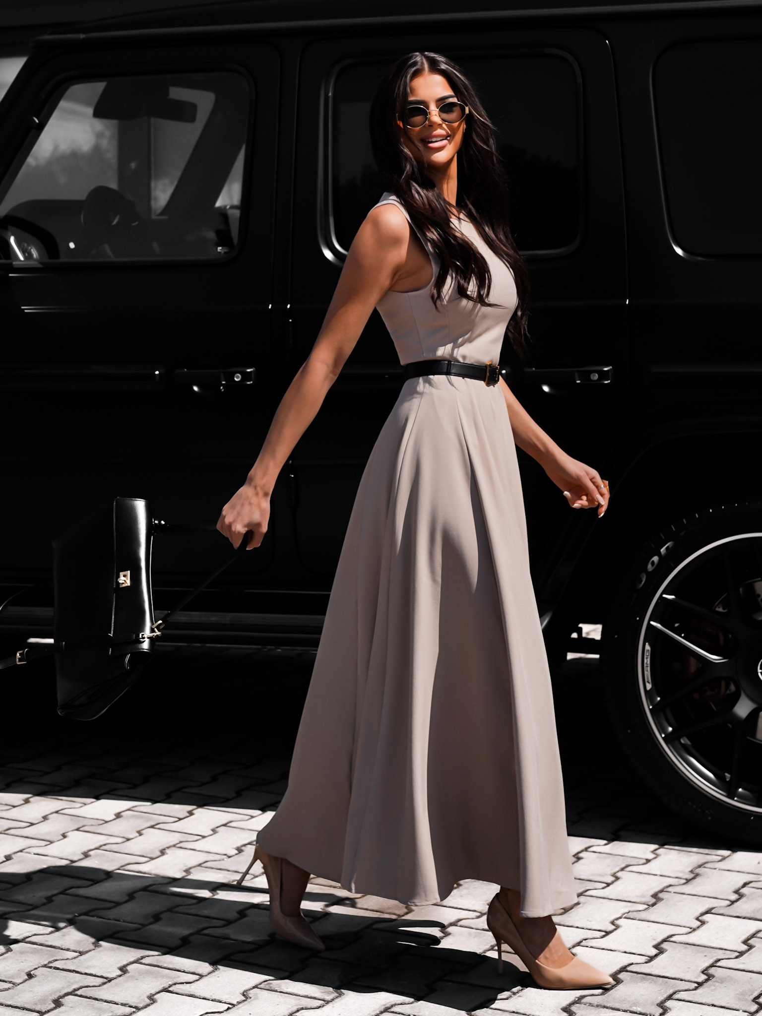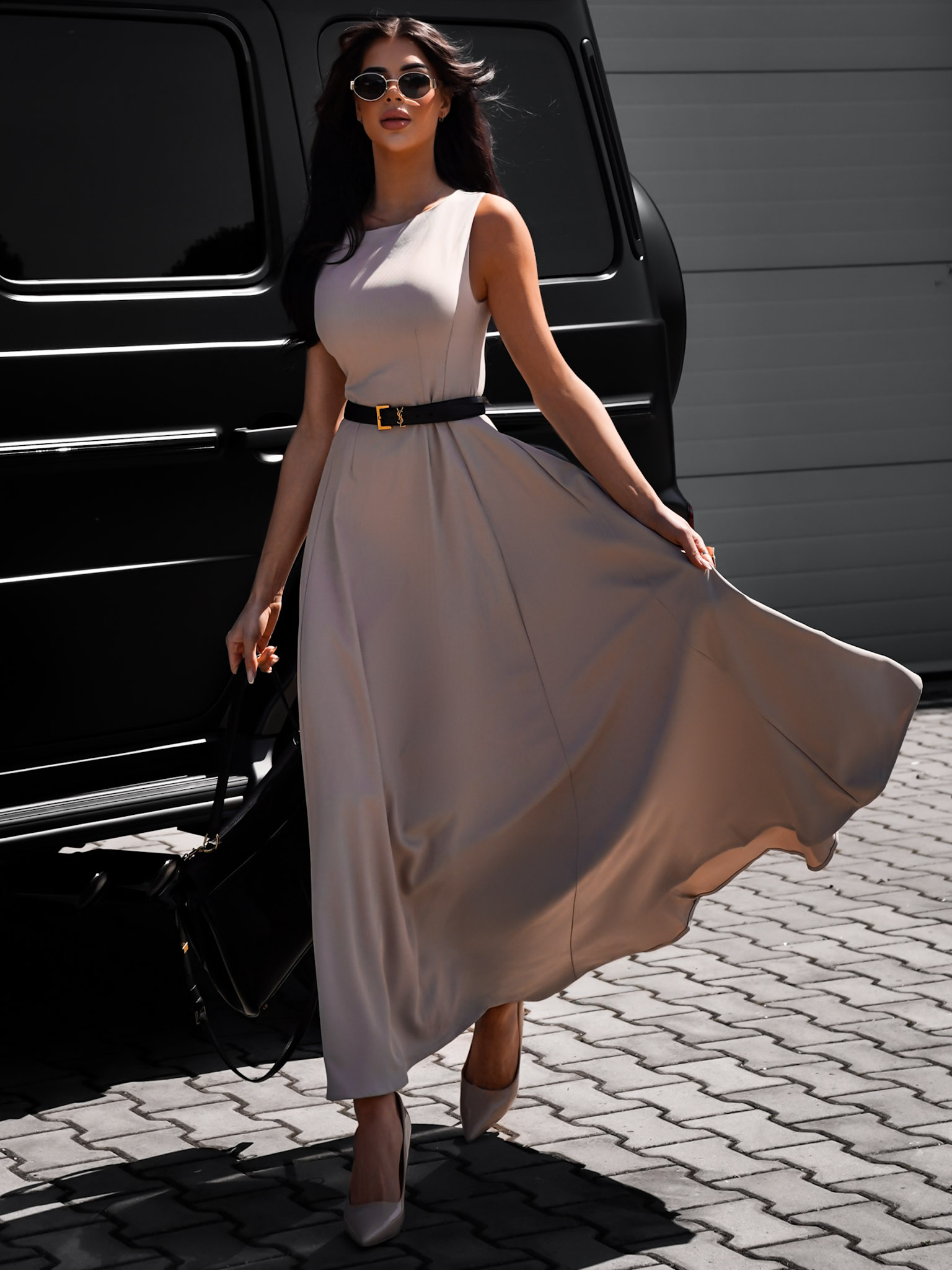 Béžové pouzdrové dlouhé midi šaty SHANKI Velikost: S