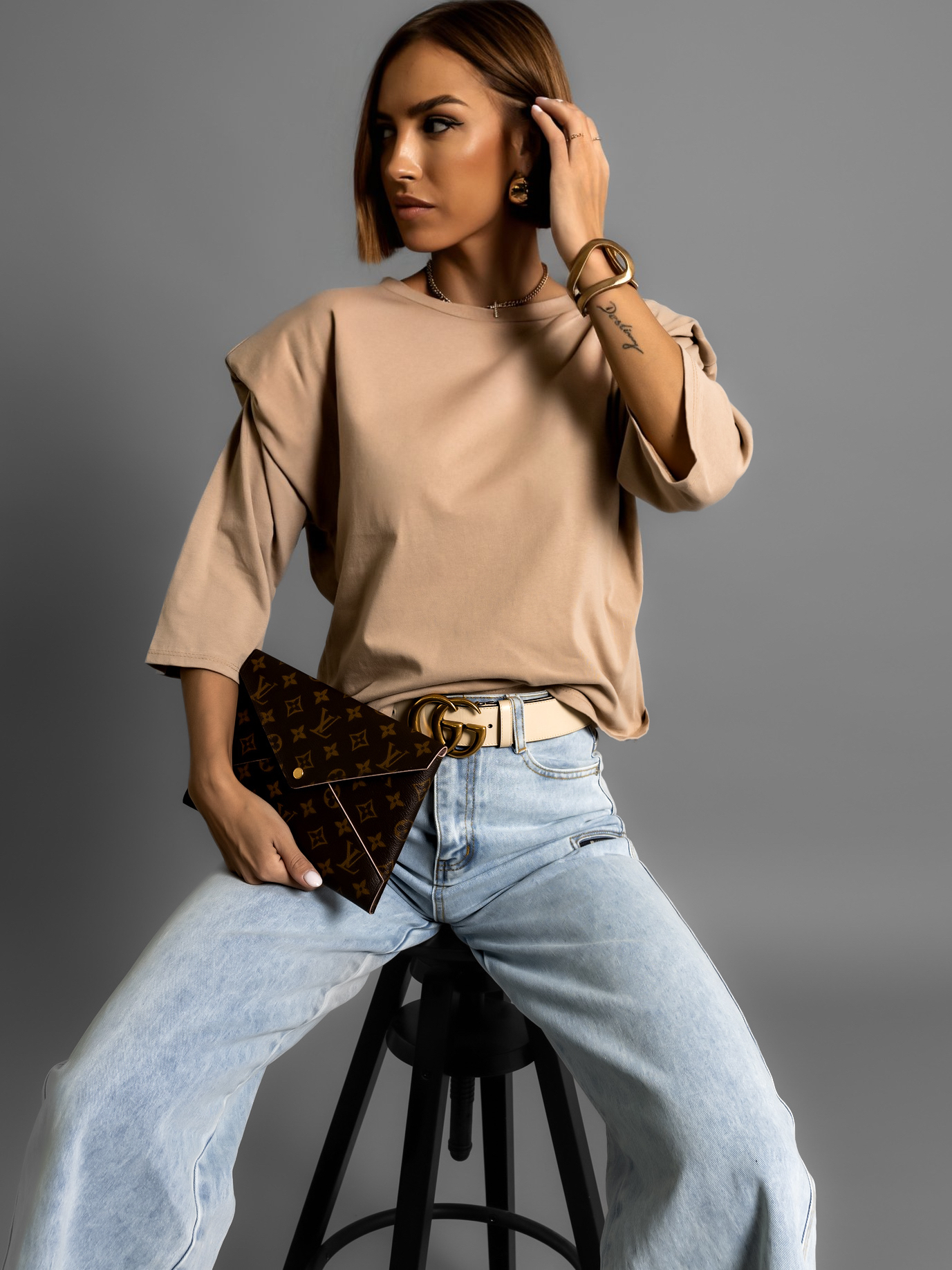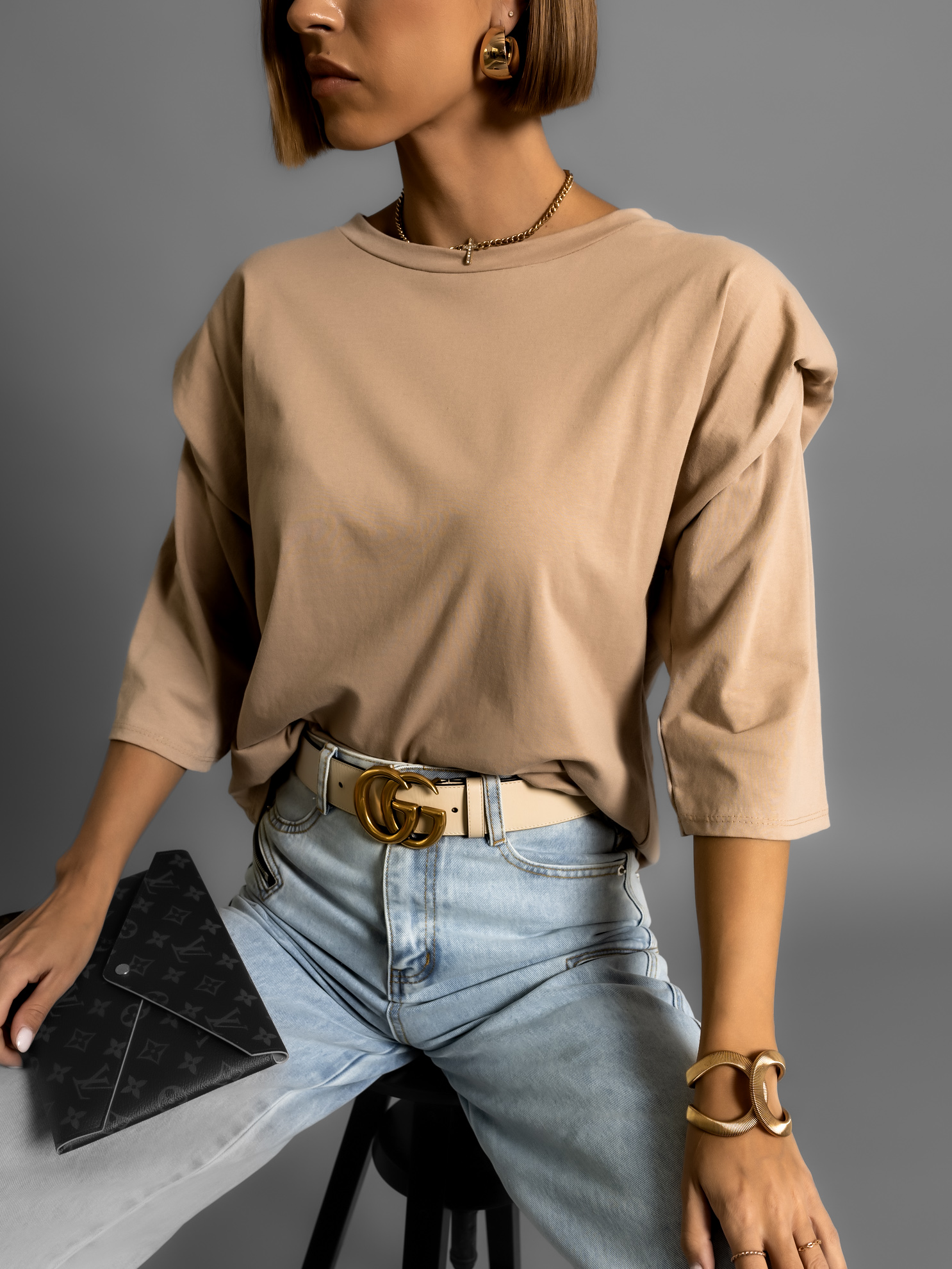 Béžové triko RALPH s vycpávkami na ramenou Velikost: ONESIZE