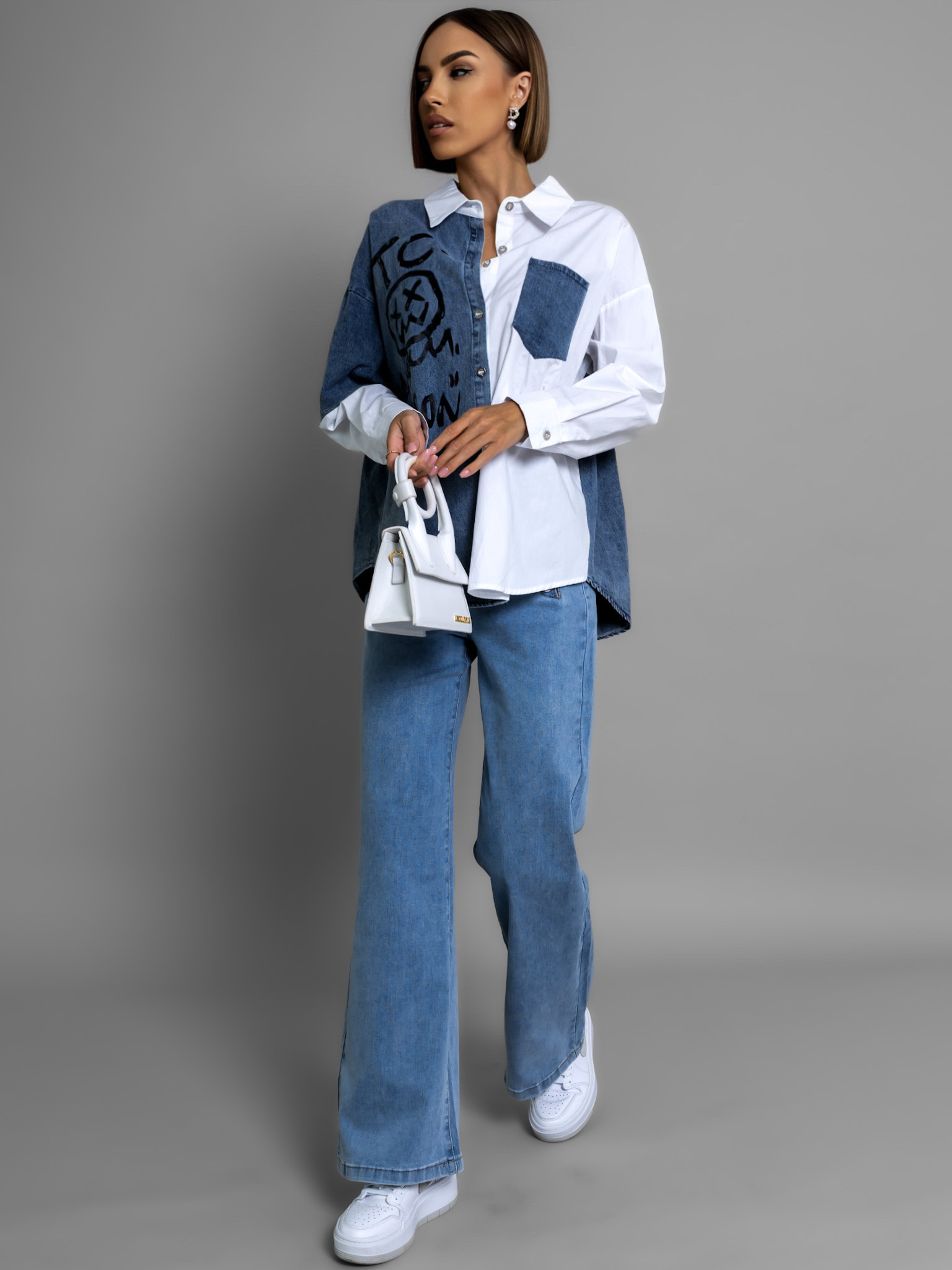 Bílá denim oversized košile MILAGROS Velikost: ONESIZE