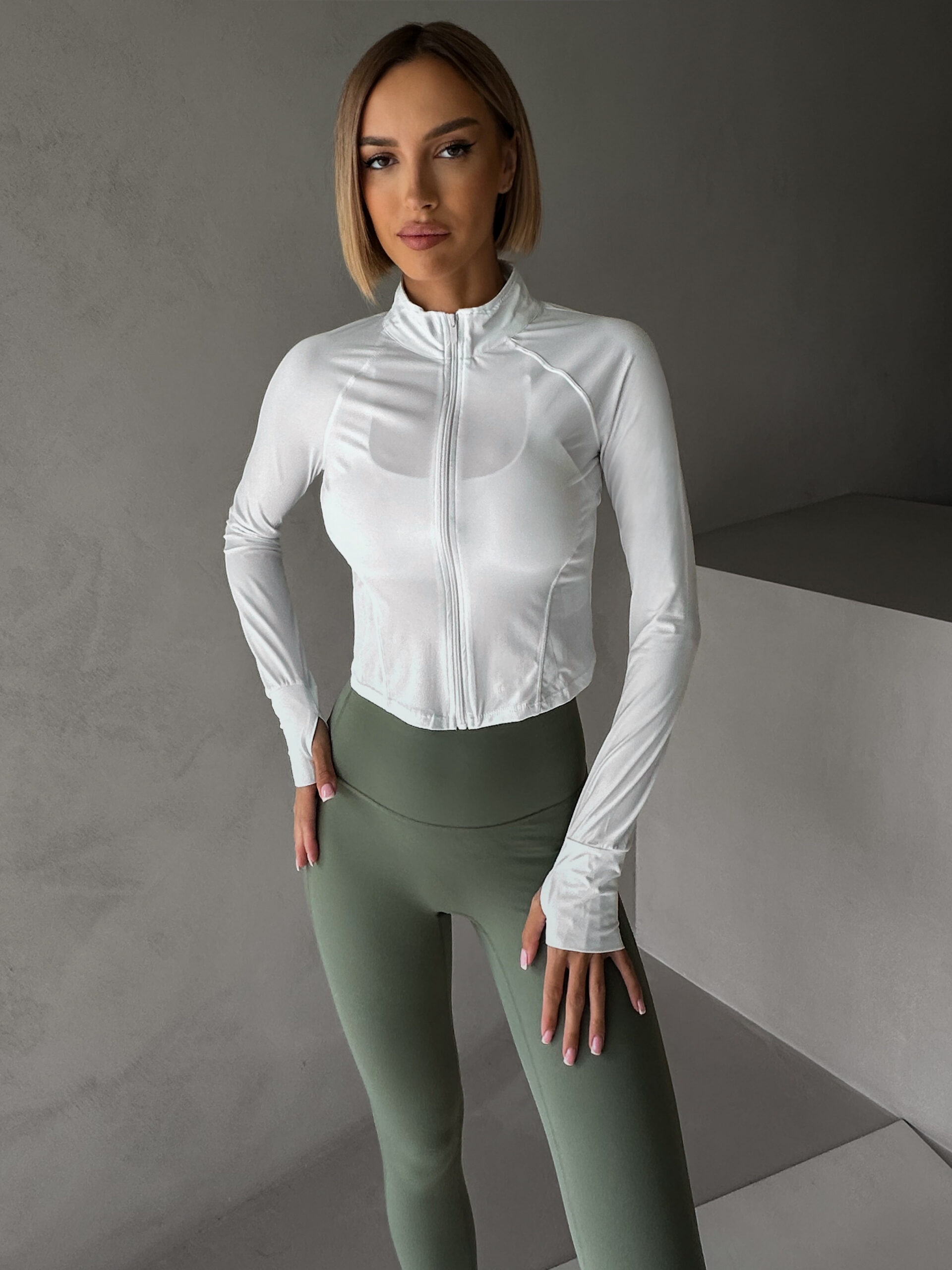 Bílá sportovní mikina OMIREY na zip Velikost: L