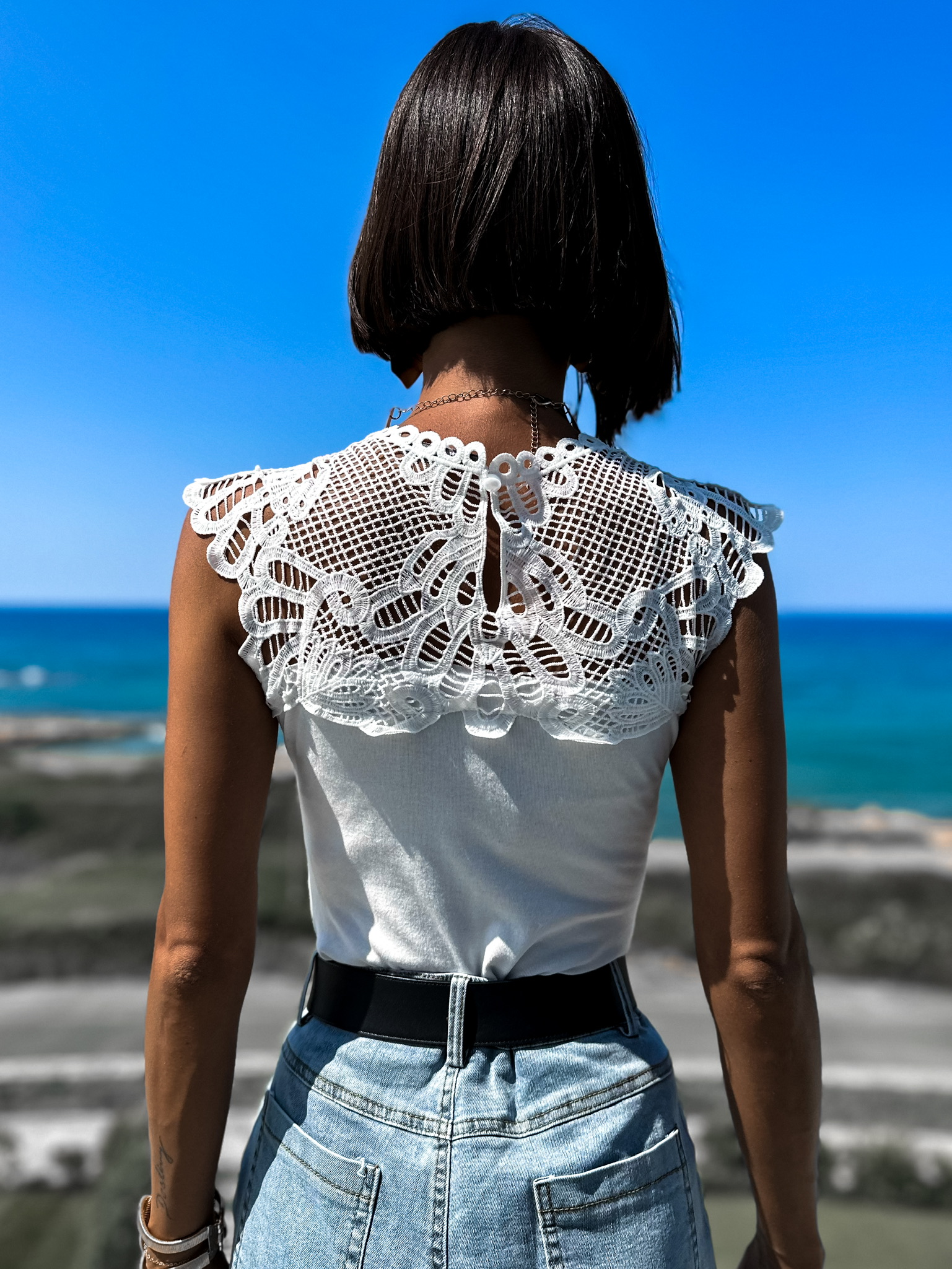Bílé elegantní body BIBLONES s krajkou Velikost: M/L