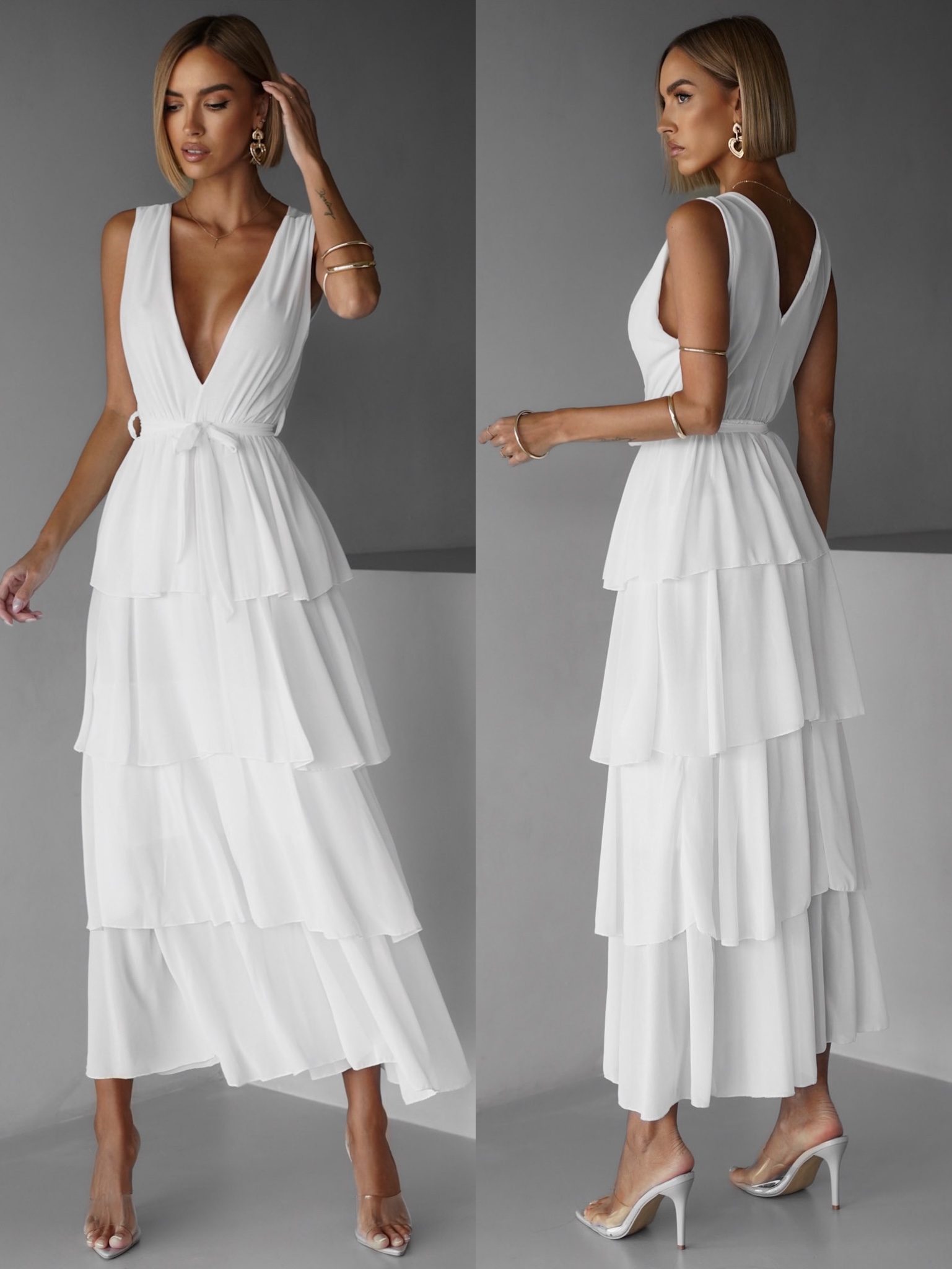Bílé elegantní dlouhé šaty SUSANI s volánky Velikost: ONESIZE