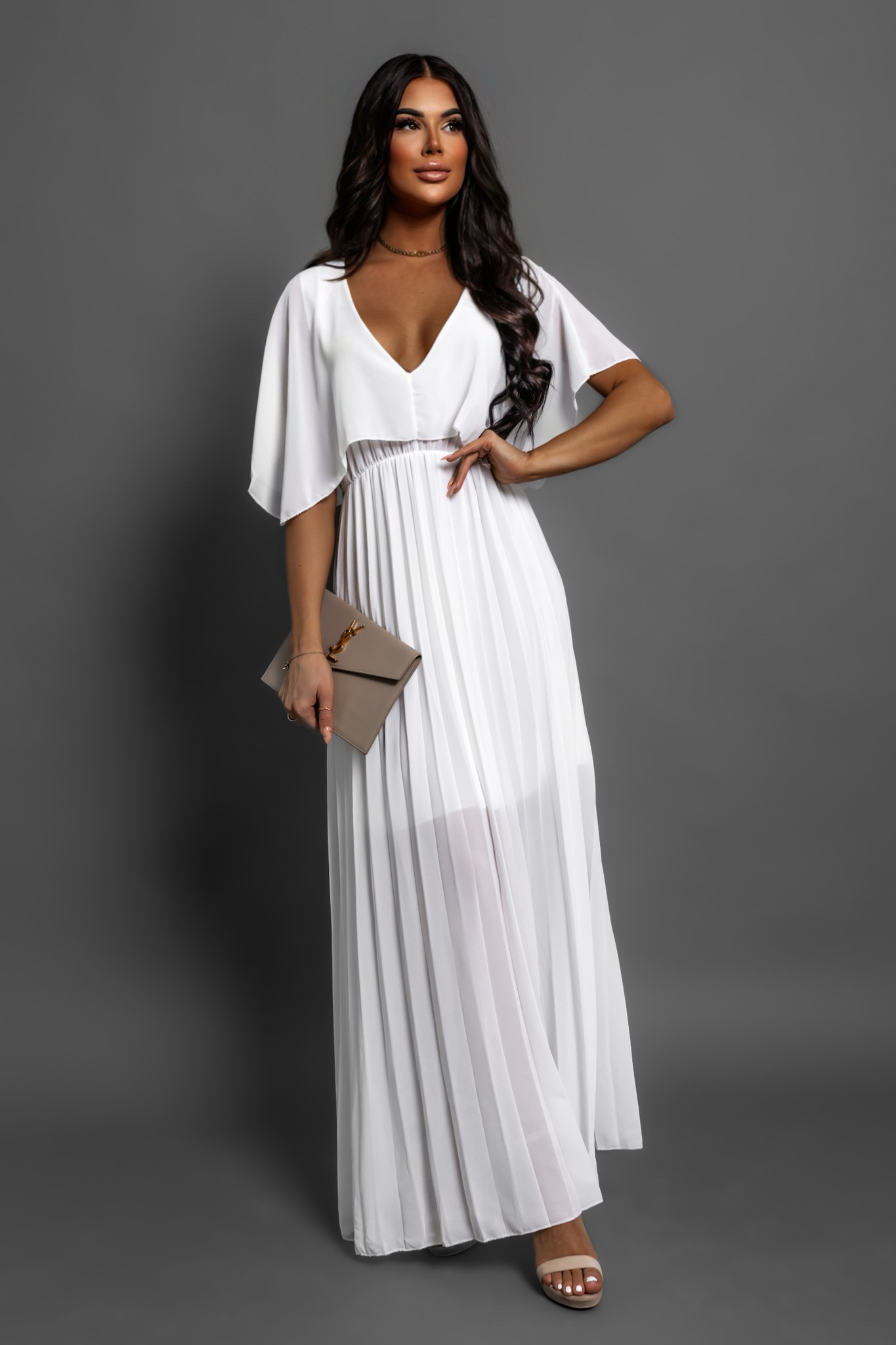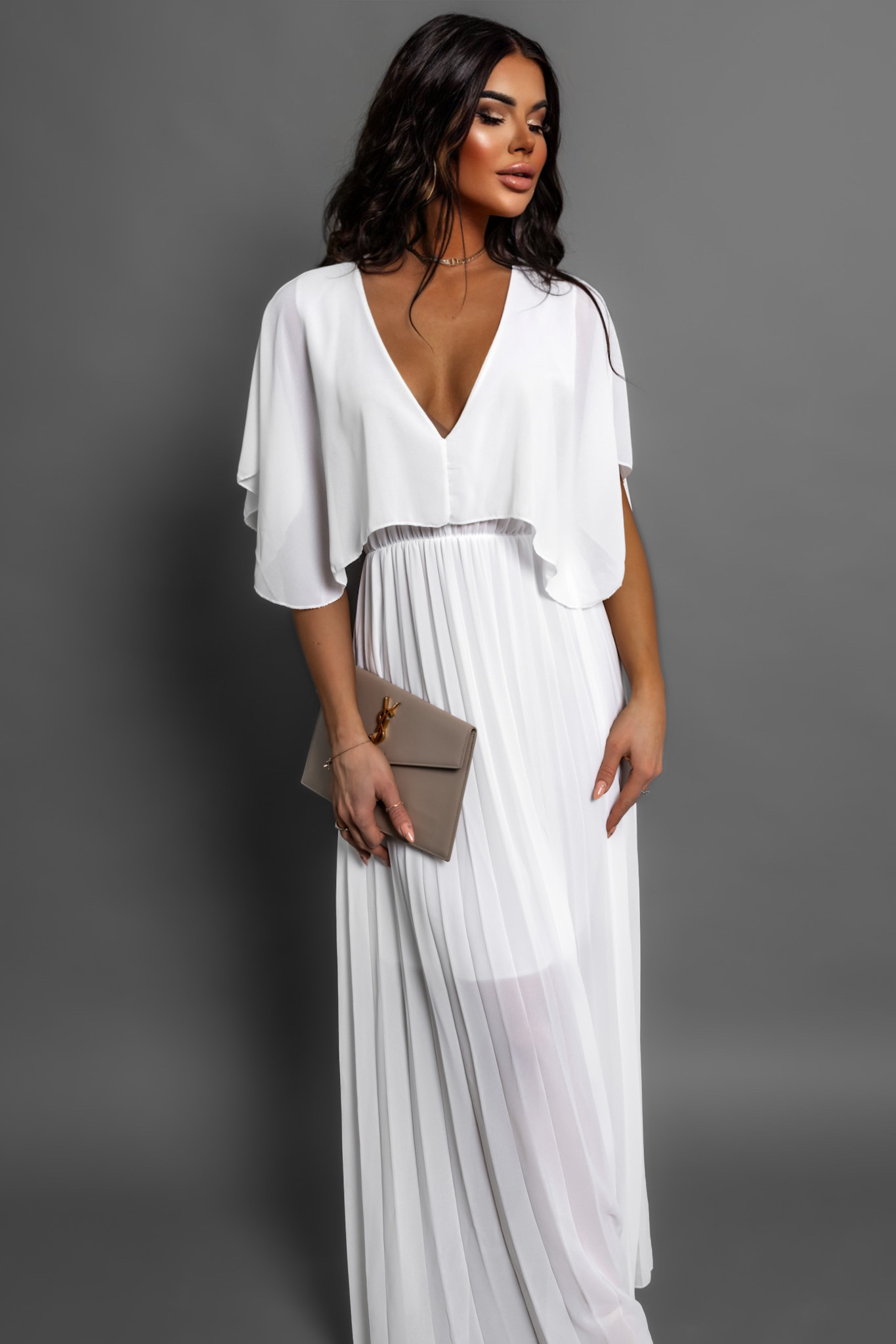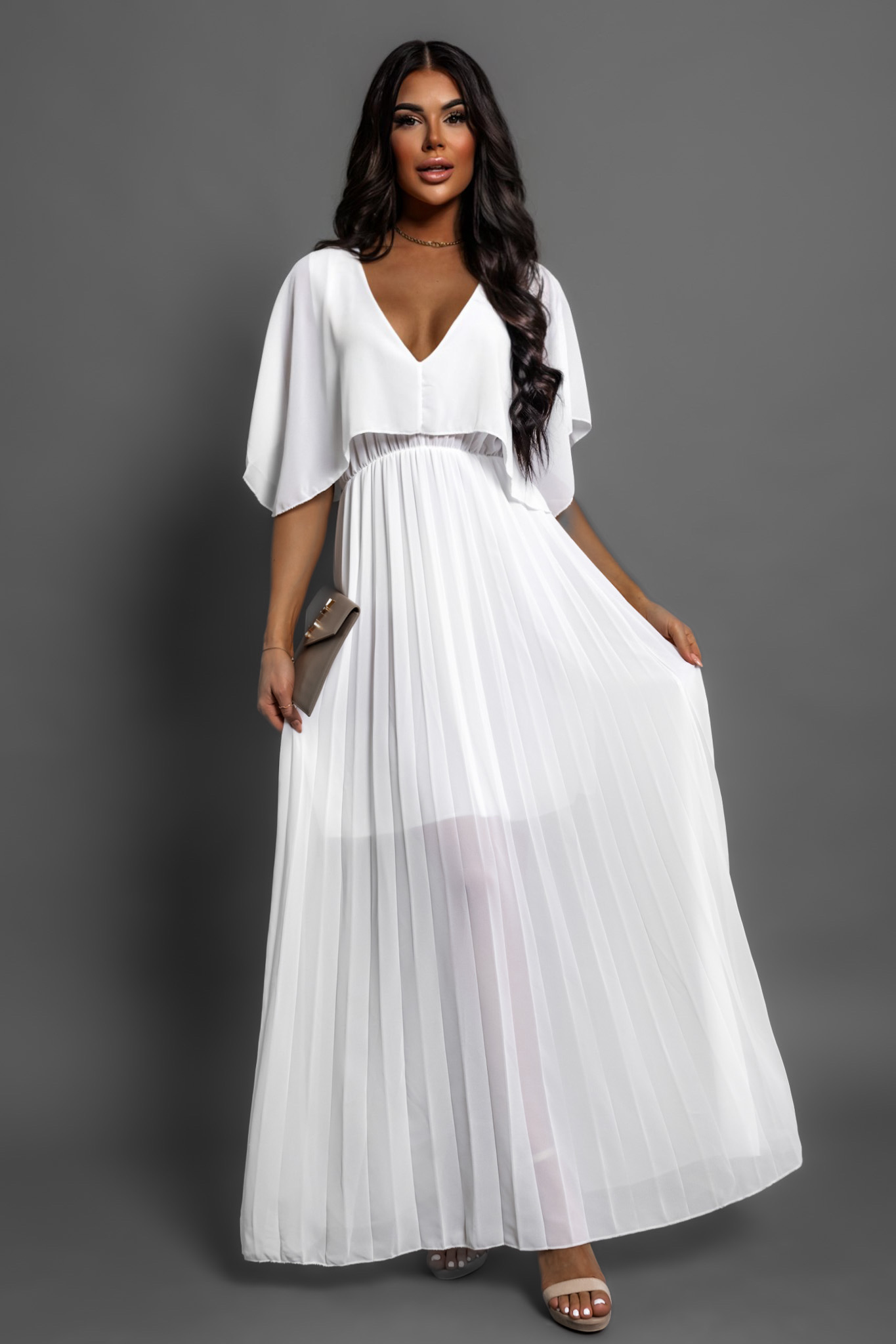 Bílé elegantní šaty PARFOMELLE s výsřihem do V