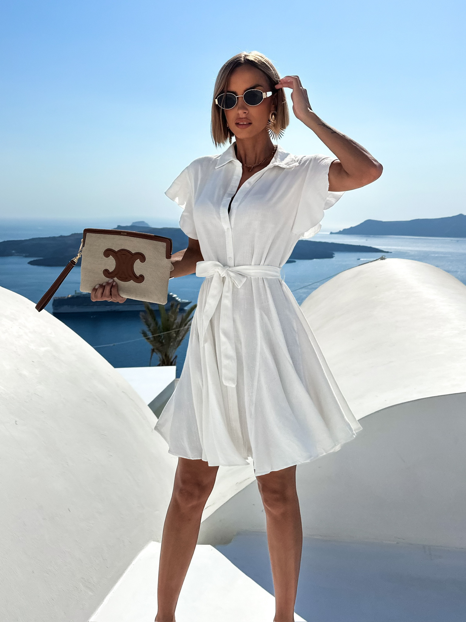 Bílé lněné košilové šaty VASTIDE s vázáním Velikost: M/L