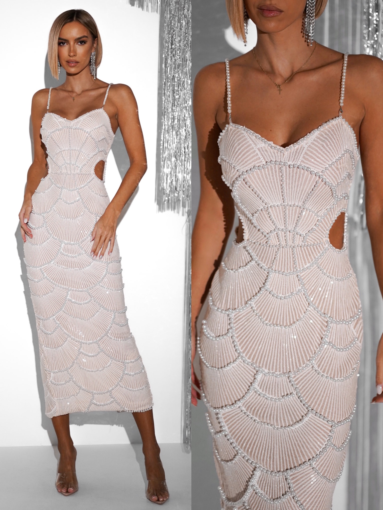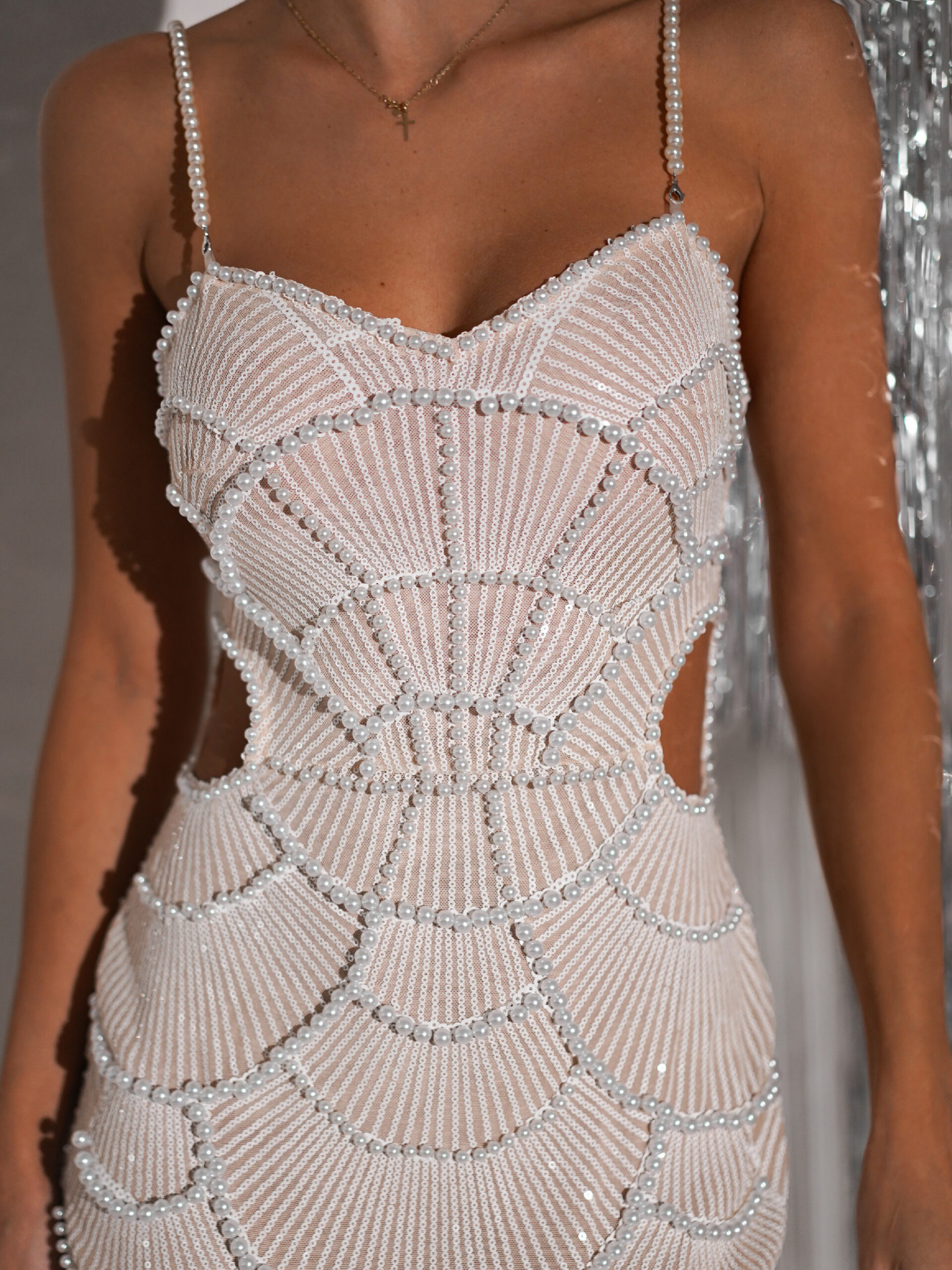 Bílé luxusní třpytivé večerní šaty LUMPUR Velikost: L