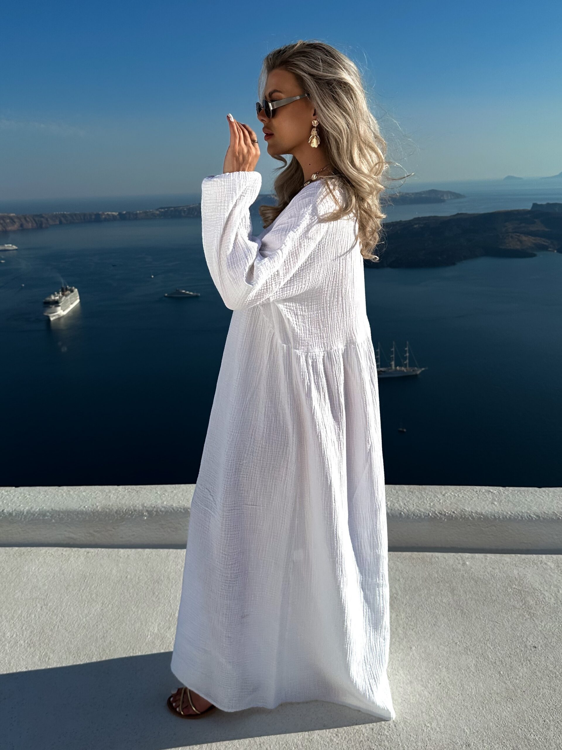 Bílé mušelínové dlouhé oversize šaty CHASTE Velikost: ONESIZE