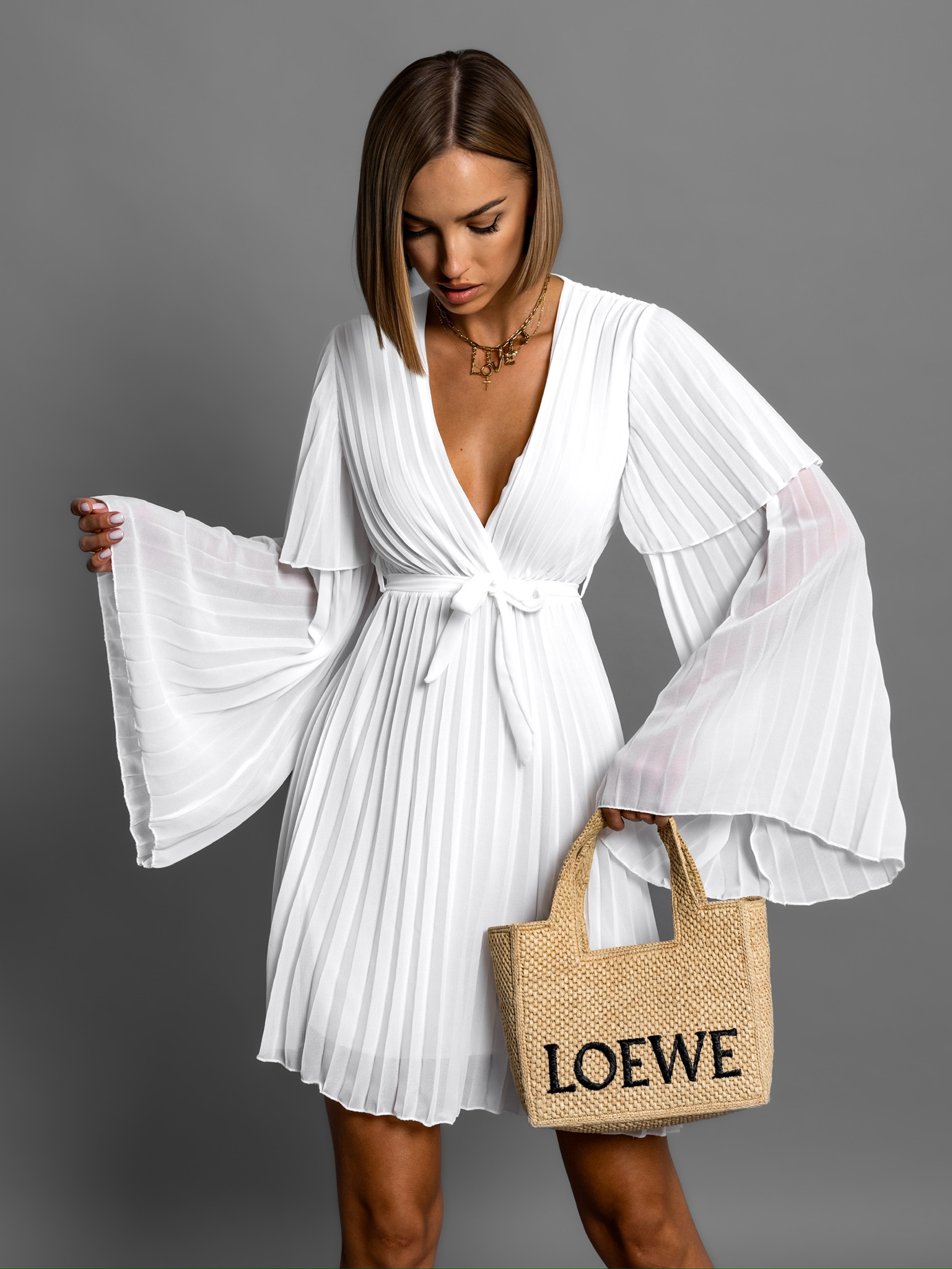 Bílé plisované krátké šaty KAROLIN na zavazování Velikost: ONESIZE