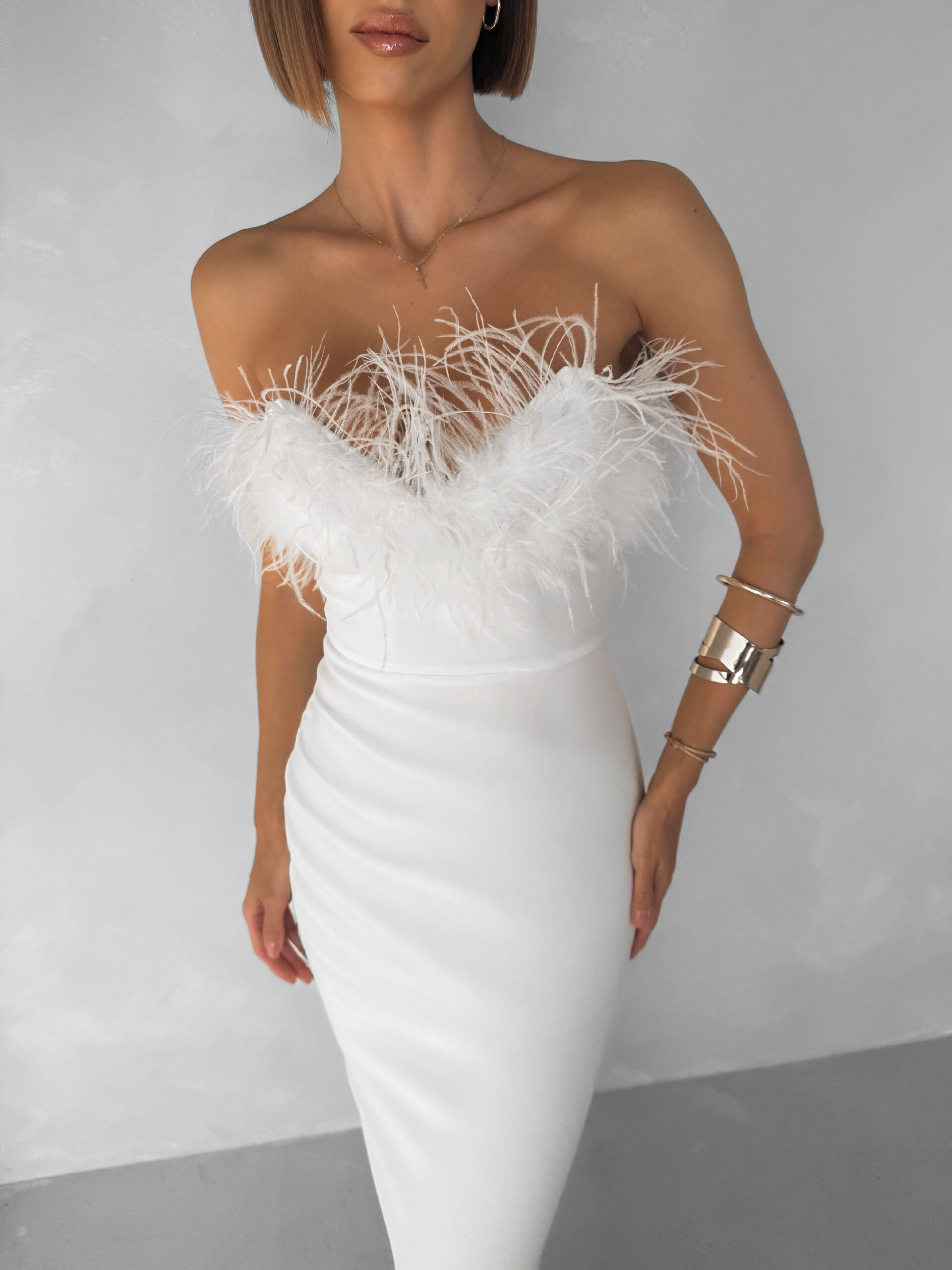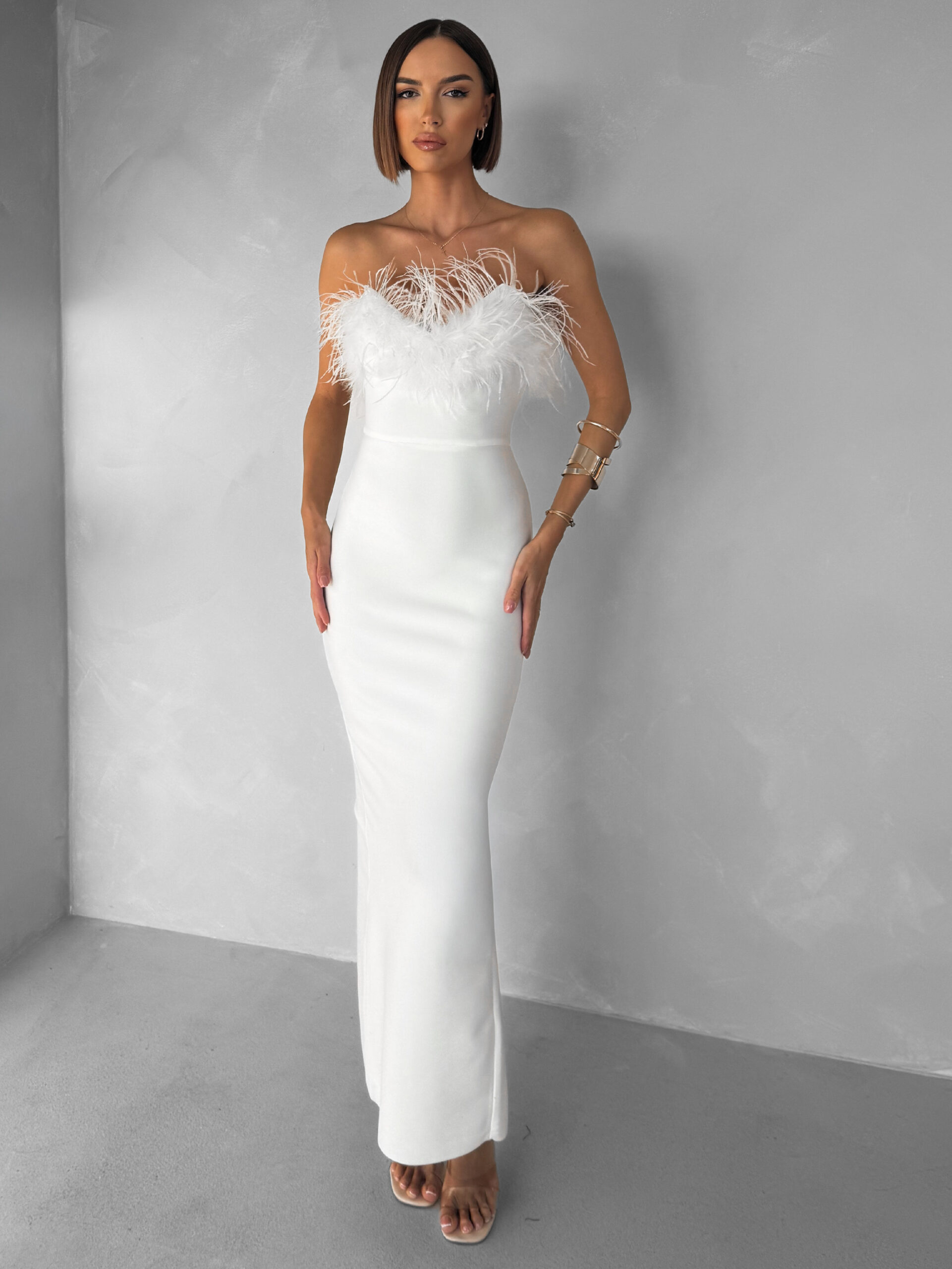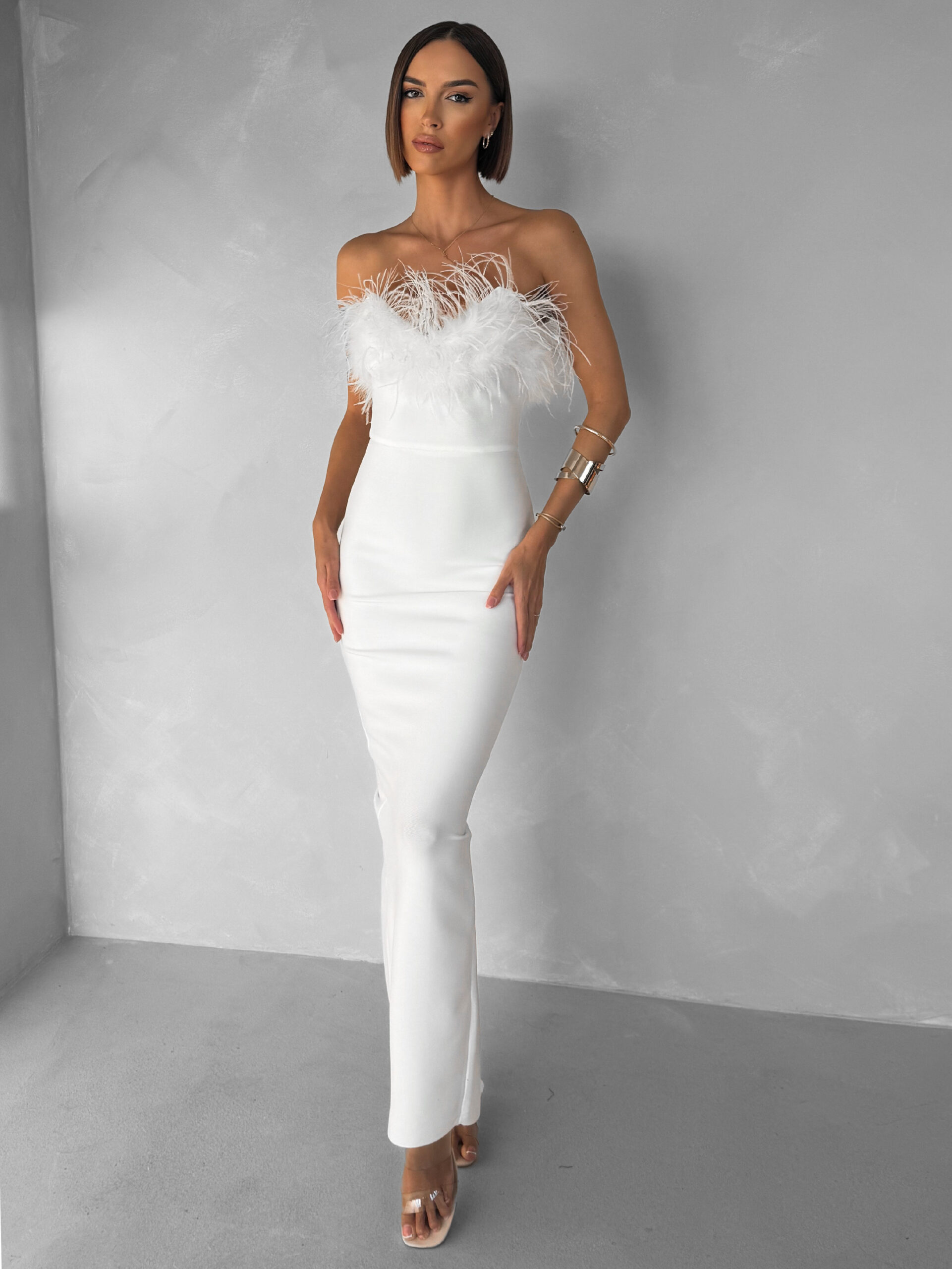Bílé společenské vypasované dlouhé šaty BELSANTE s rozparkem Velikost: L