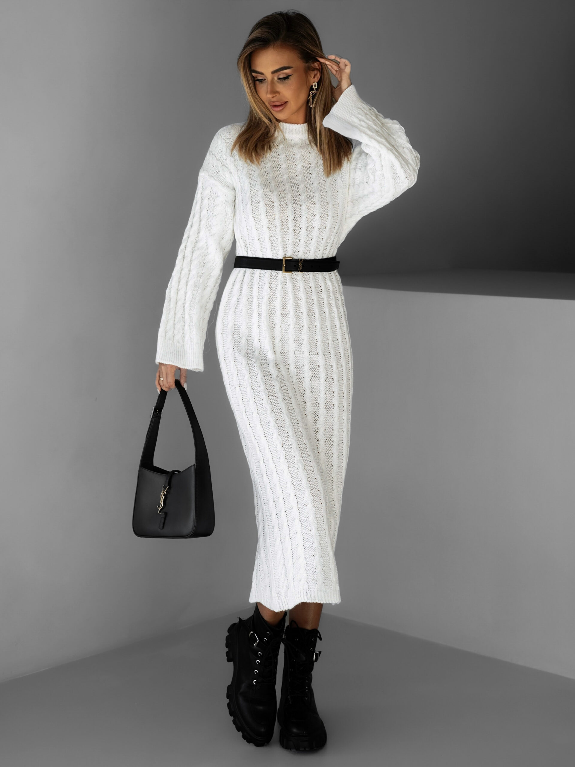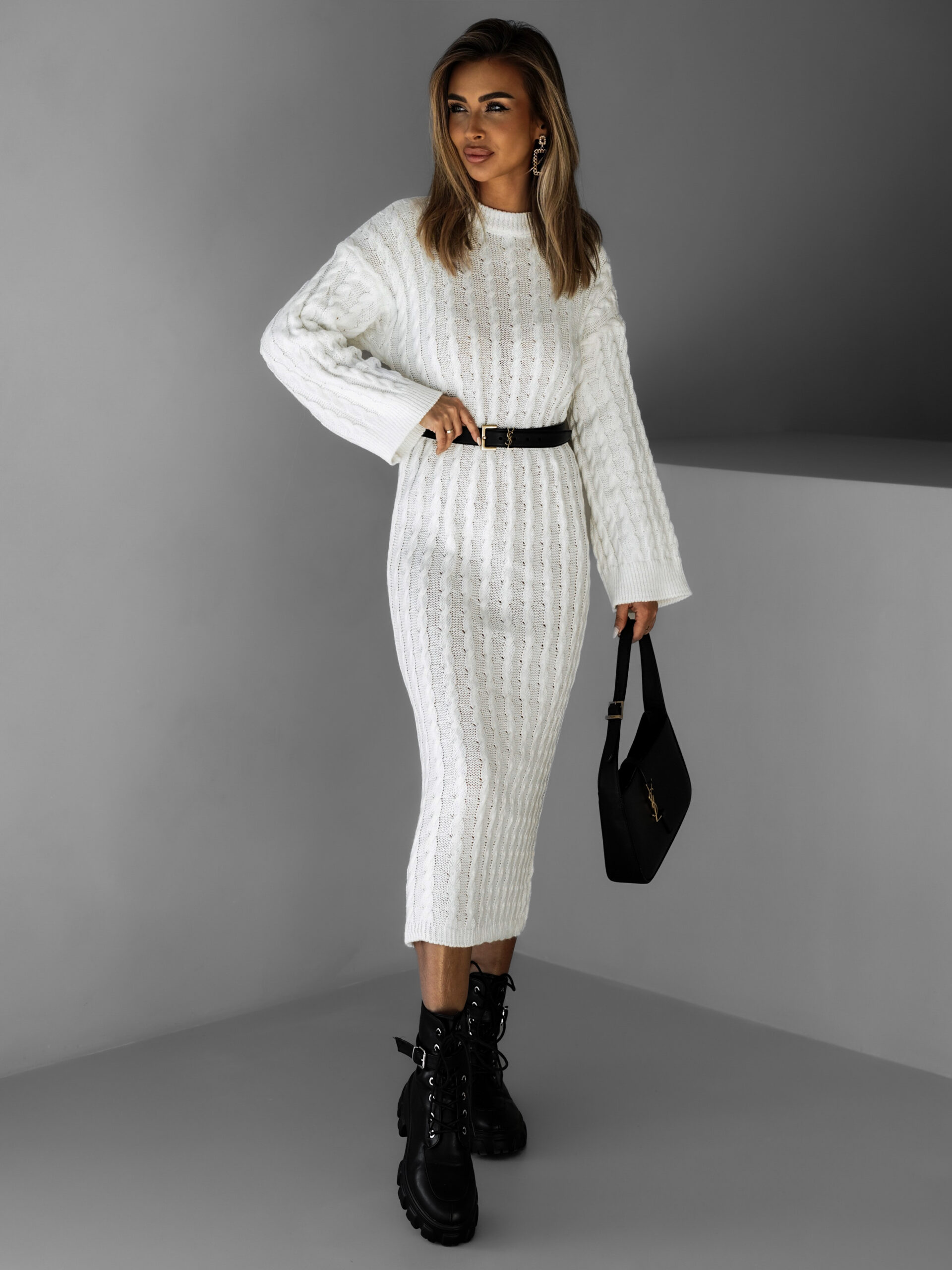 Bílé svetrové dlouhé šaty FRIDOLINA Velikost: ONESIZE