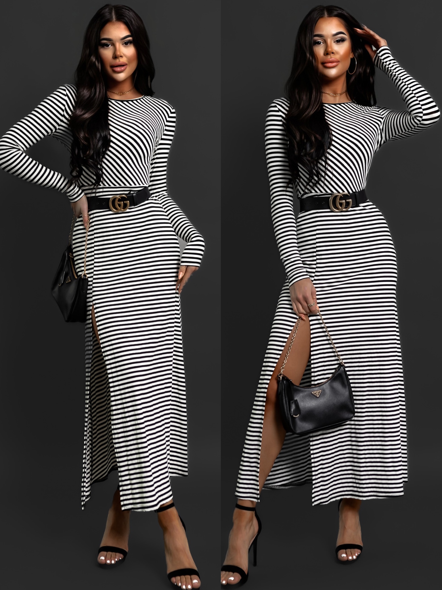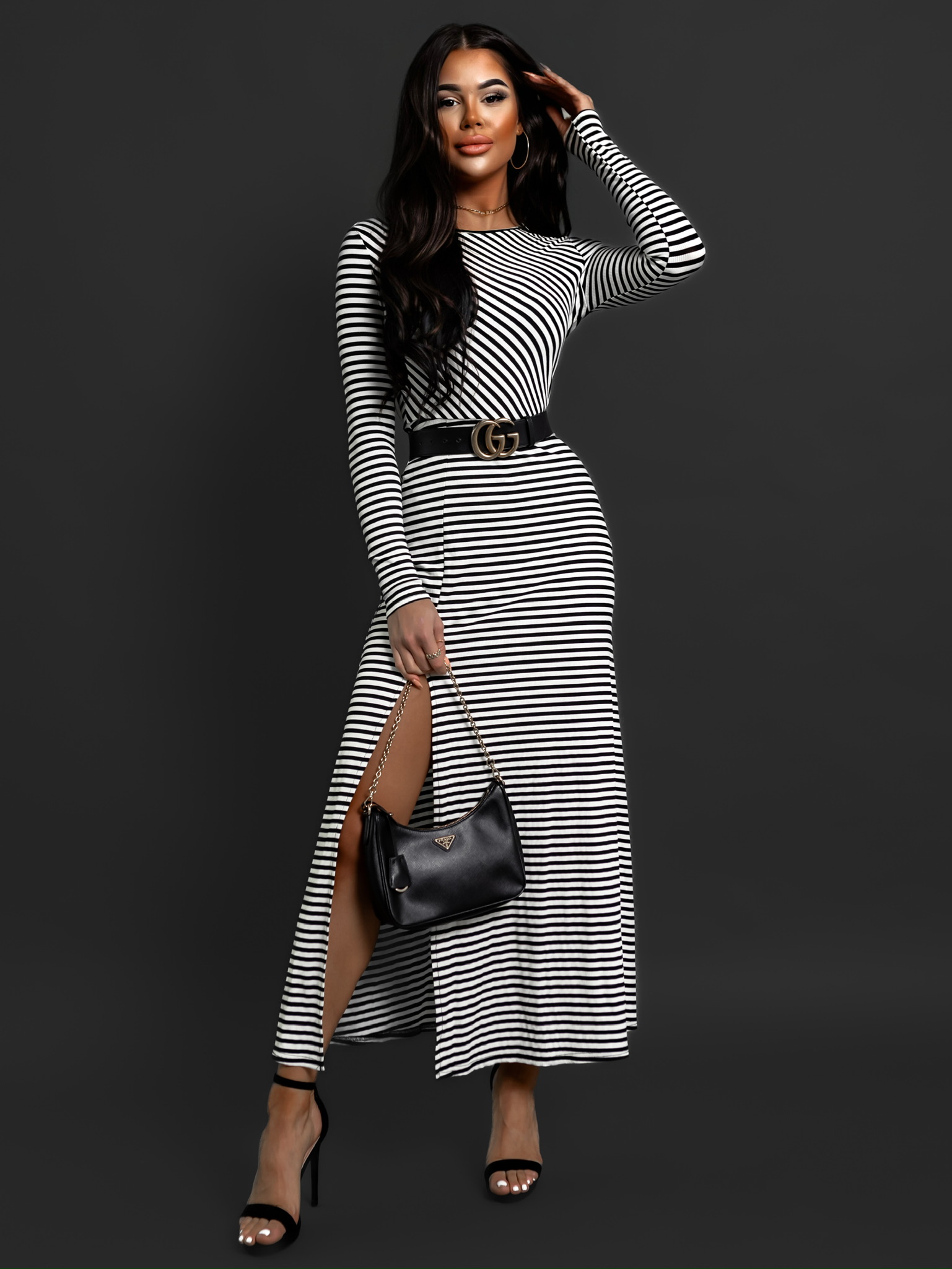 Bíločerné dlouhé šaty BINGOL s rozparkem Velikost: ONESIZE
