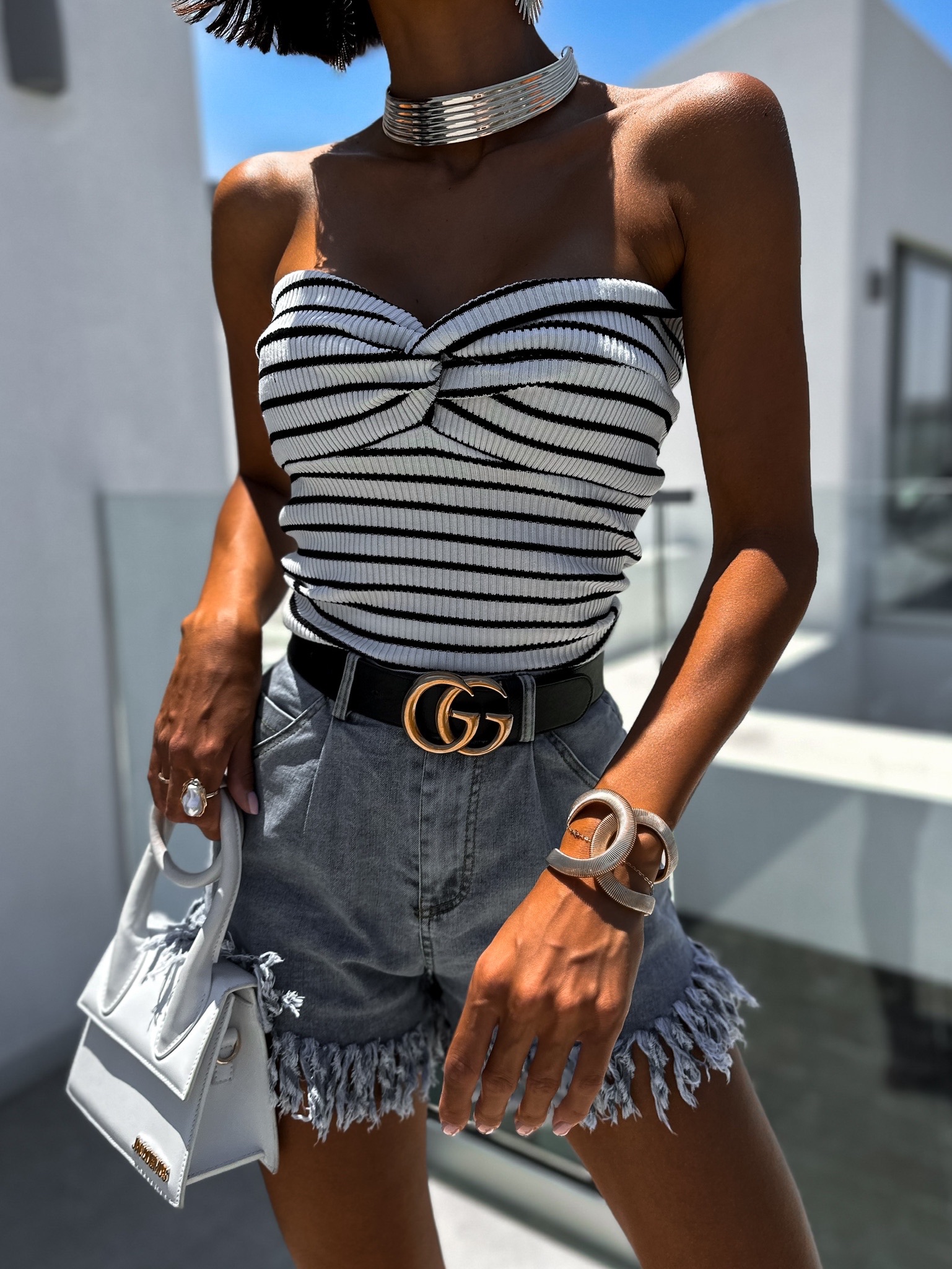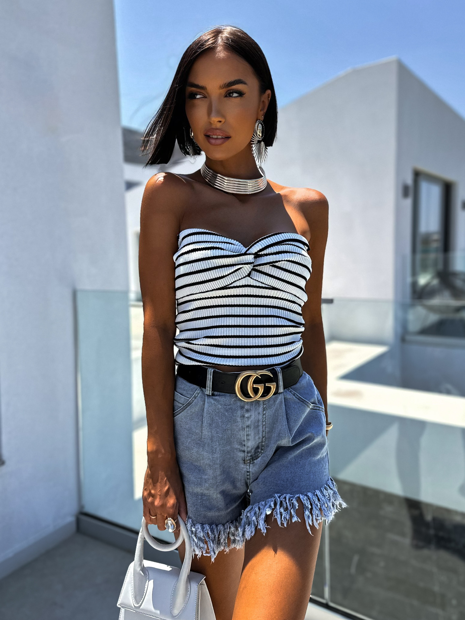 Bílý elegantní top KINSLEY s pruhy Velikost: S/M