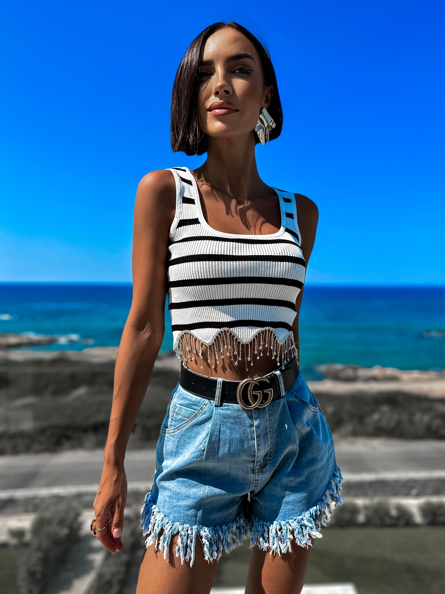 Bílý pruhovaný top VISSERA Velikost: M/L