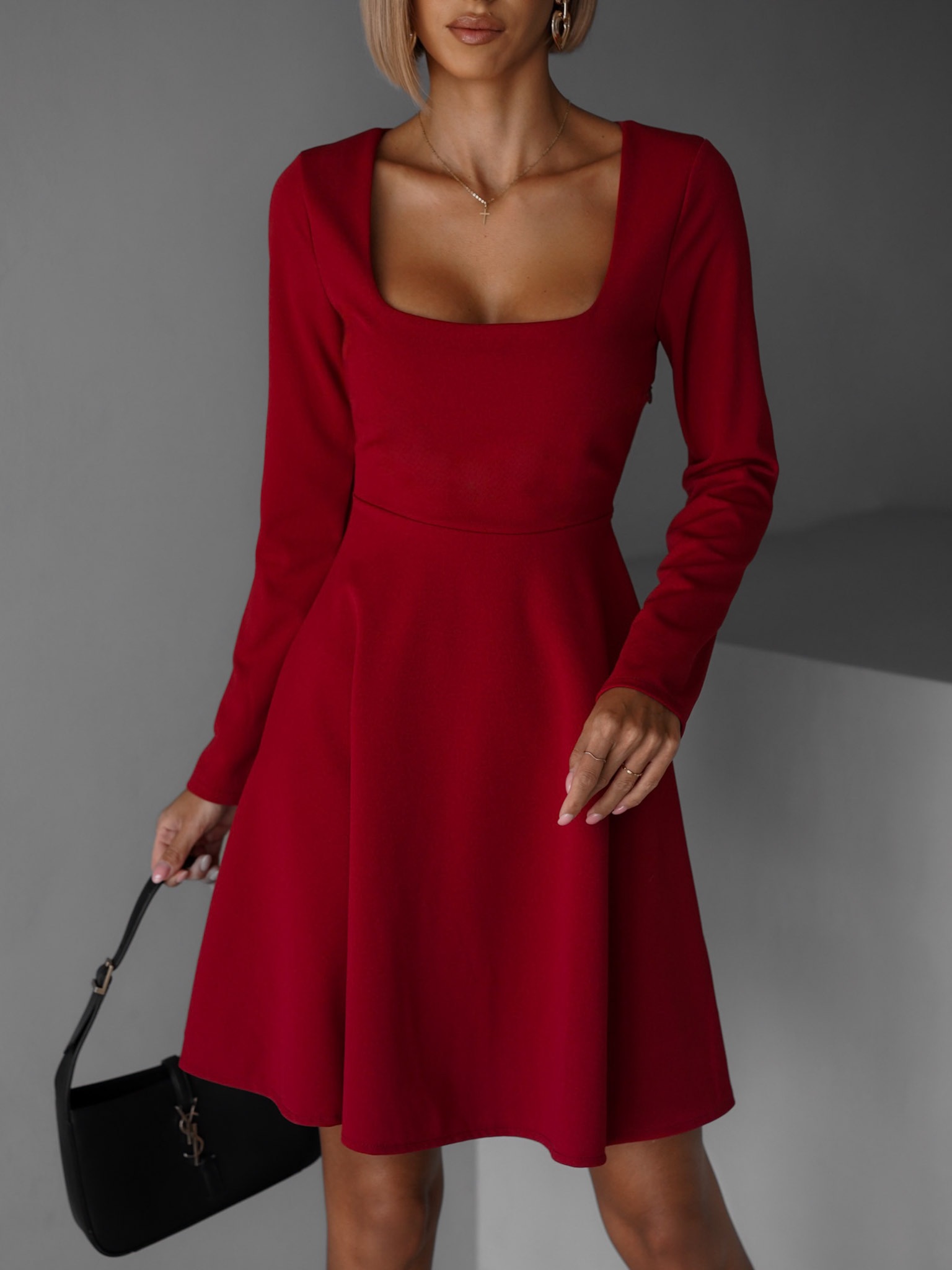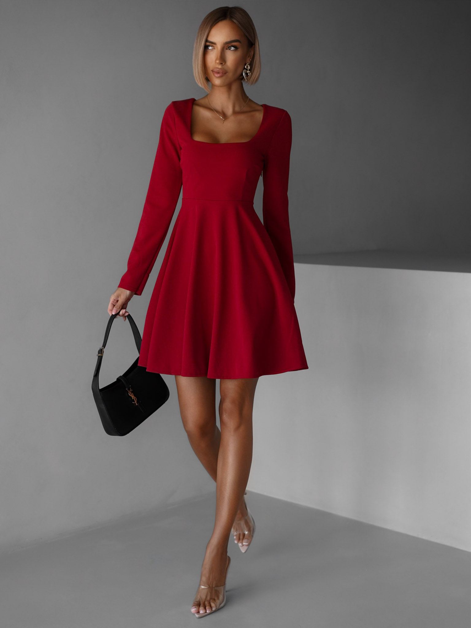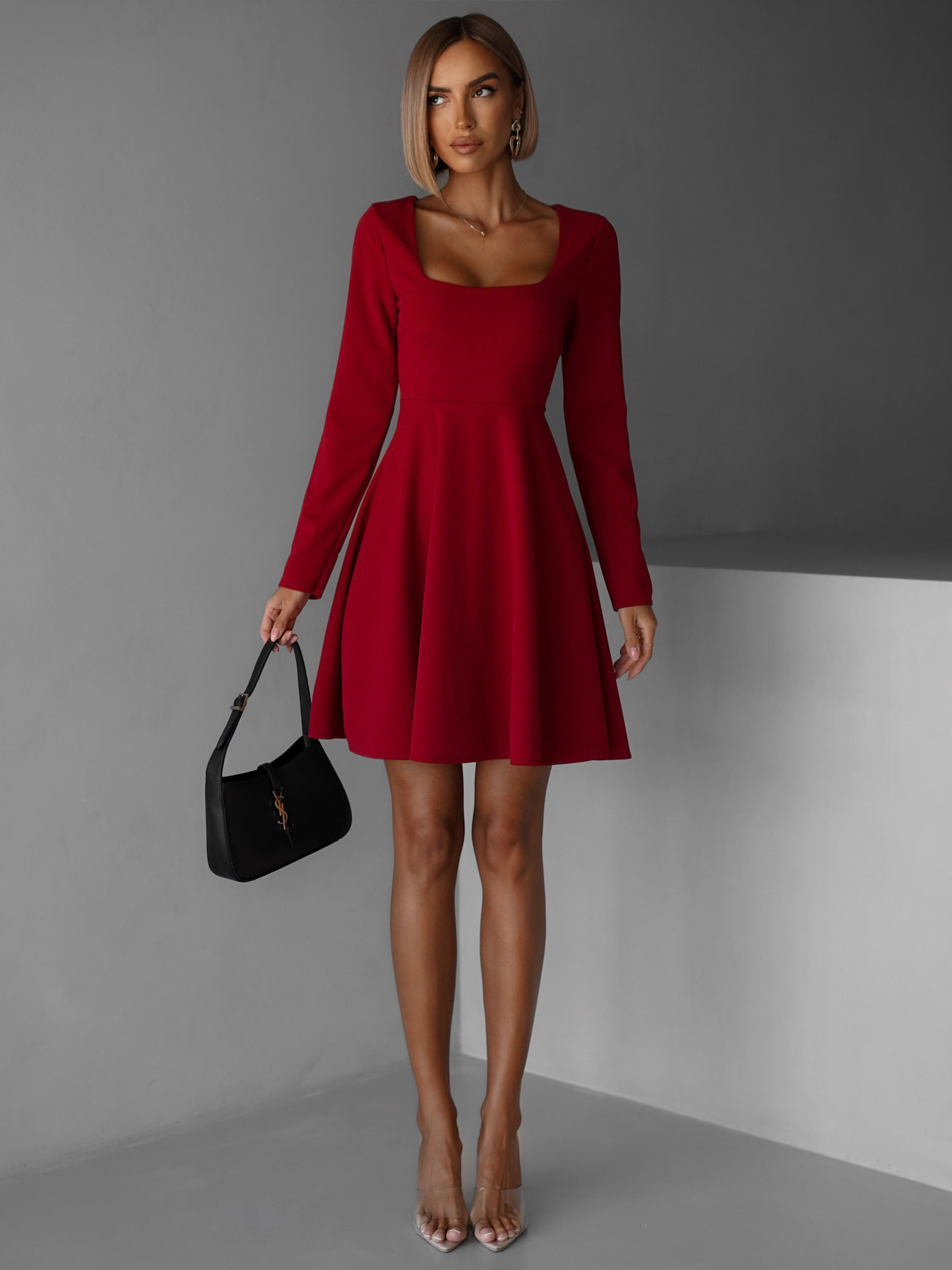 Bordó áčkové basic šaty BUTTONI s výstřihem Velikost: ONESIZE
