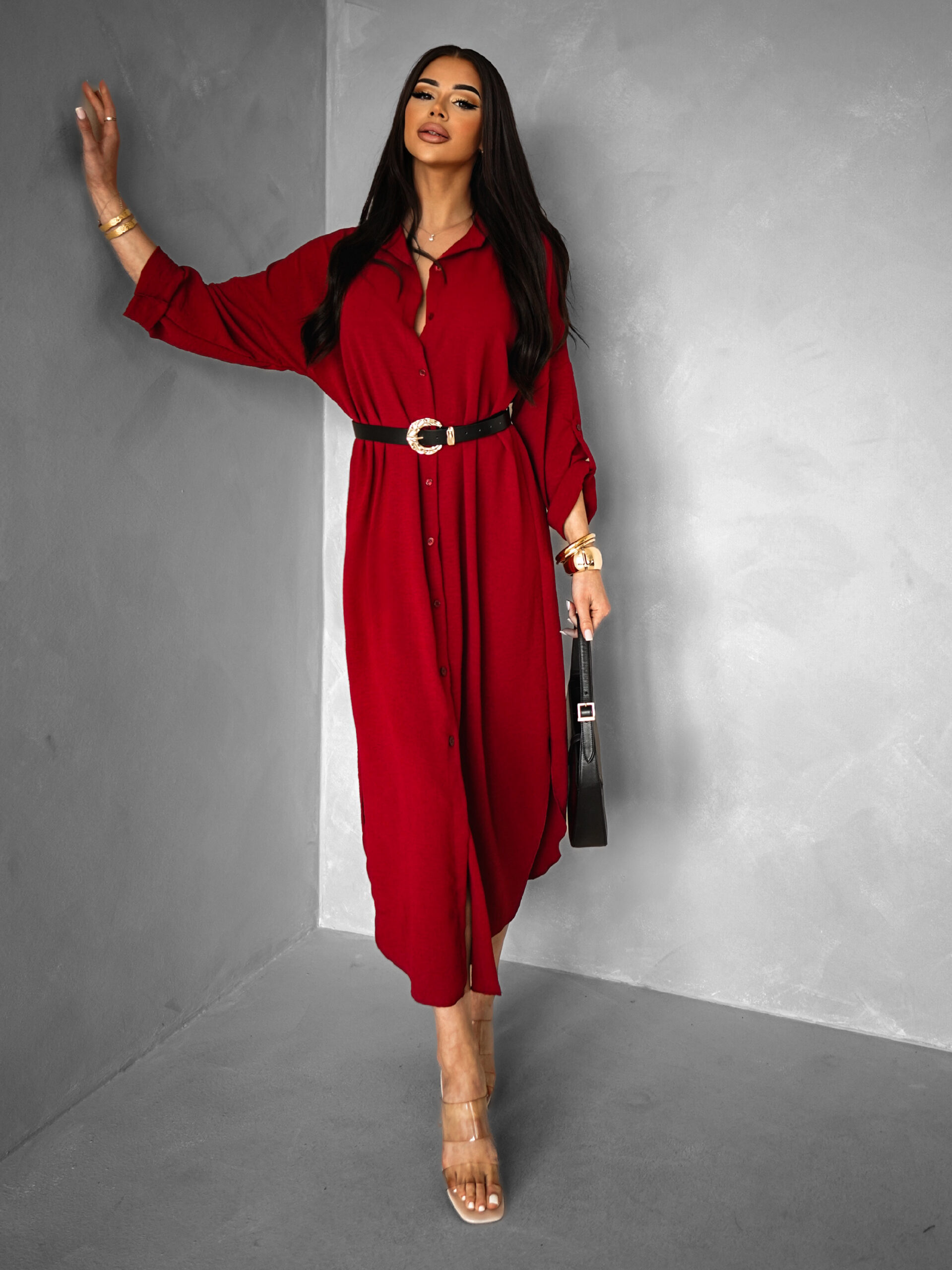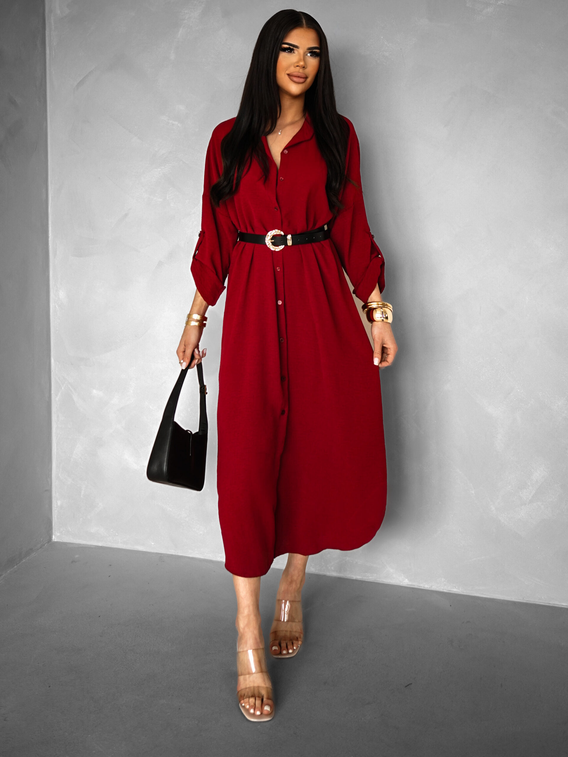 Bordó dlouhé košilové maxi šaty NESSY Velikost: ONESIZE