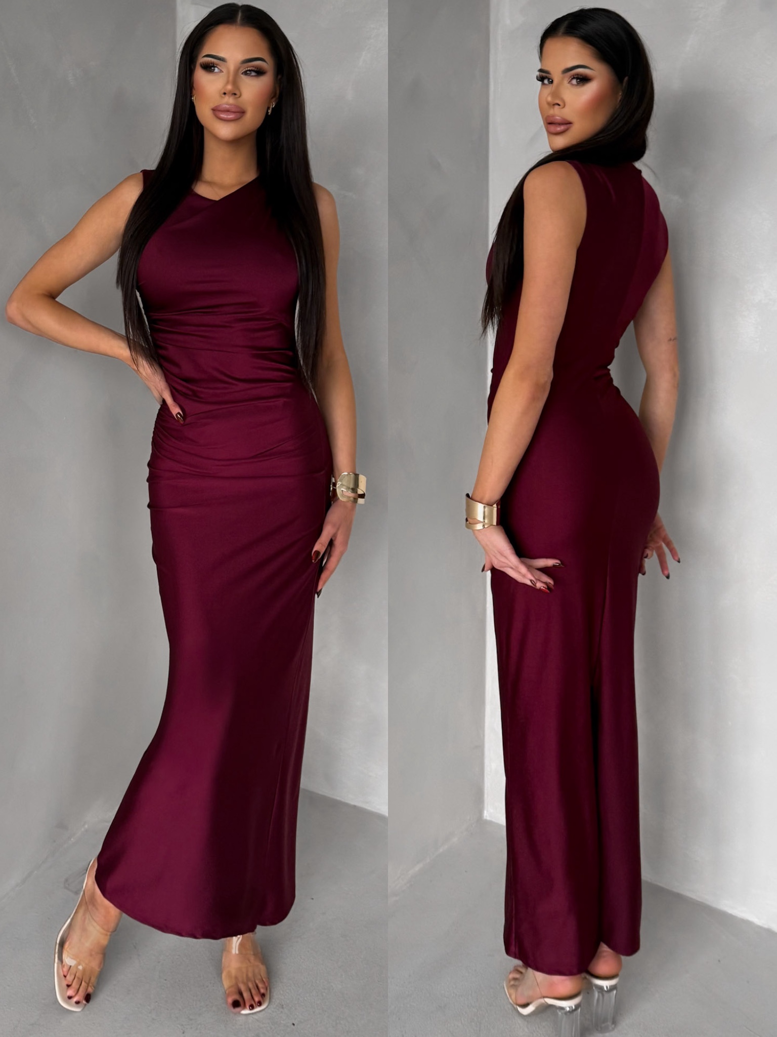 Bordó elegantní dlouhé společenské šaty DRAVELY s řasením Velikost: ONESIZE