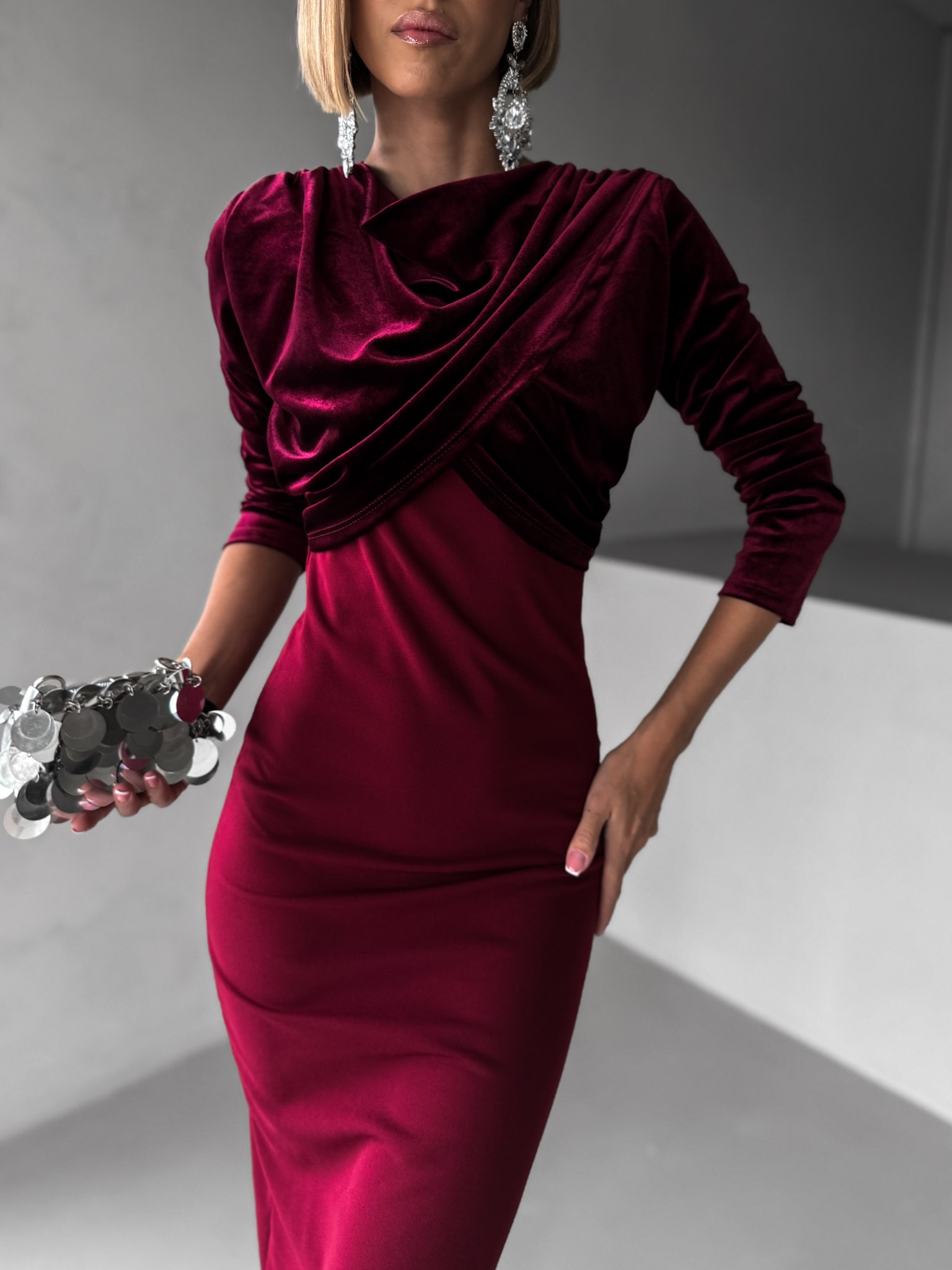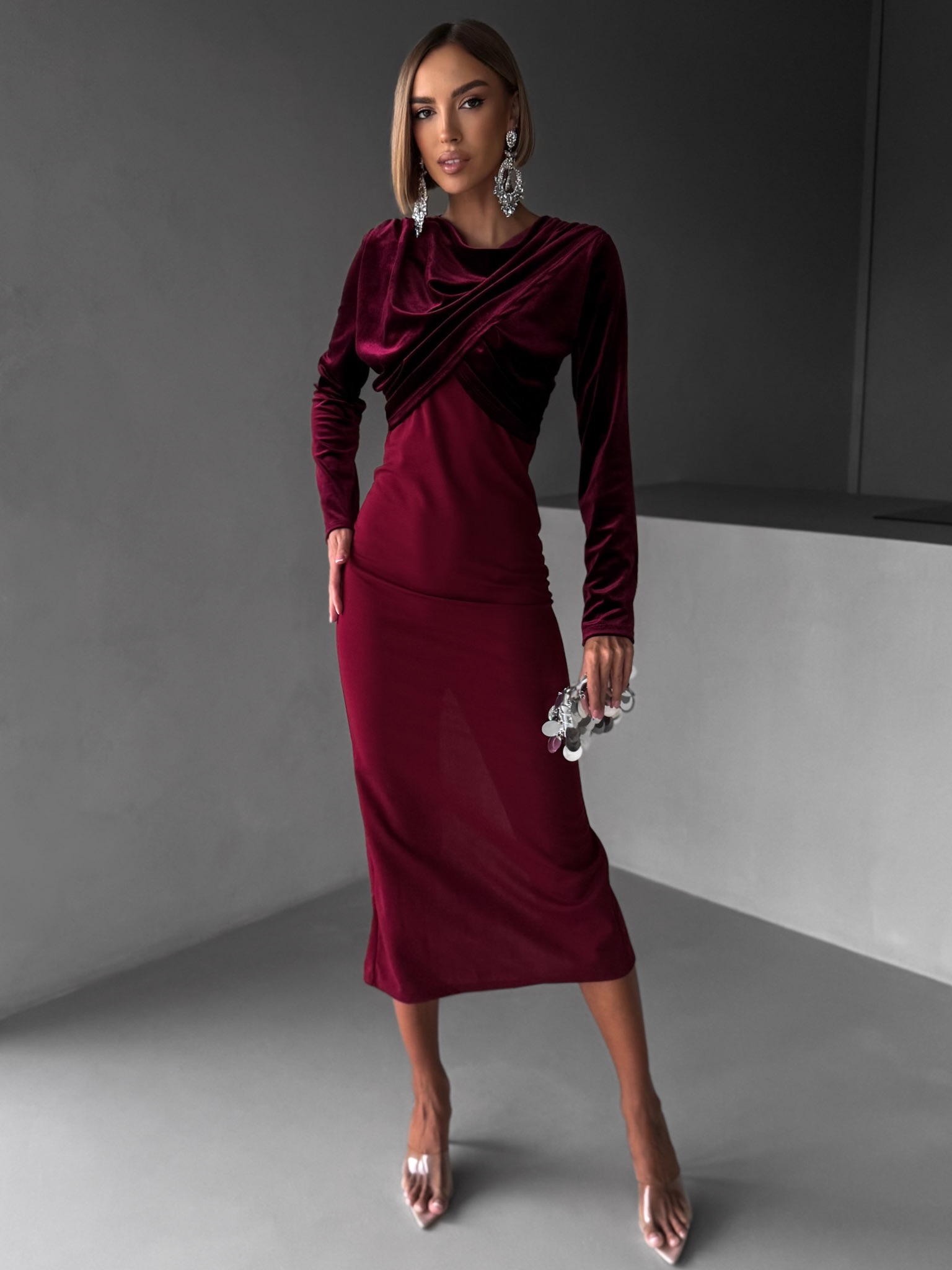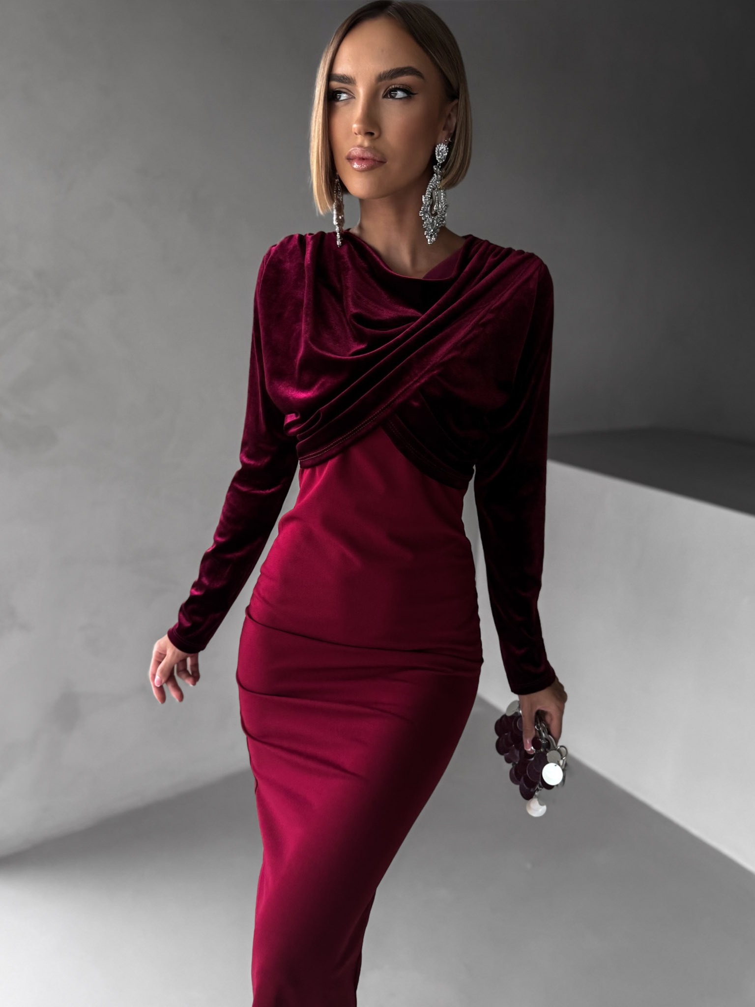 Bordó elegantní sametové dlouhé šaty NATASJA Velikost: ONESIZE
