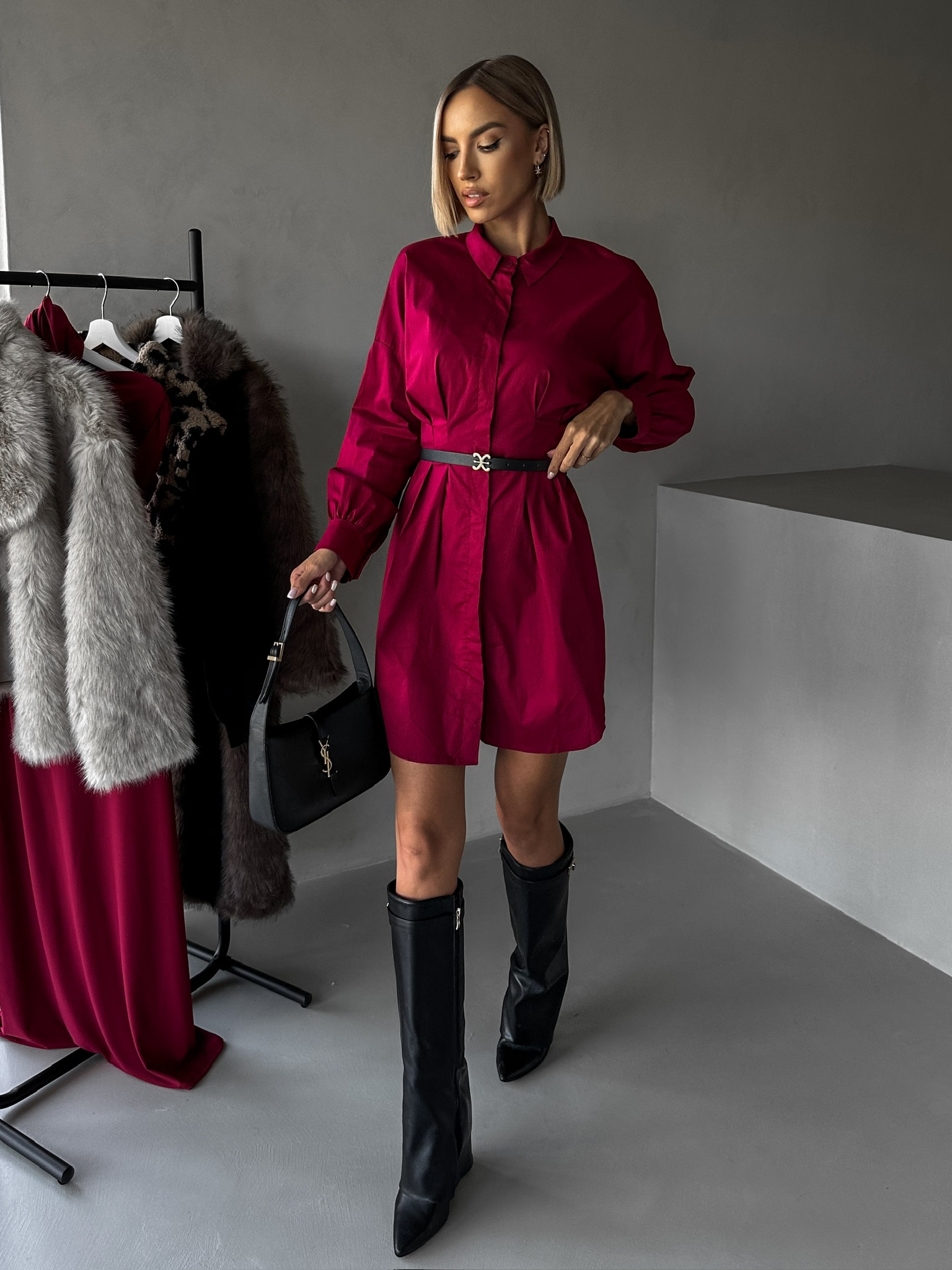 Bordó košilové šaty SIERRA na knoflíky Velikost: ONESIZE