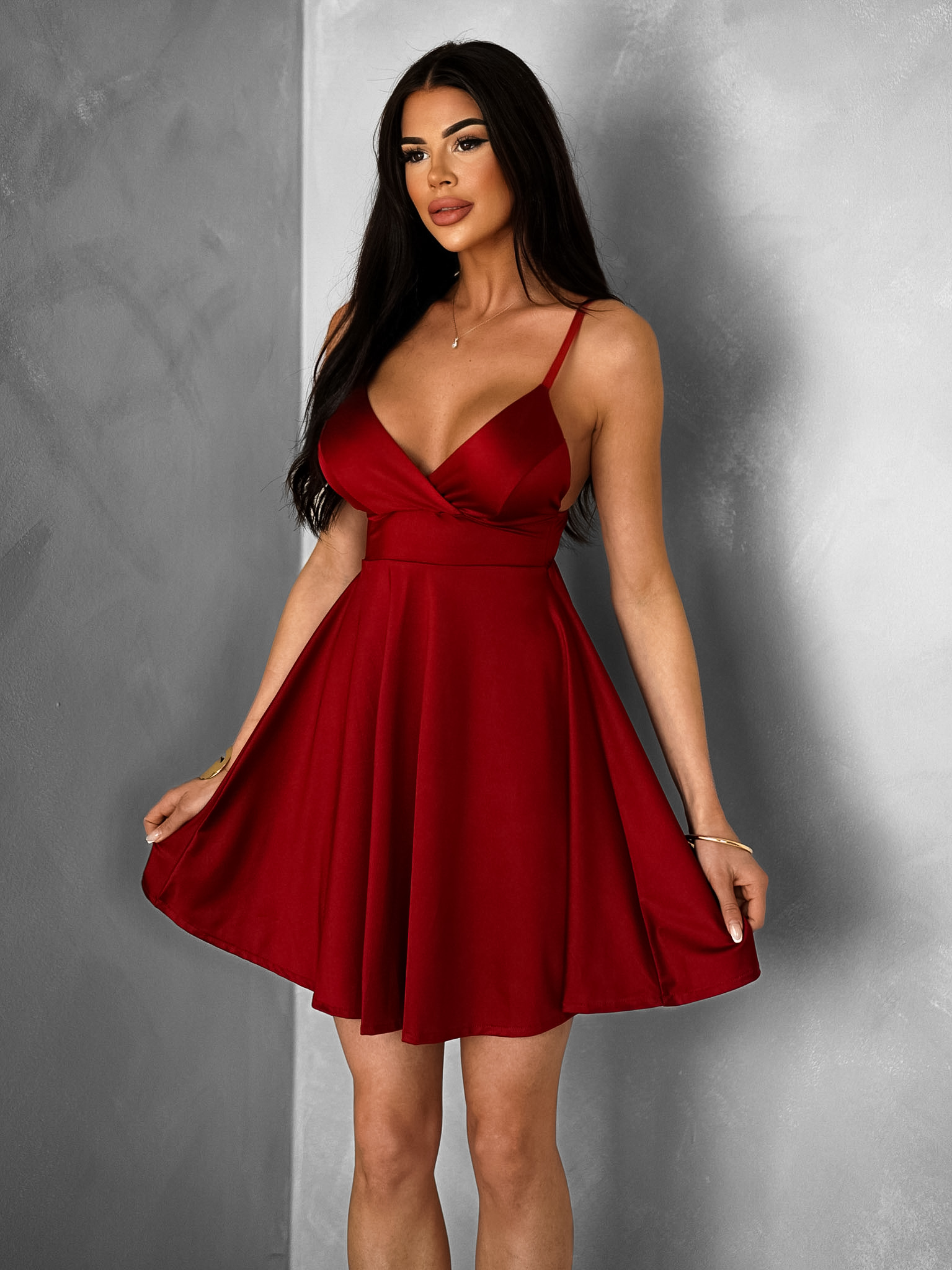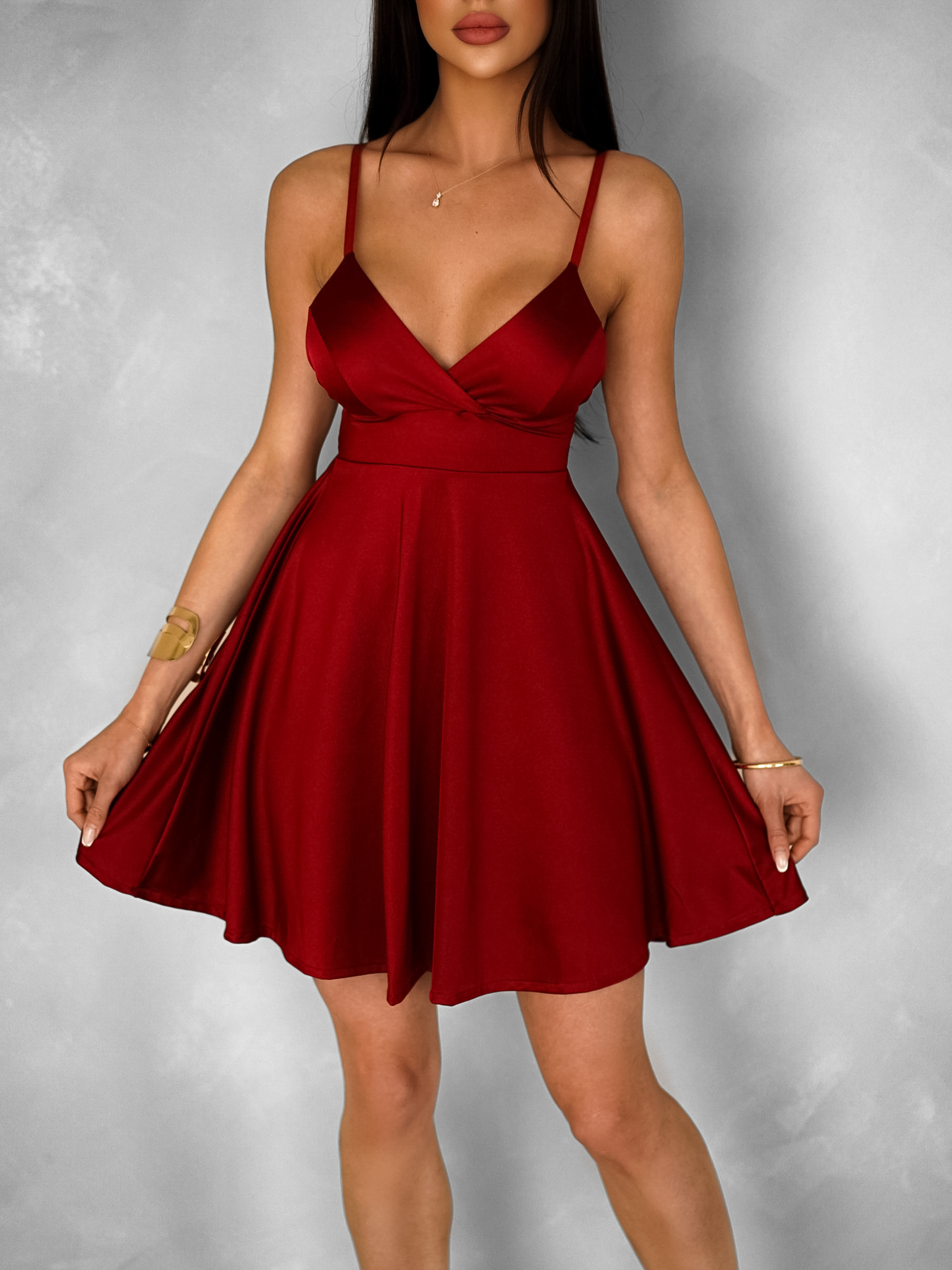 Bordó krátké letní saténové šaty DARANA Velikost: ONESIZE