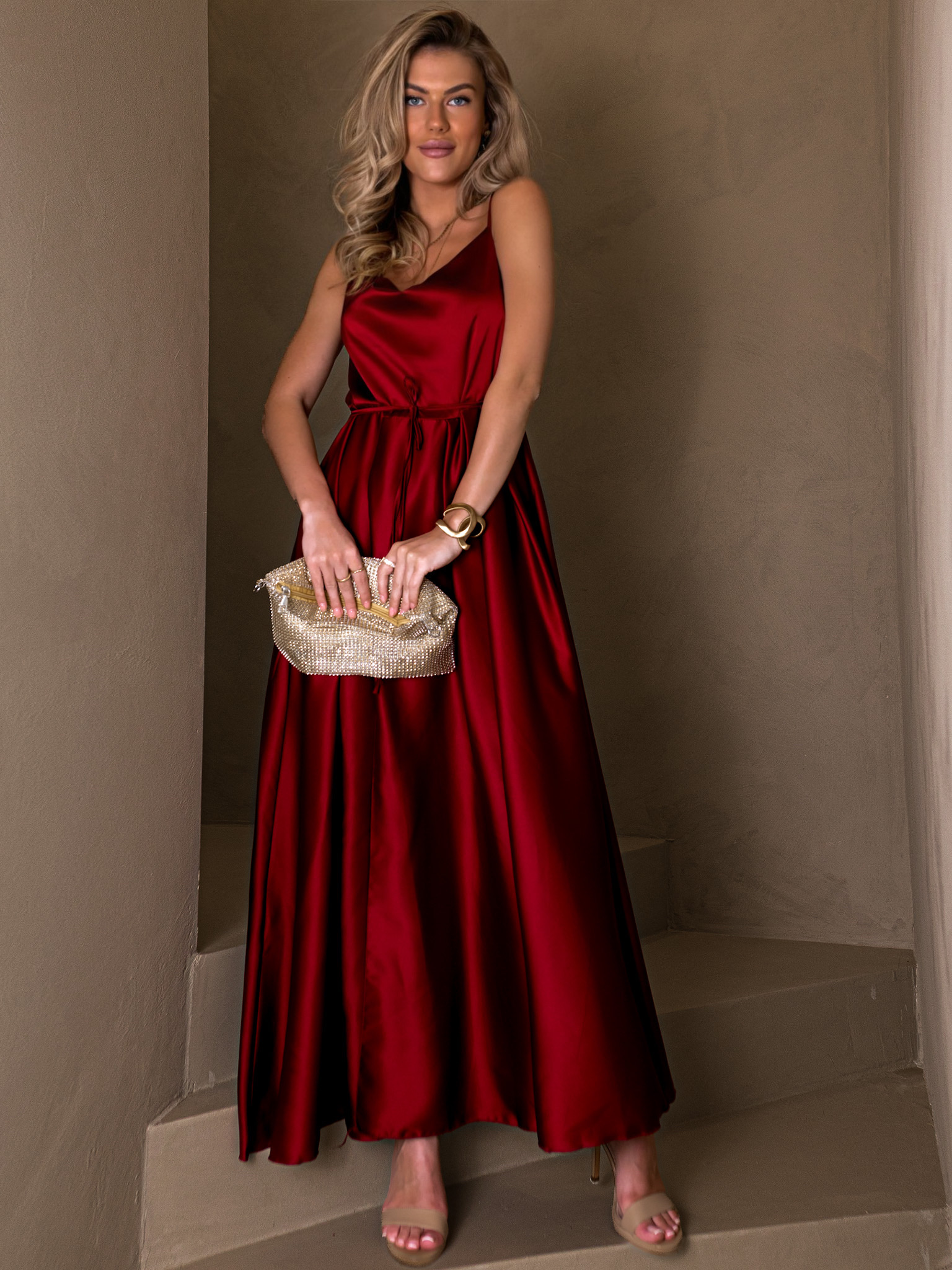 Bordó lesklé elegantní šaty YASMINE s rozparkem Velikost: ONESIZE