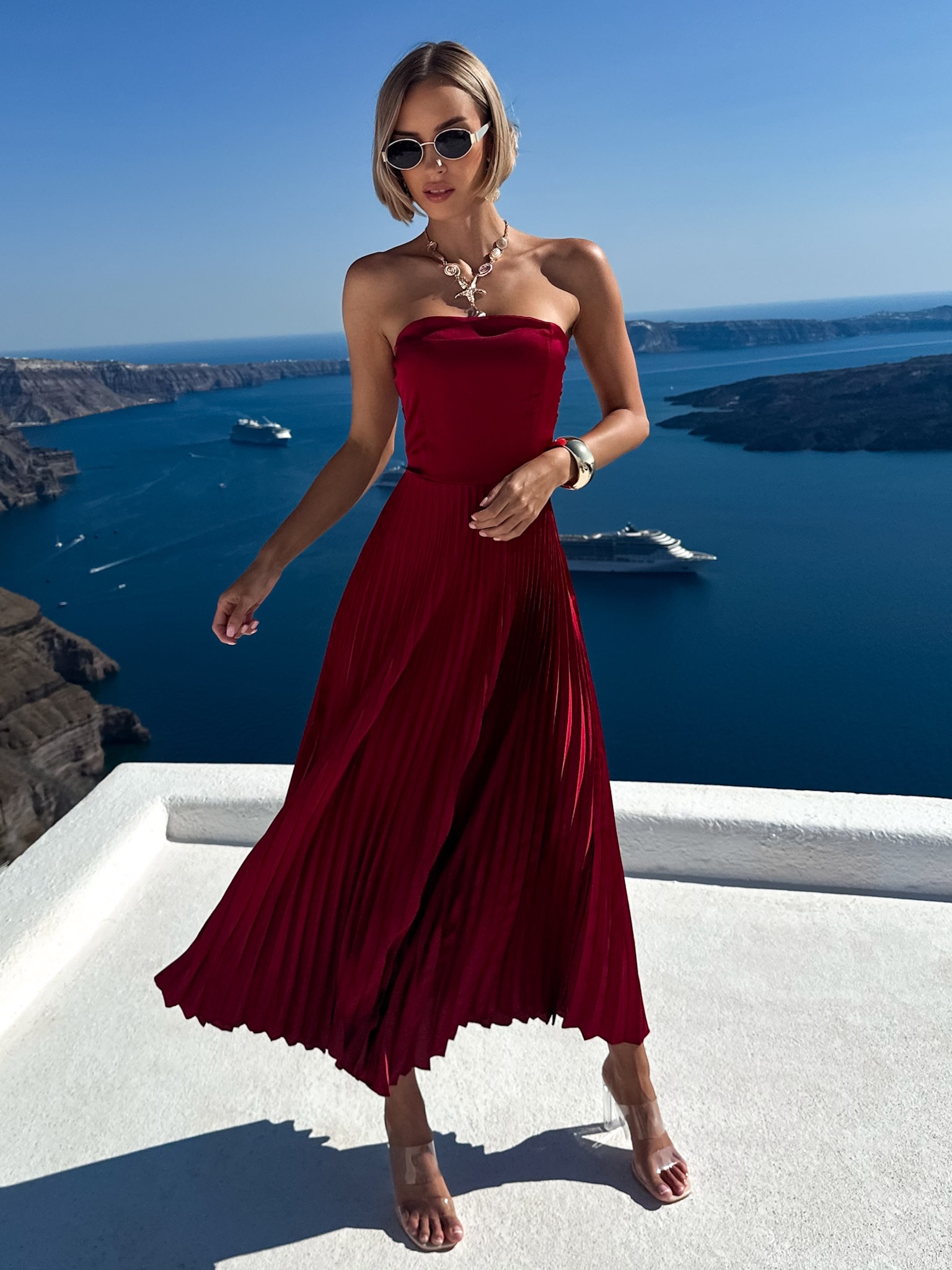 Bordó letní plisované šaty CAPRIE bez ramínek Velikost: ONESIZE