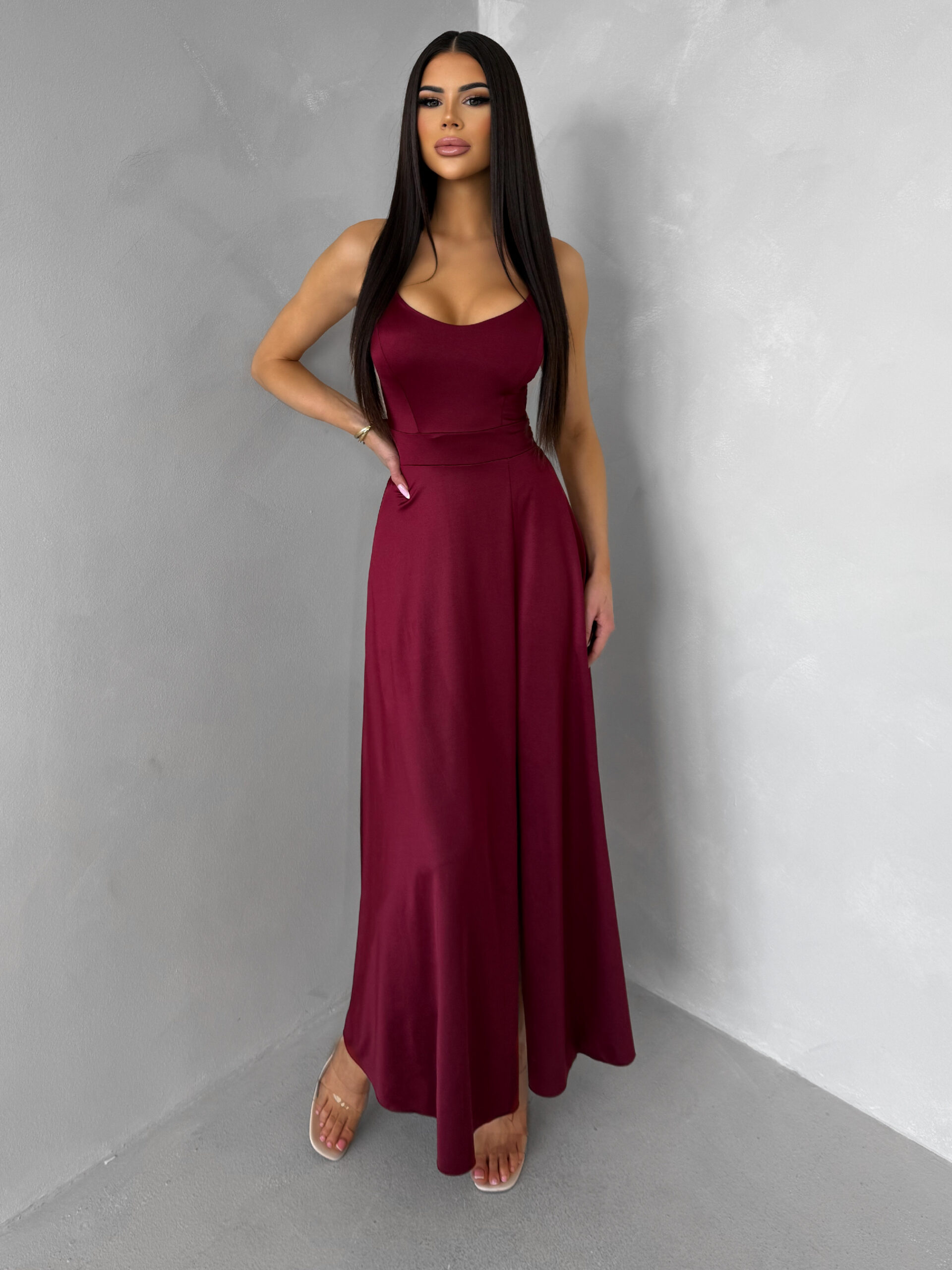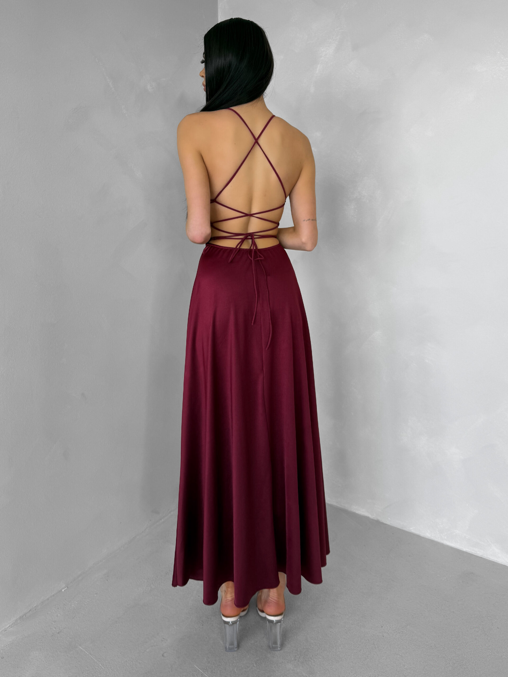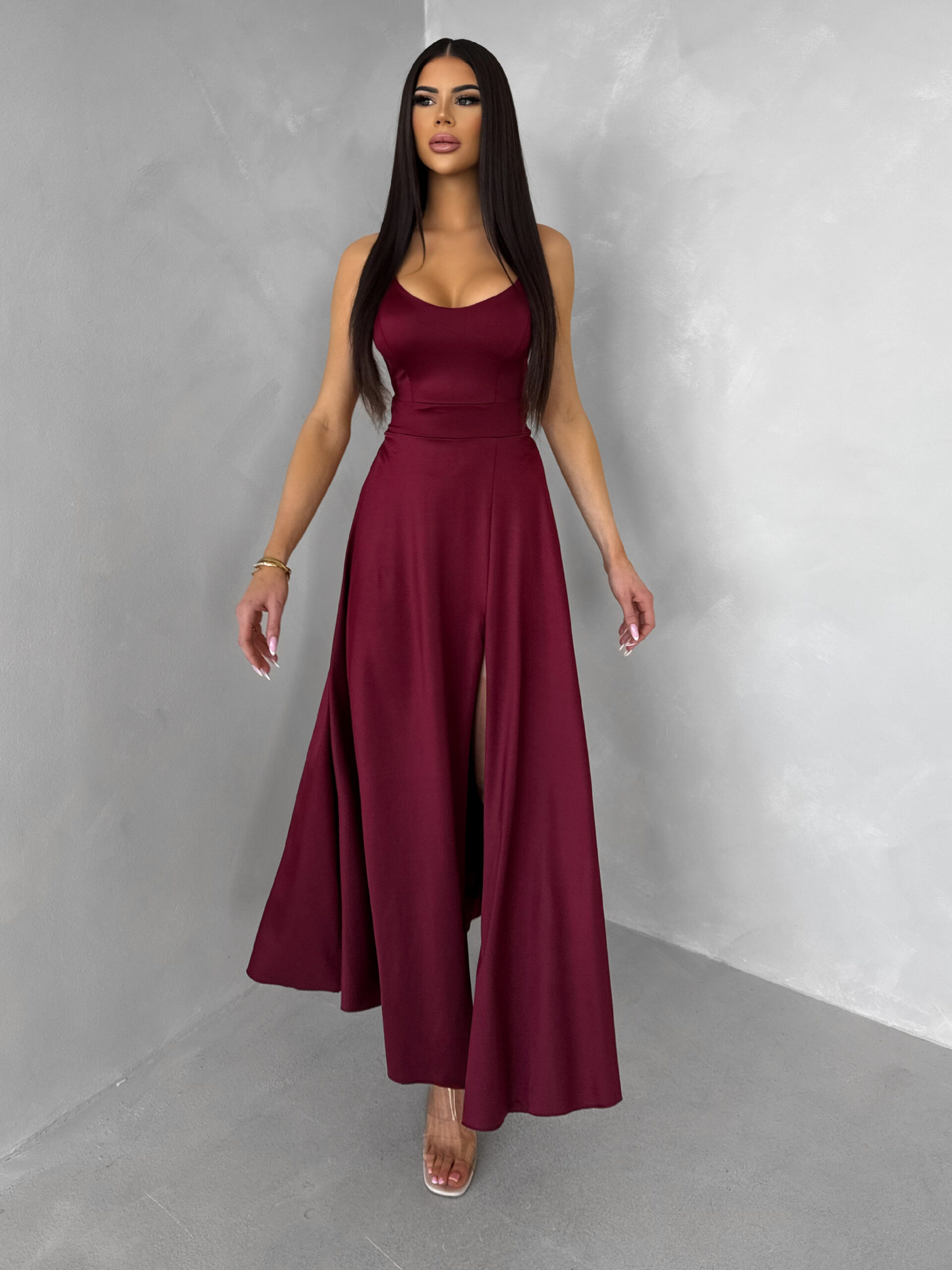 Bordó saténové vypasované šaty SIMUEL se šněrováním Velikost: ONESIZE