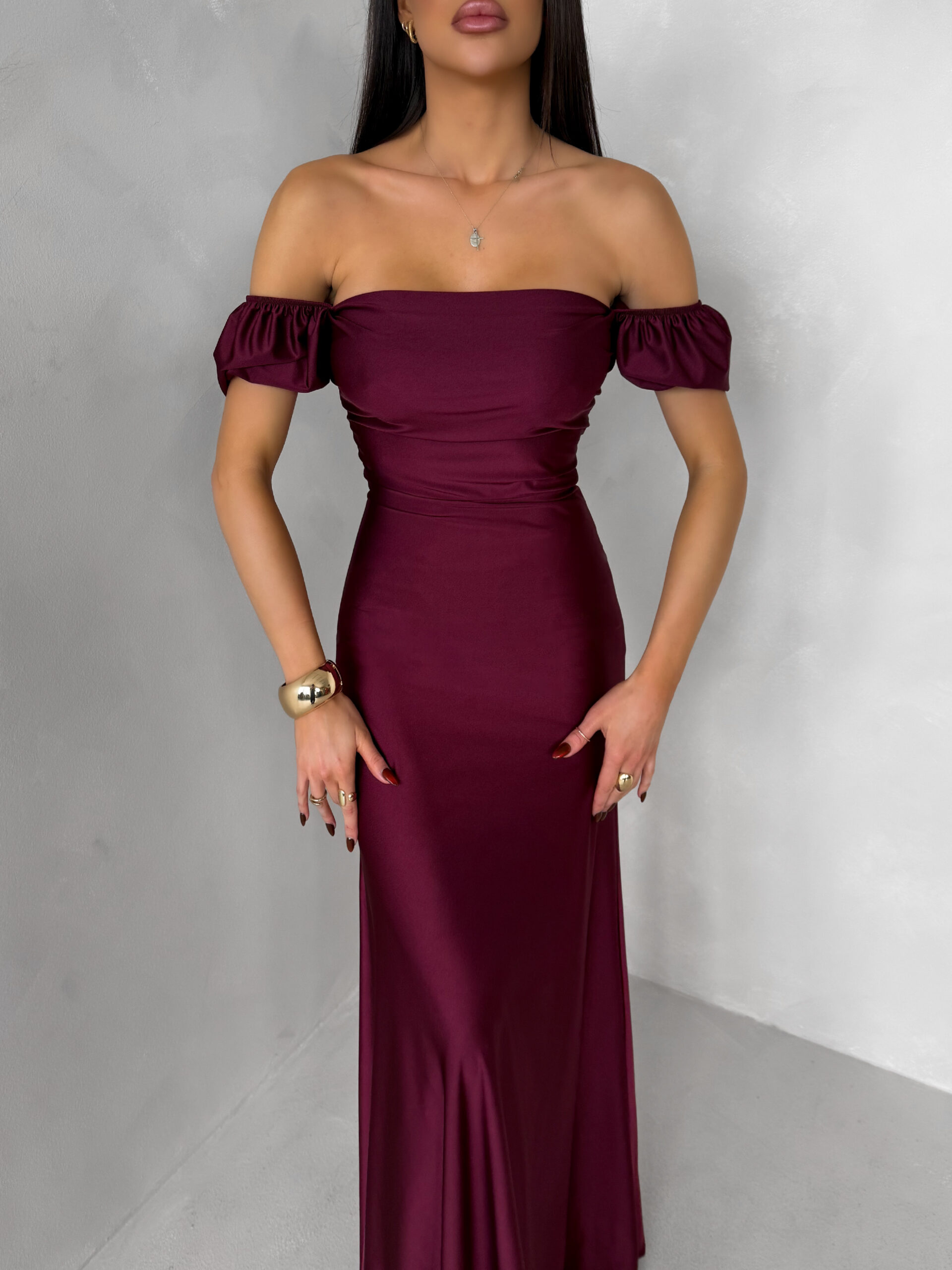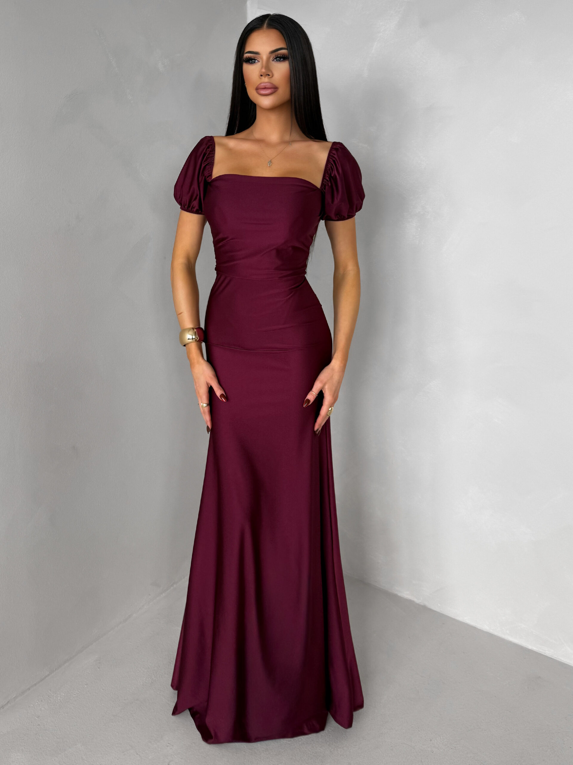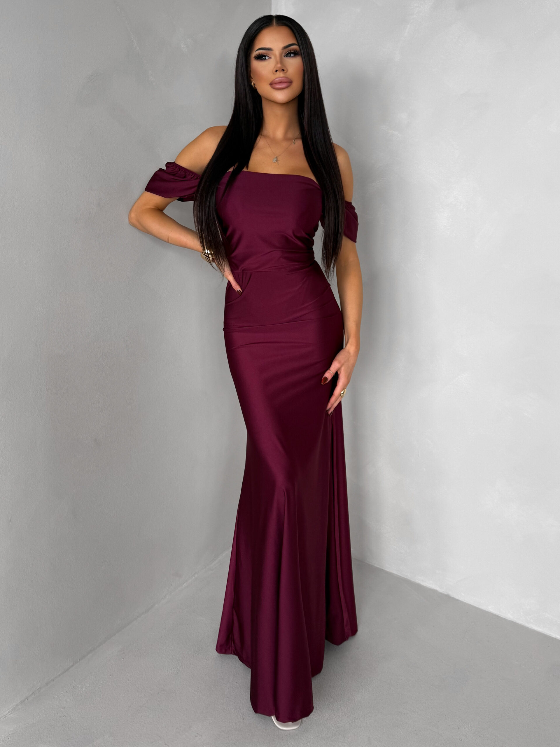 Bordó společenské dlouhé plesové šaty LUNZARO Velikost: ONESIZE
