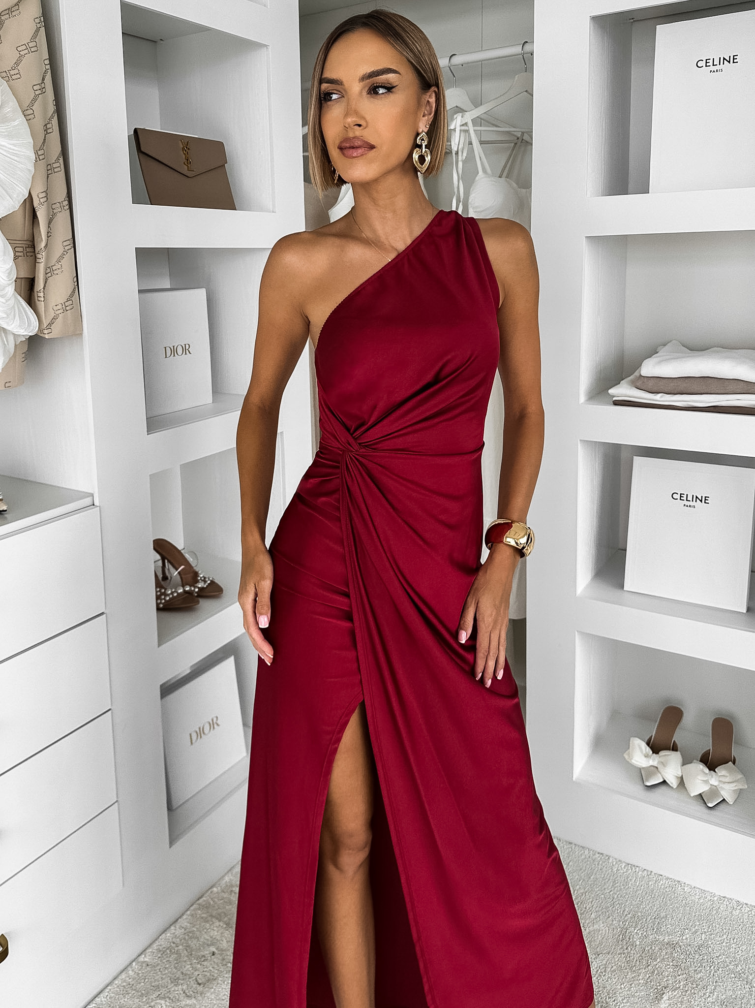 Bordó večerní vypasované šaty FIAMMAR s rozparkem Velikost: ONESIZE