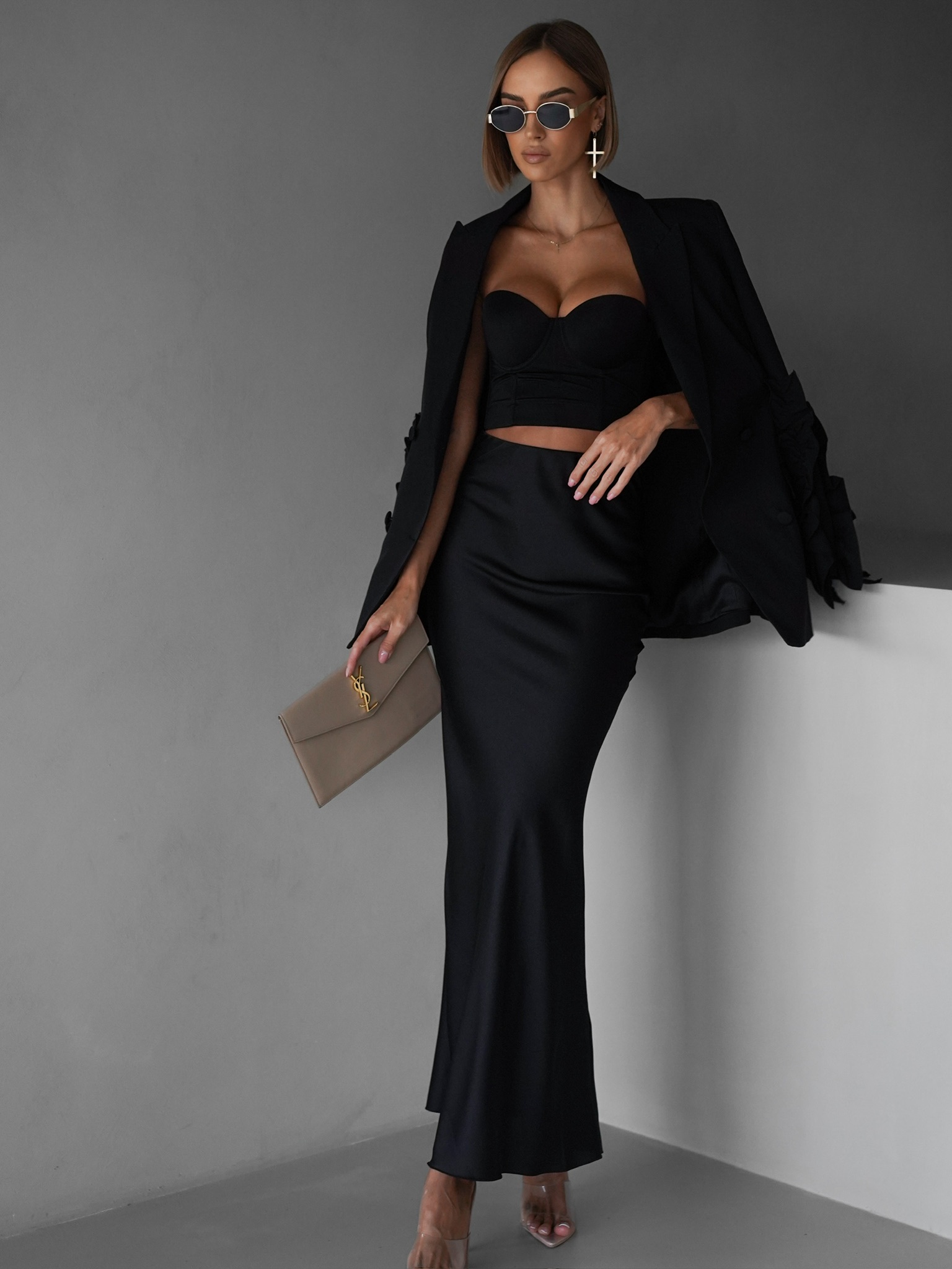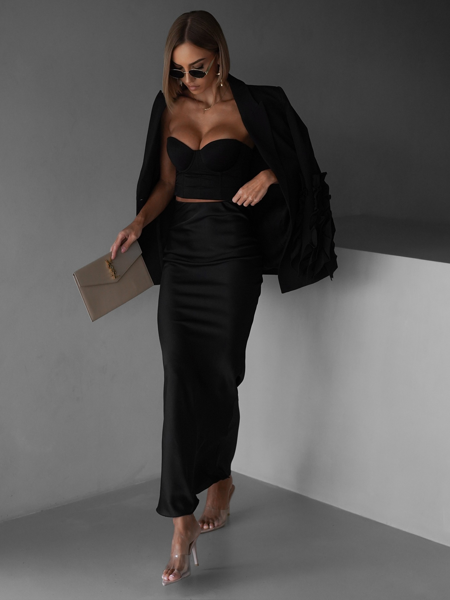 Černá dlouhá saténová sukně REGENORY Velikost: ONESIZE