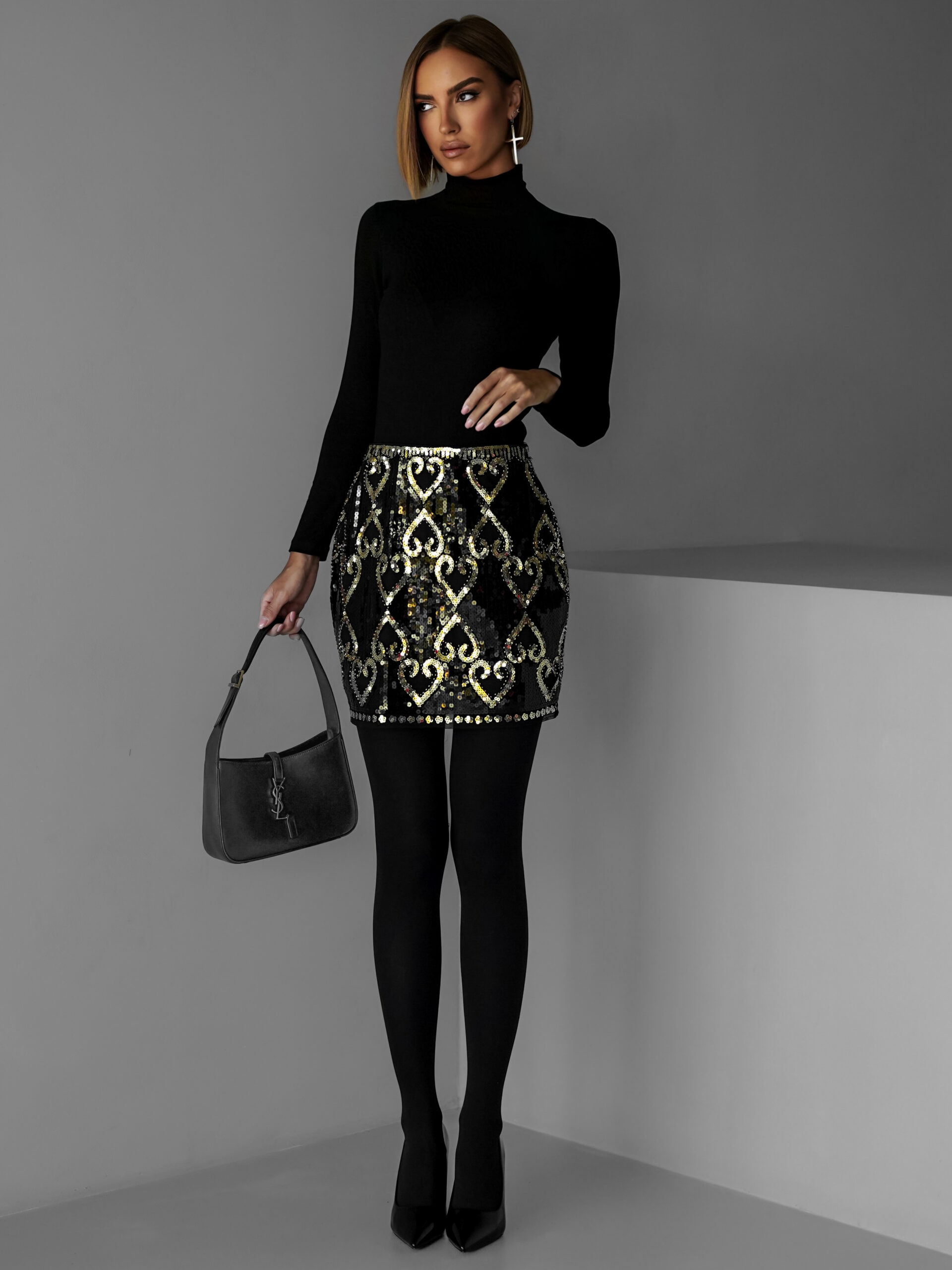 Černá flitrovaná mini sukně FELICIA Velikost: M/L
