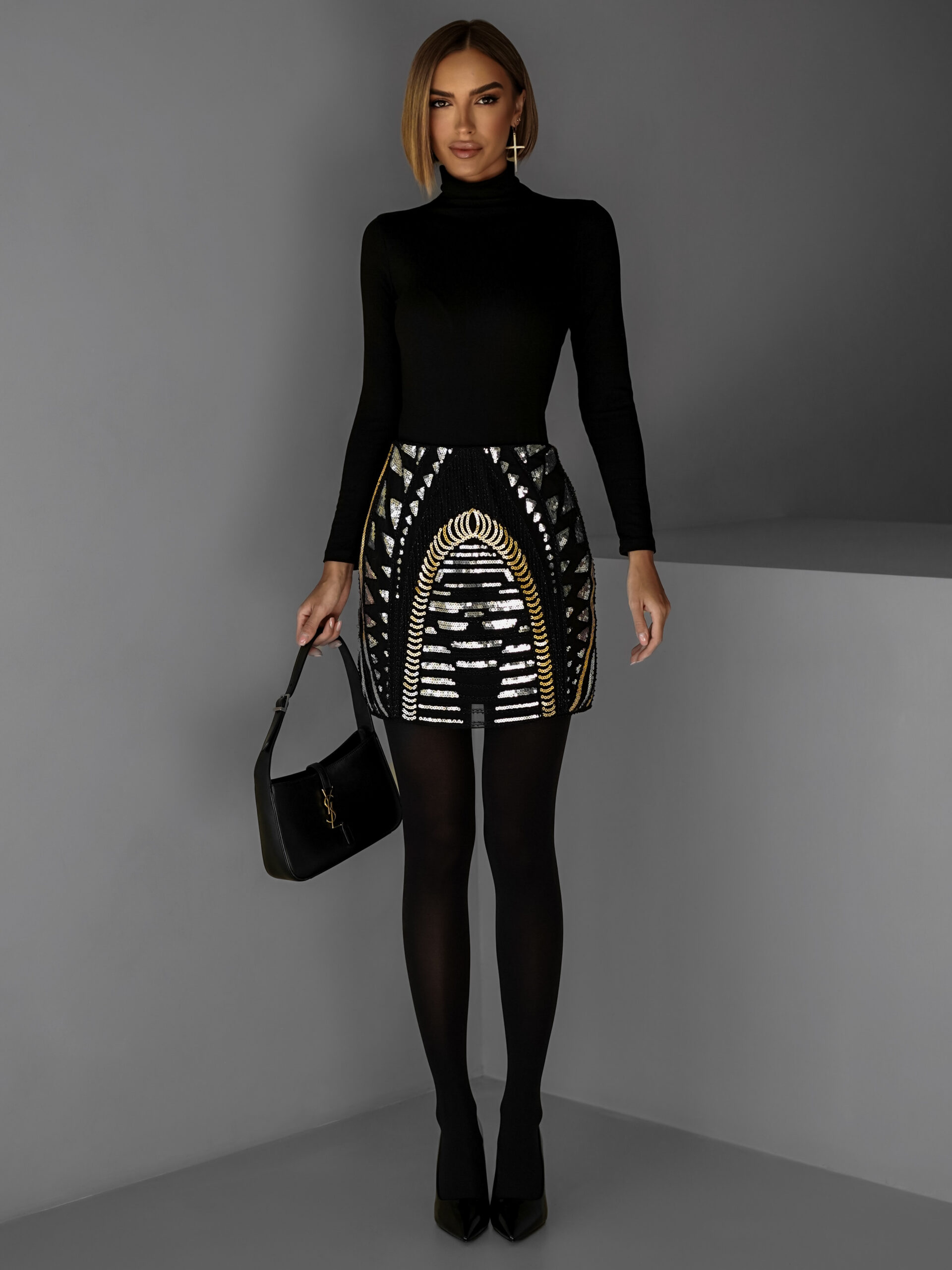 Černá flitrovaná mini sukně LENNART Velikost: ONESIZE