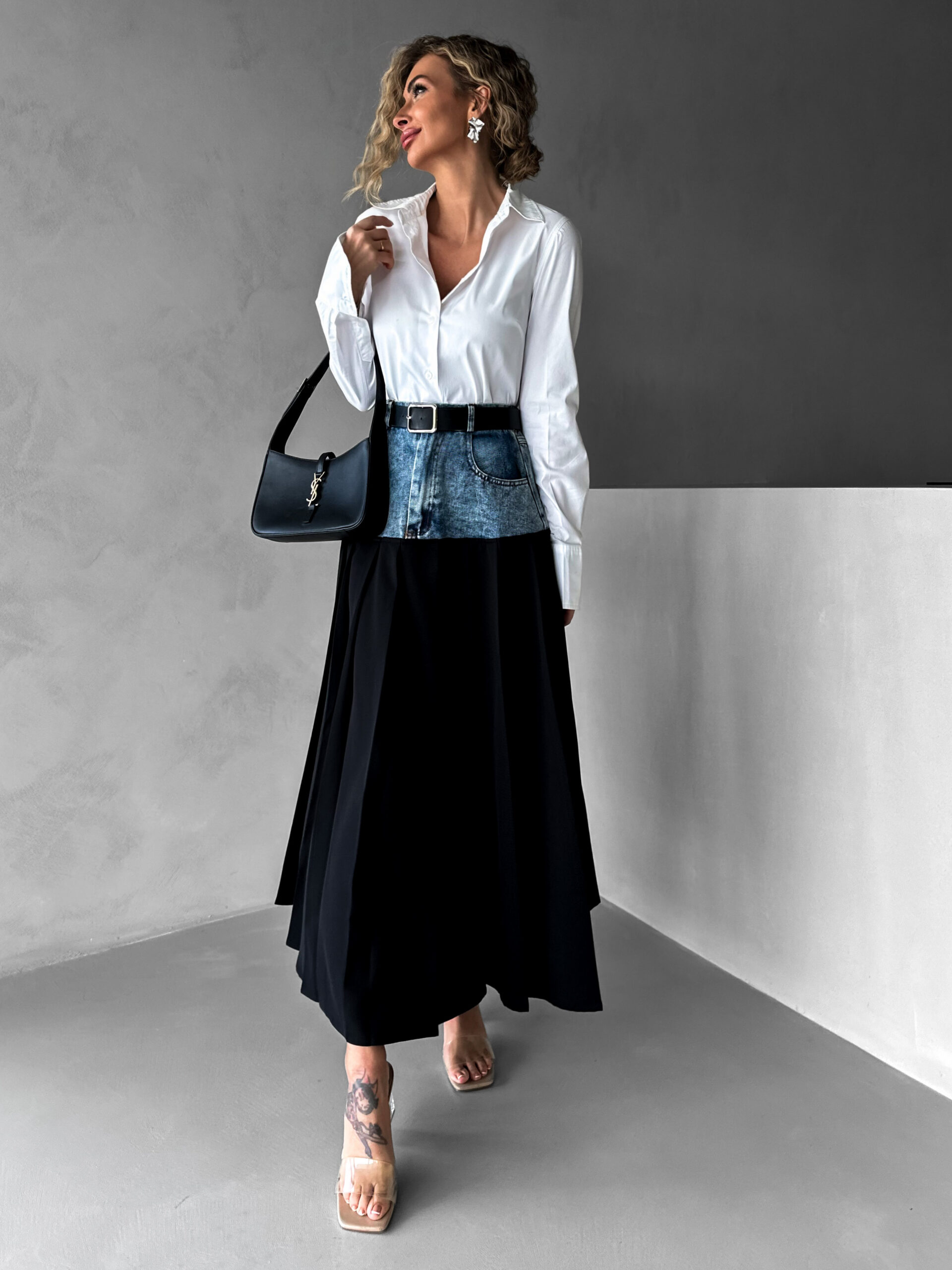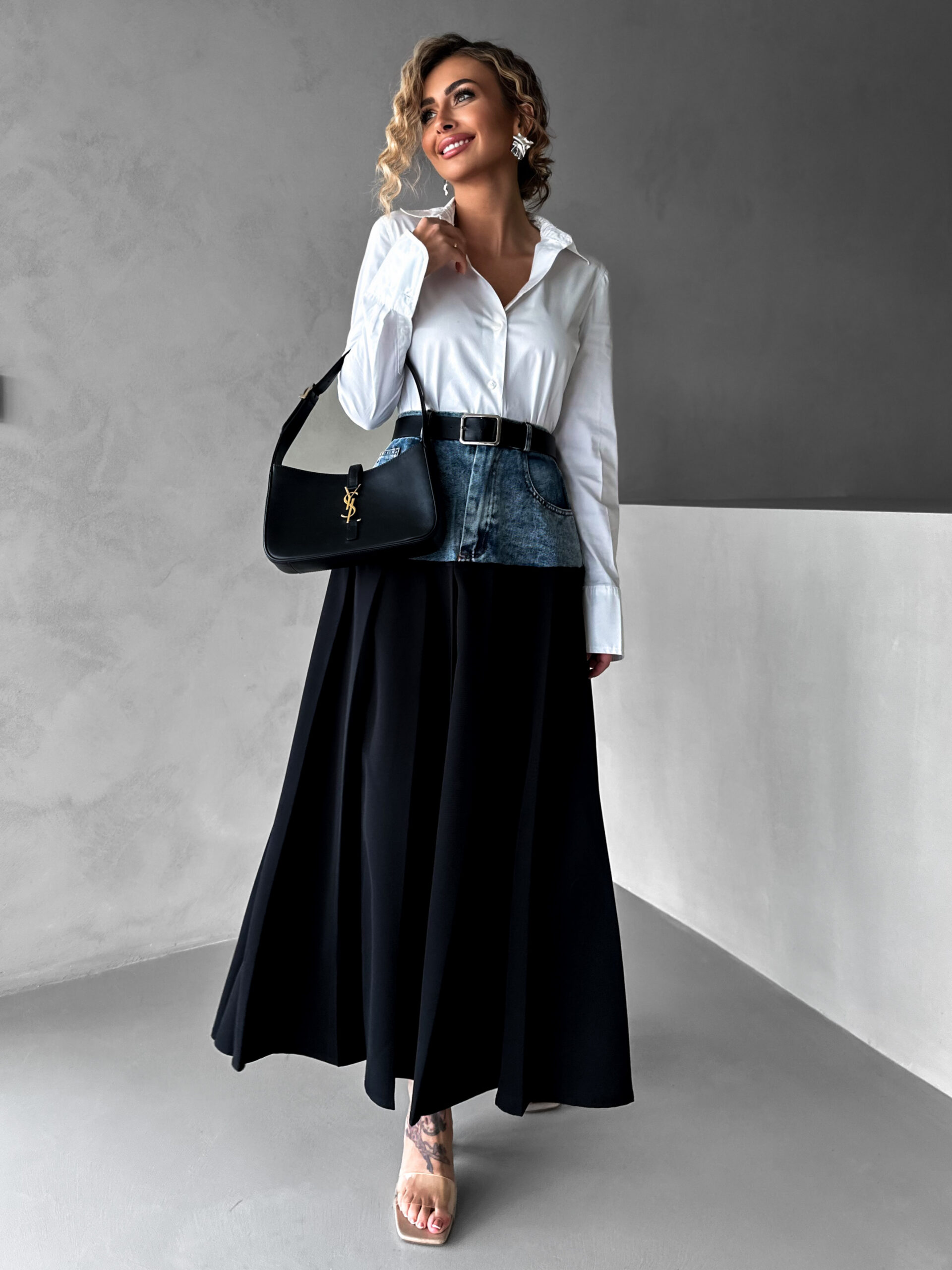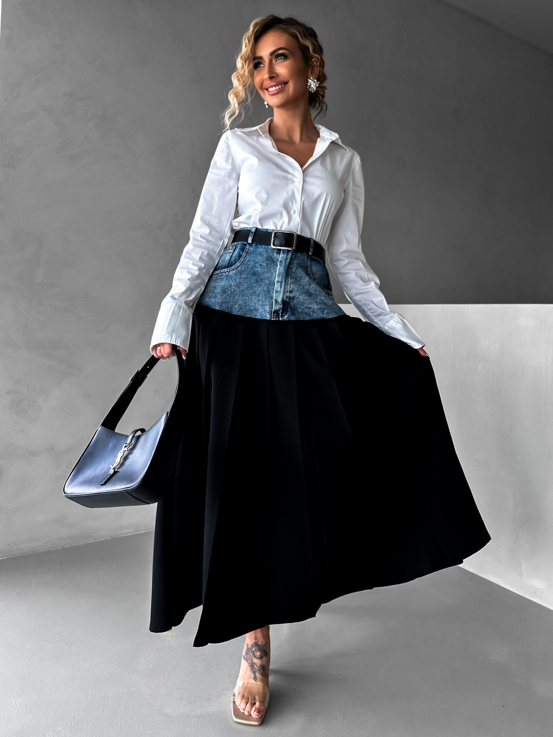 Černá plisovaná dlouhá sukně AUKE s denimem Velikost: S