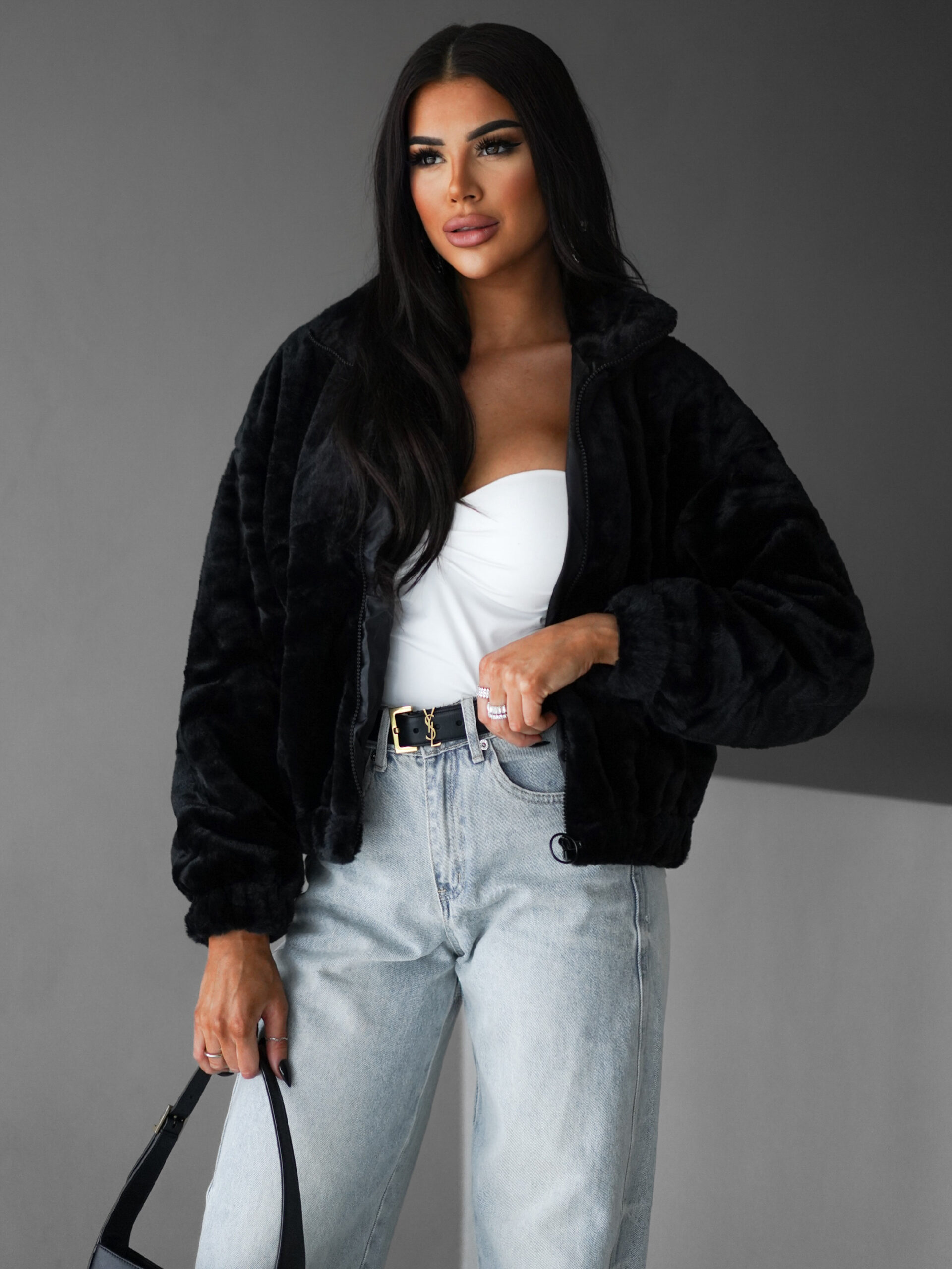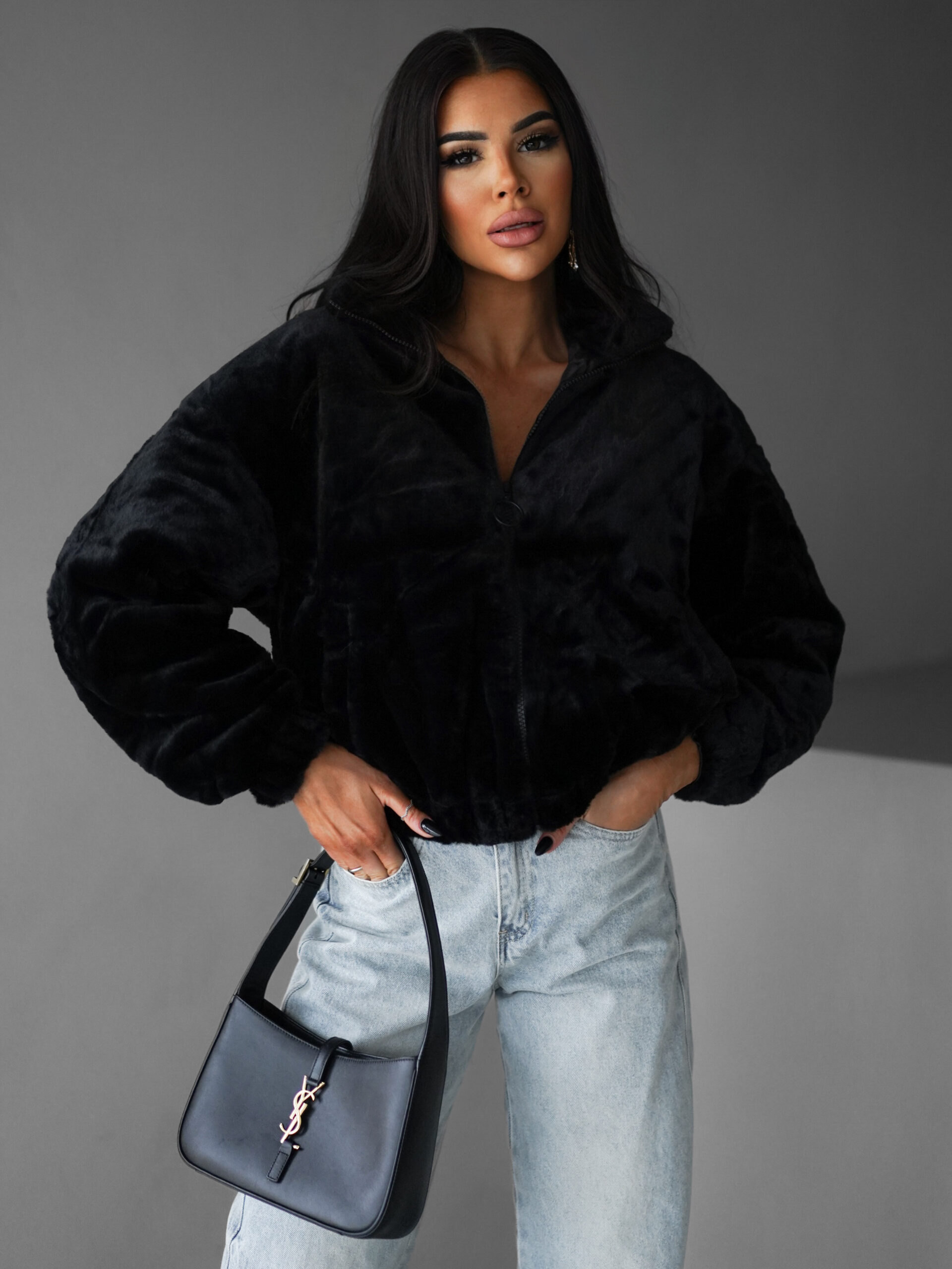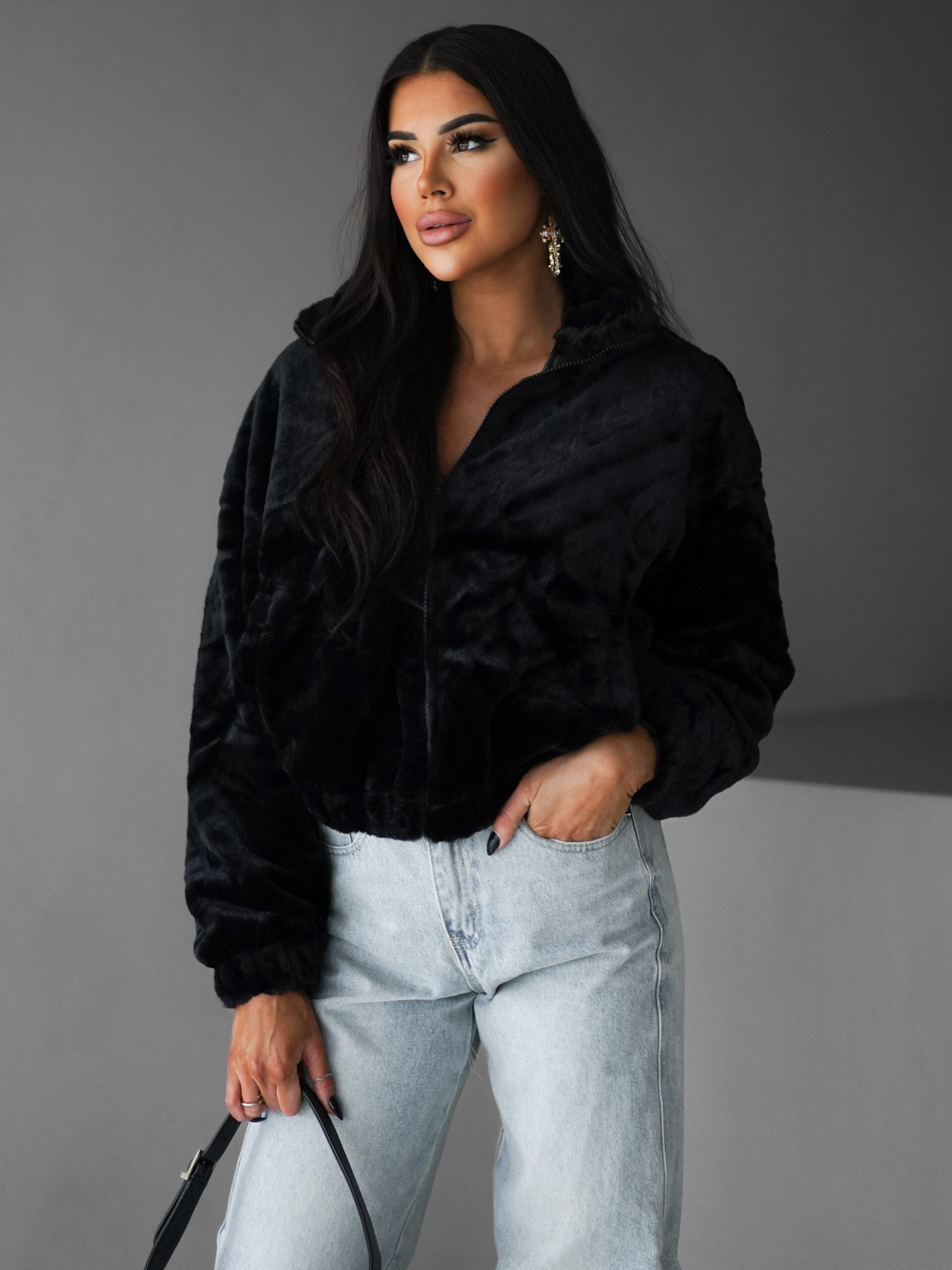 Černá plyšová mikina AZRIEL Velikost: L/XL