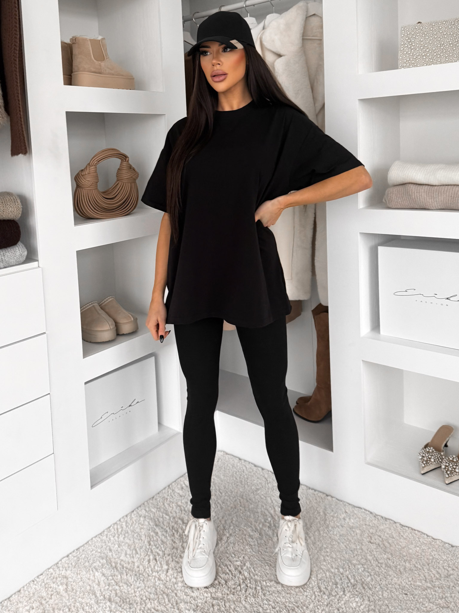 Černé bavlněné basic tričko LOVETE s krátkým rukávem Velikost: ONESIZE