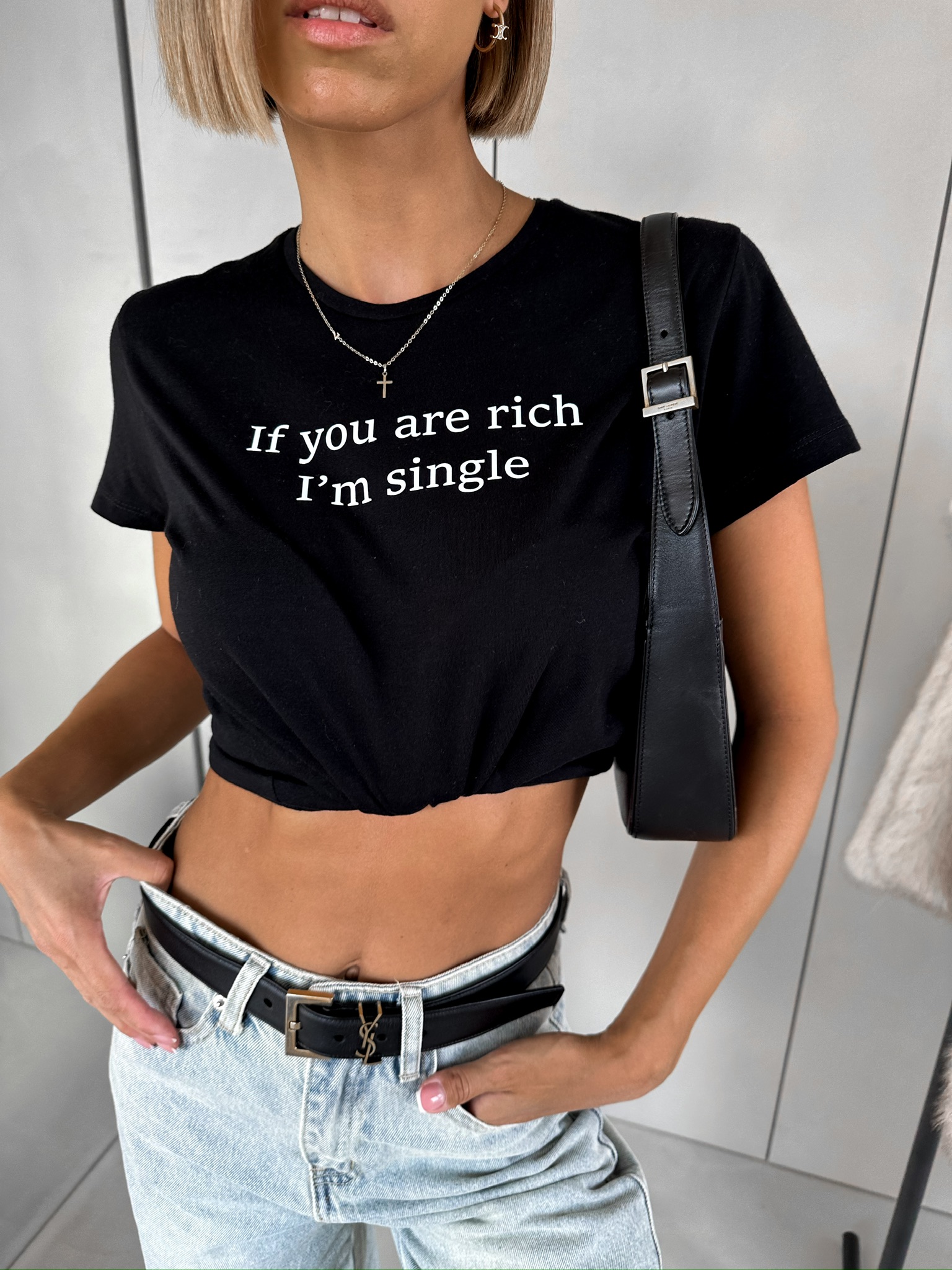 Černé bavlněné tričko RICHENZA If you are rich I'm single Velikost: ONESIZE