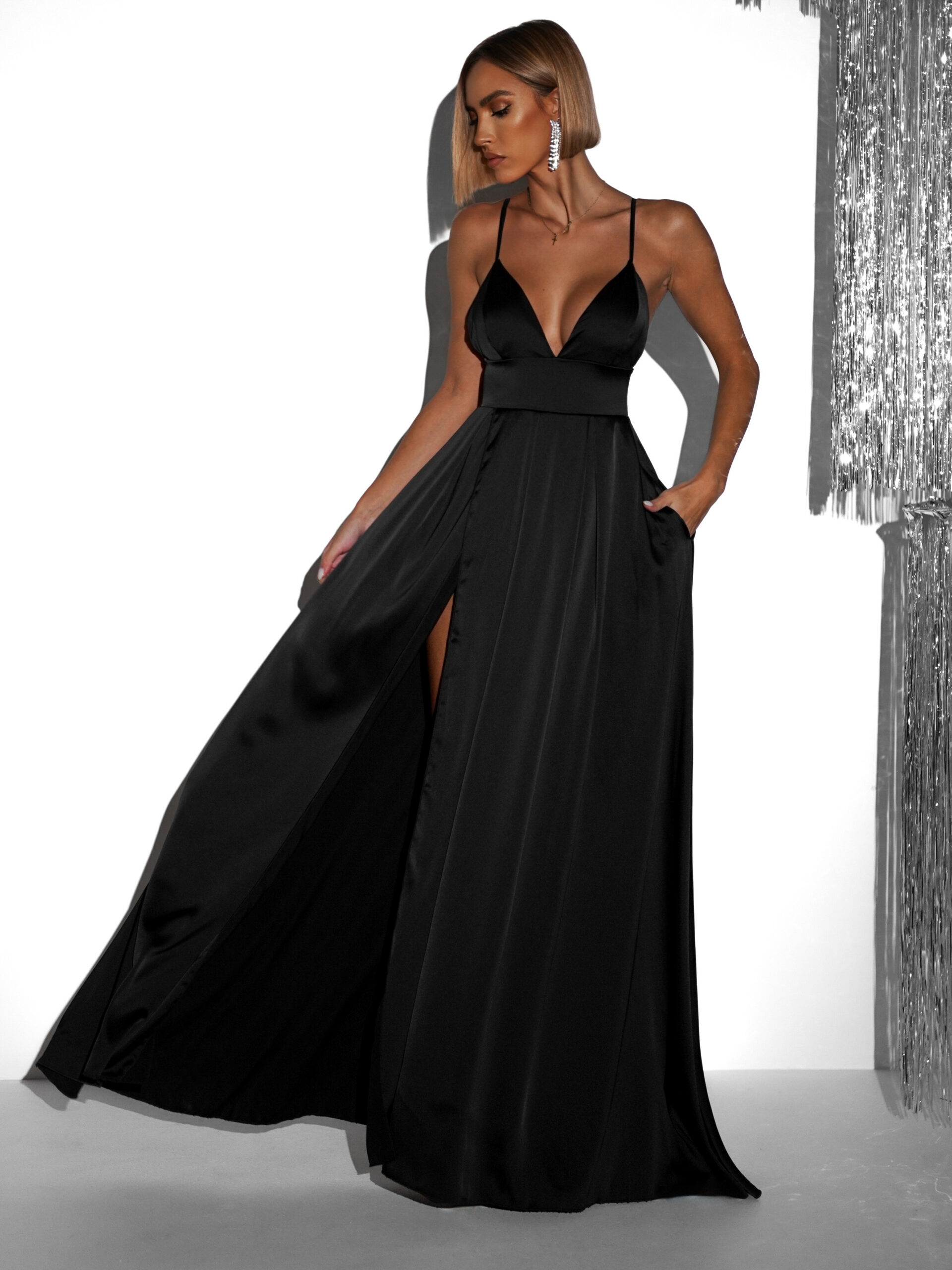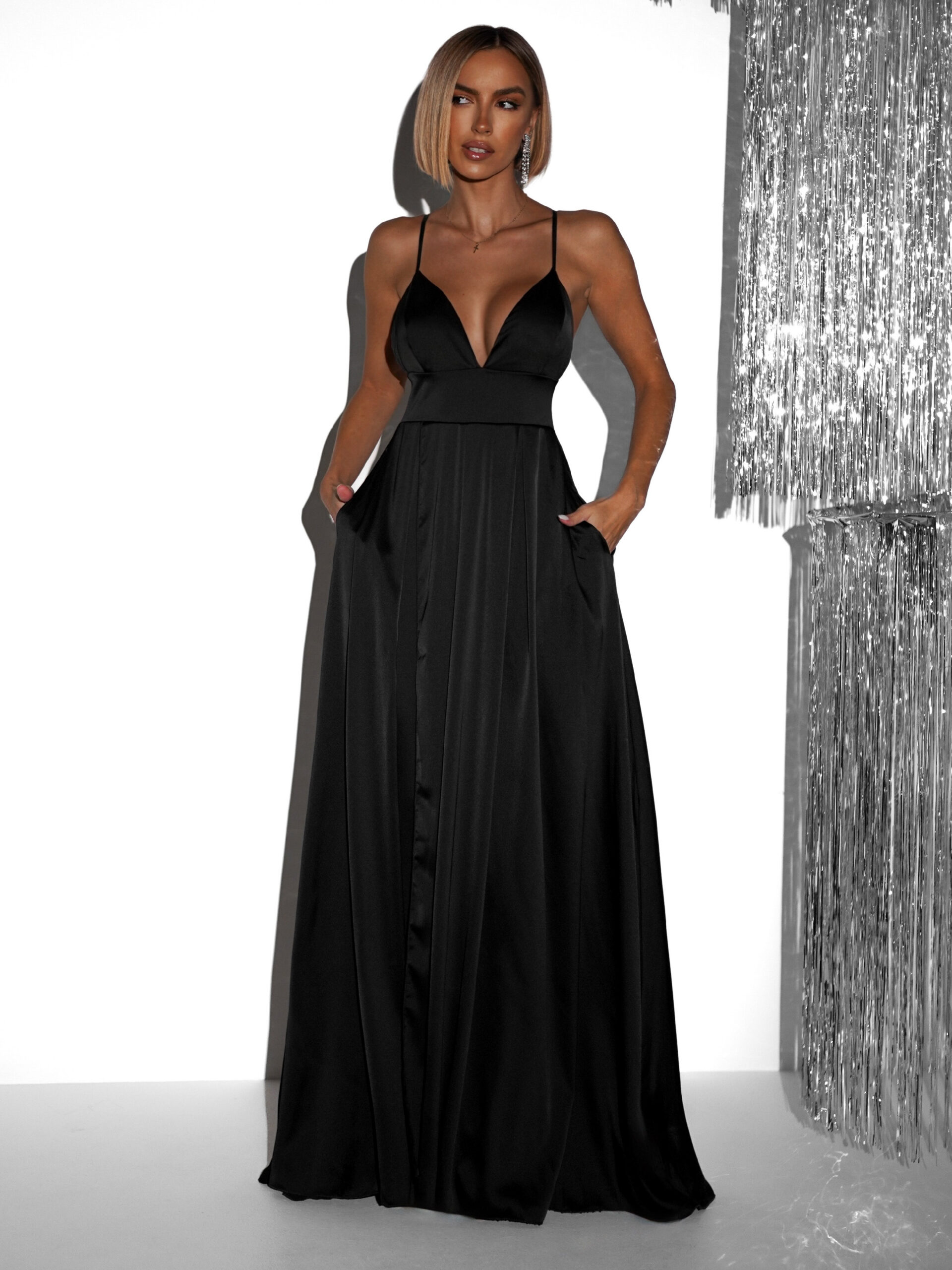 Černé dlouhé elegantní šaty BREALYN s kapsami Velikost: ONESIZE
