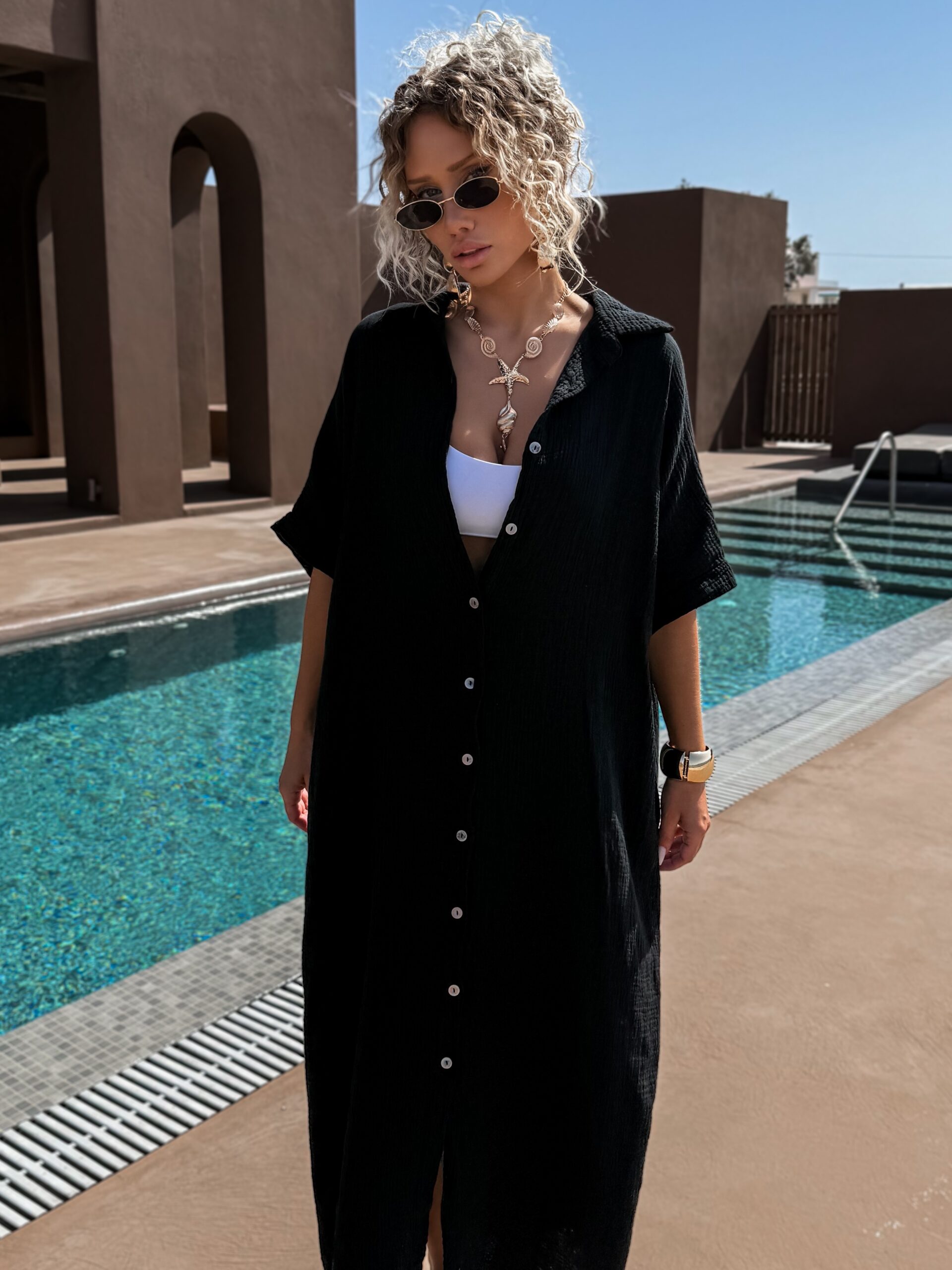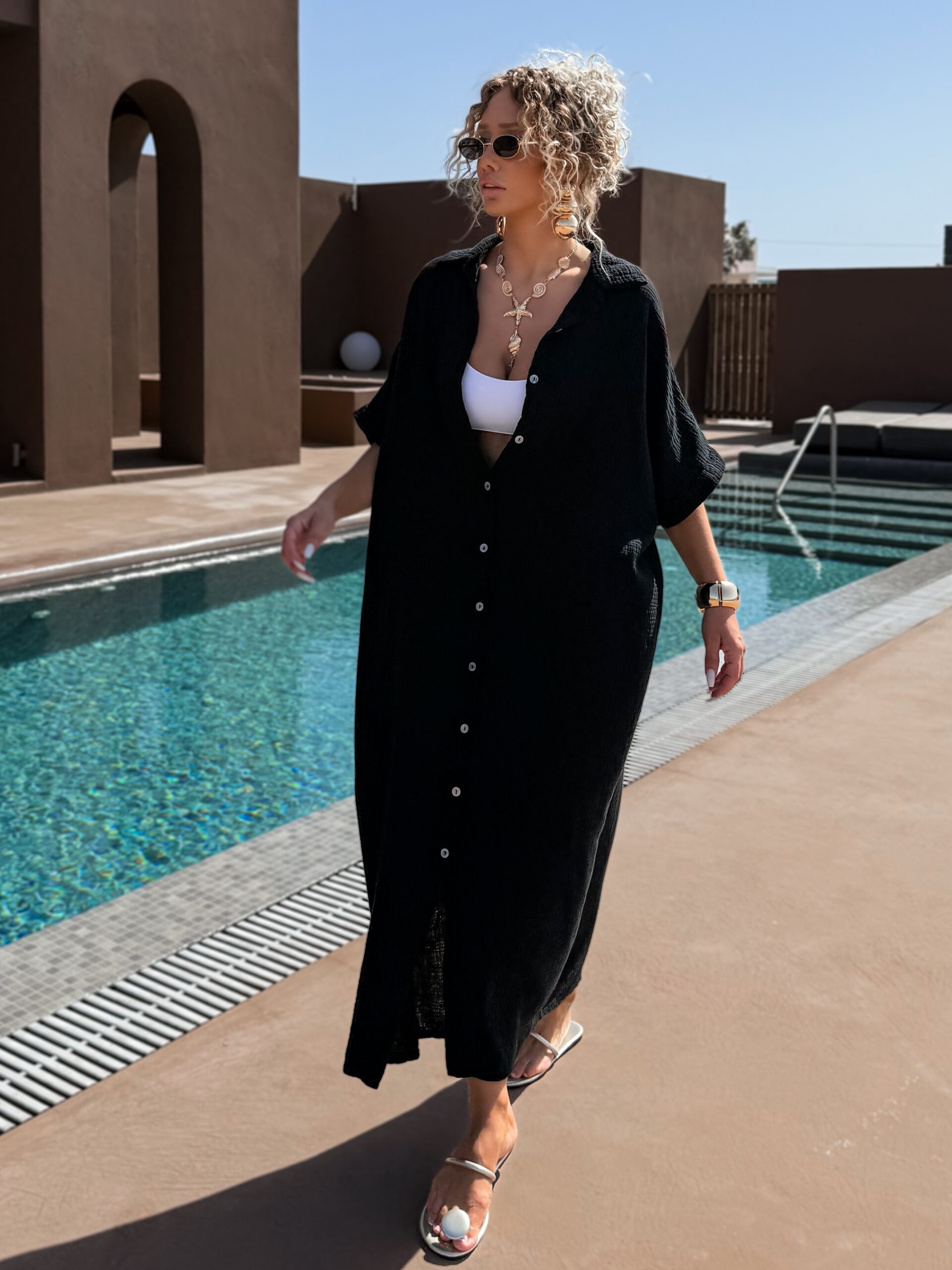 Černé dlouhé mušelínové košilové maxi šaty NUKET Velikost: ONESIZE