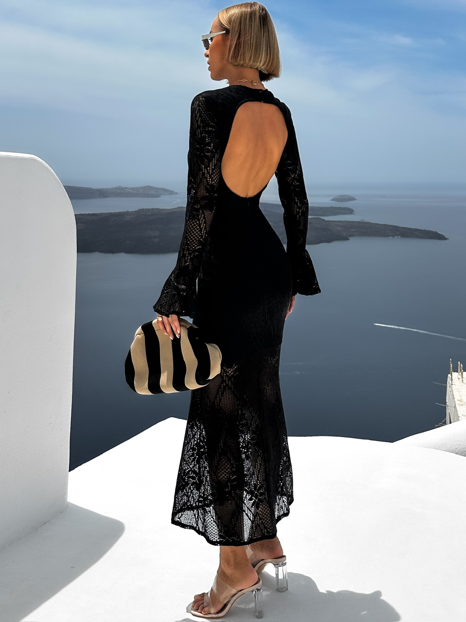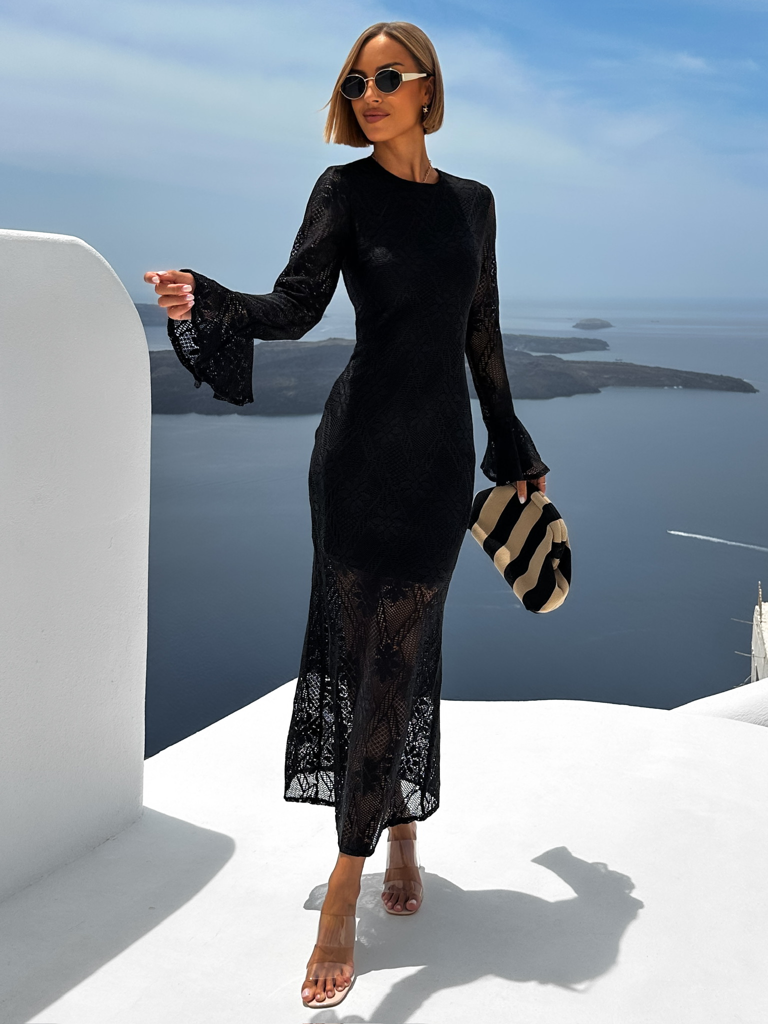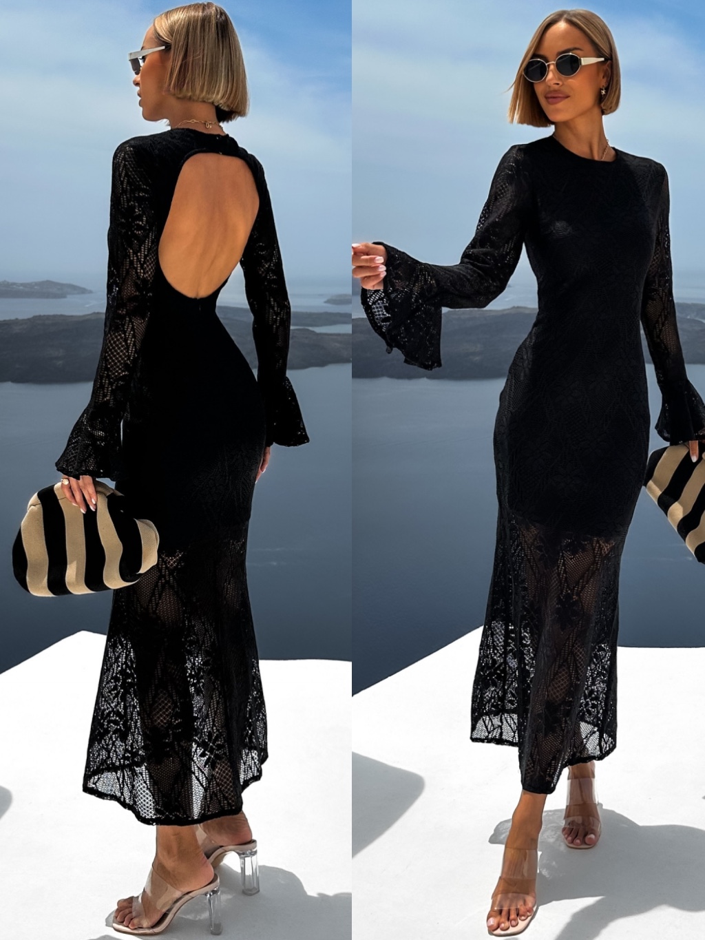 Černé dlouhé průhledné krajkované šaty JUNIOR Velikost: M/L