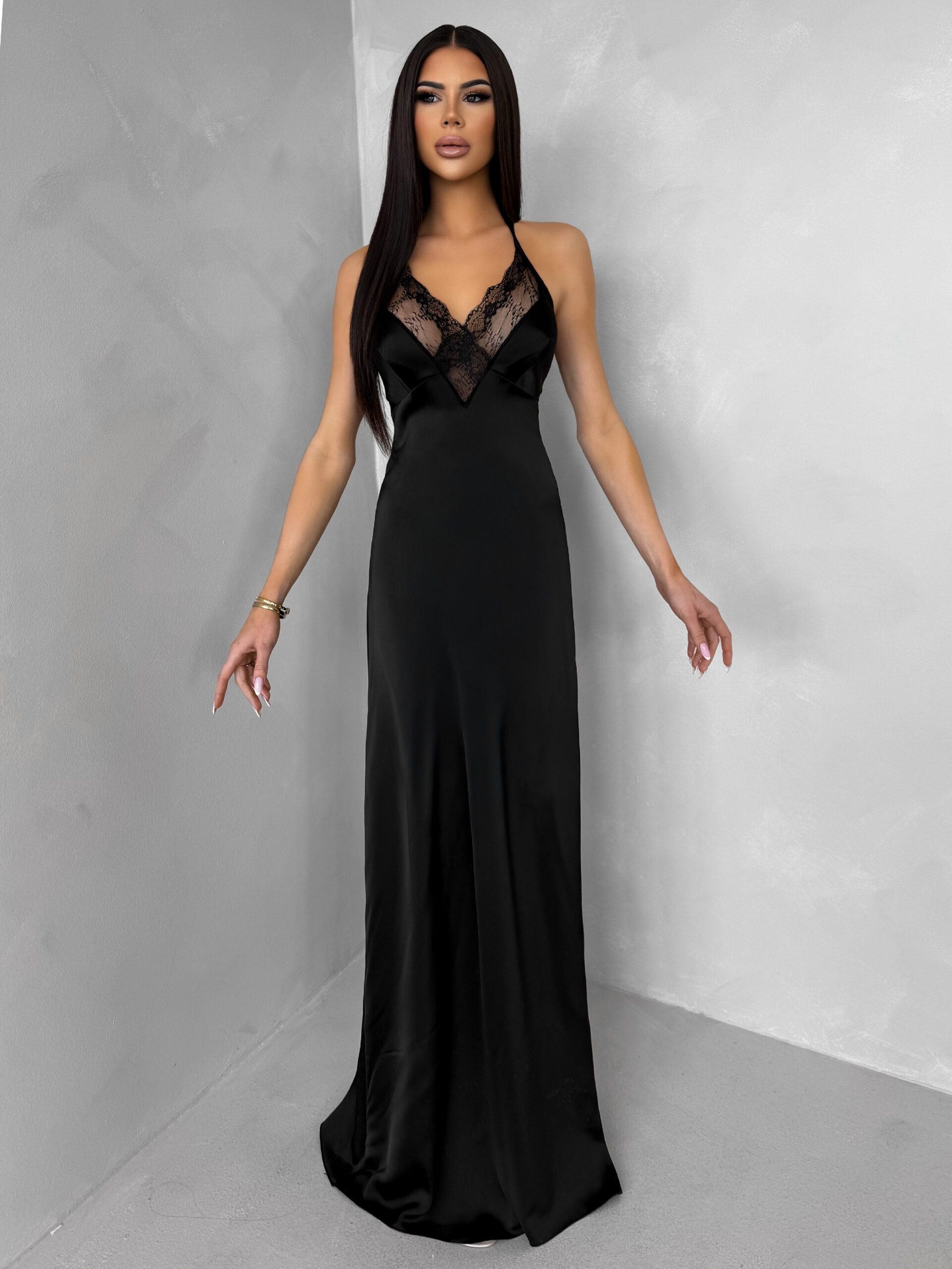 Černé dlouhé saténové šaty FORTYK s krajkou Velikost: ONESIZE