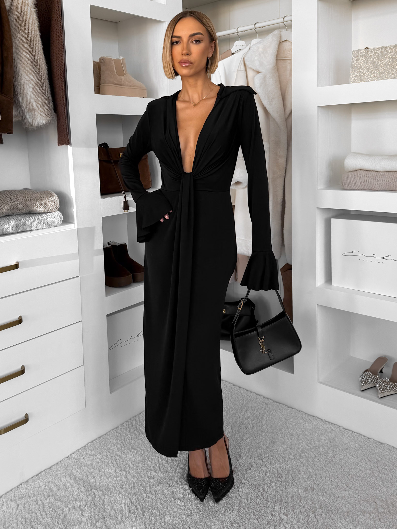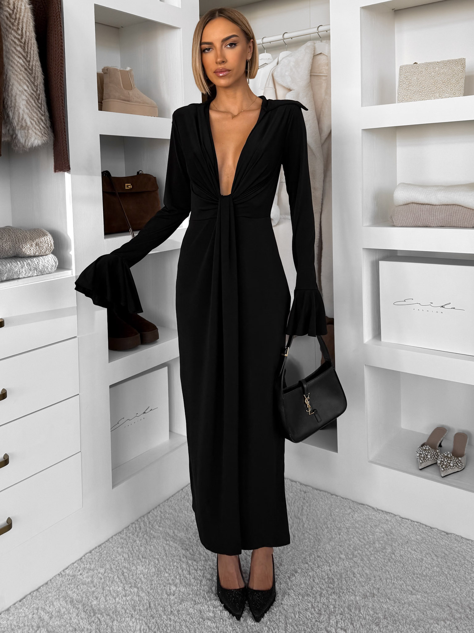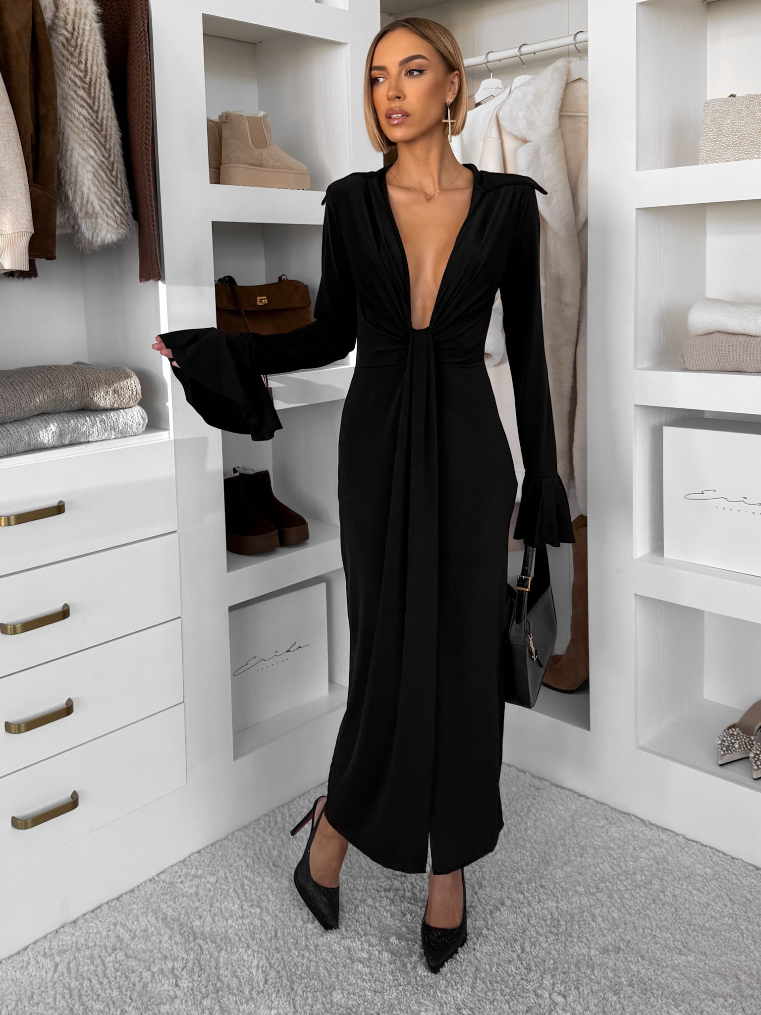 Černé dlouhé šaty OSTIVEN s hlubovým výstřihem Velikost: ONESIZE