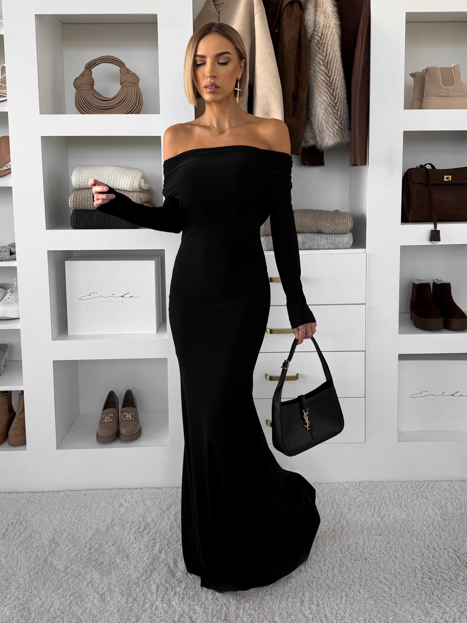 Černé dlouhé společenské přiléhavé šaty SYTRENO Velikost: ONESIZE