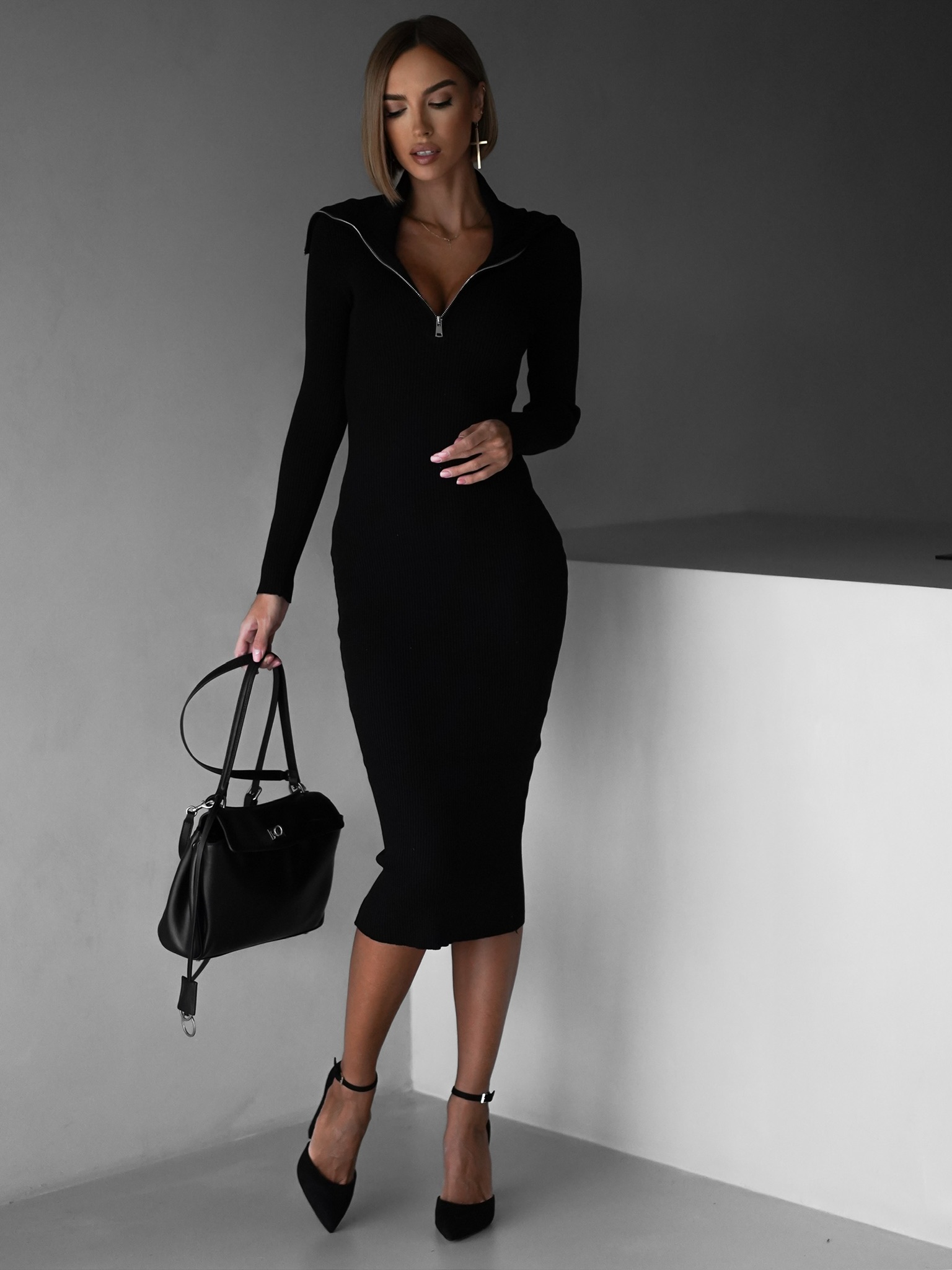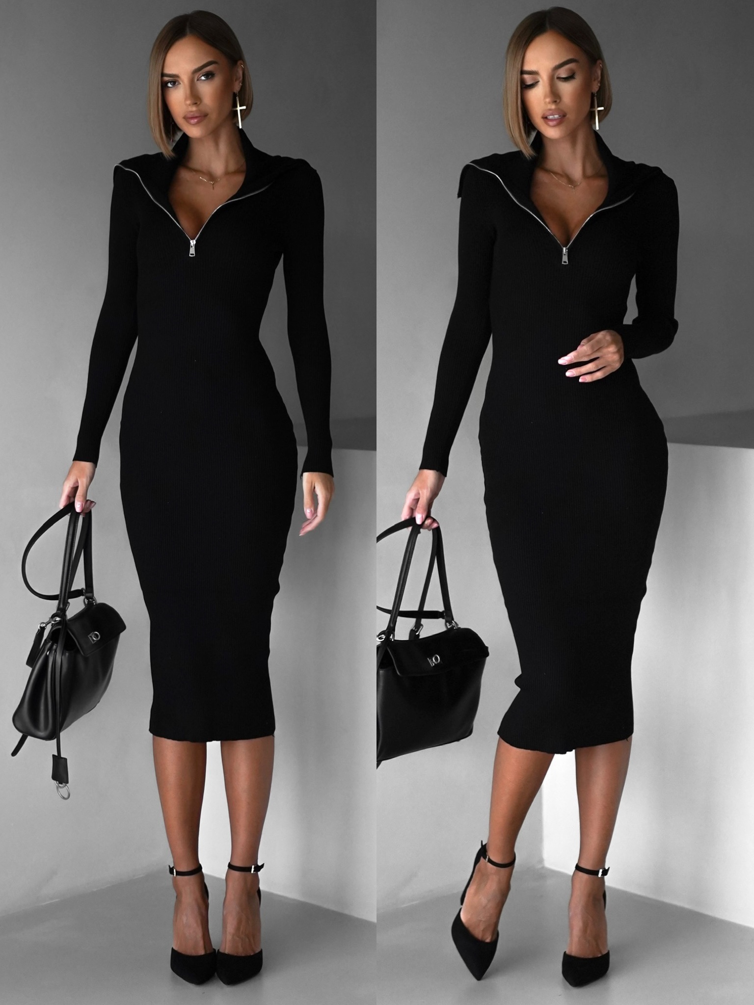 Černé dlouhé žerzejové šaty AILEL se zipem Velikost: S/M