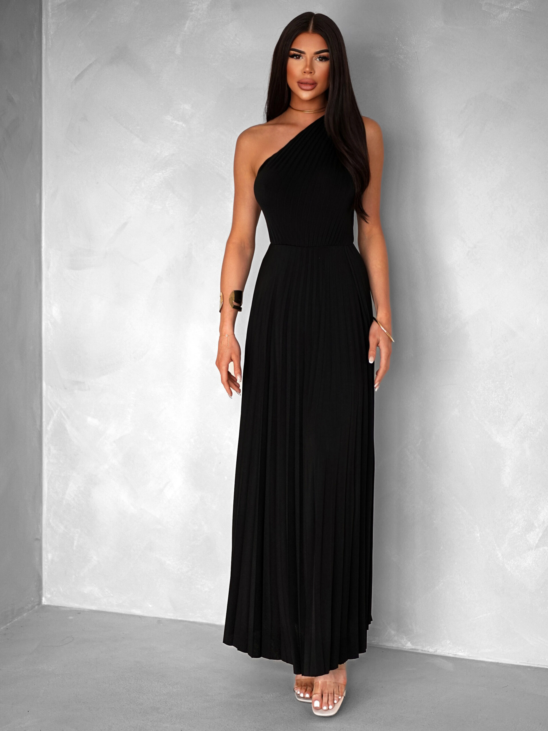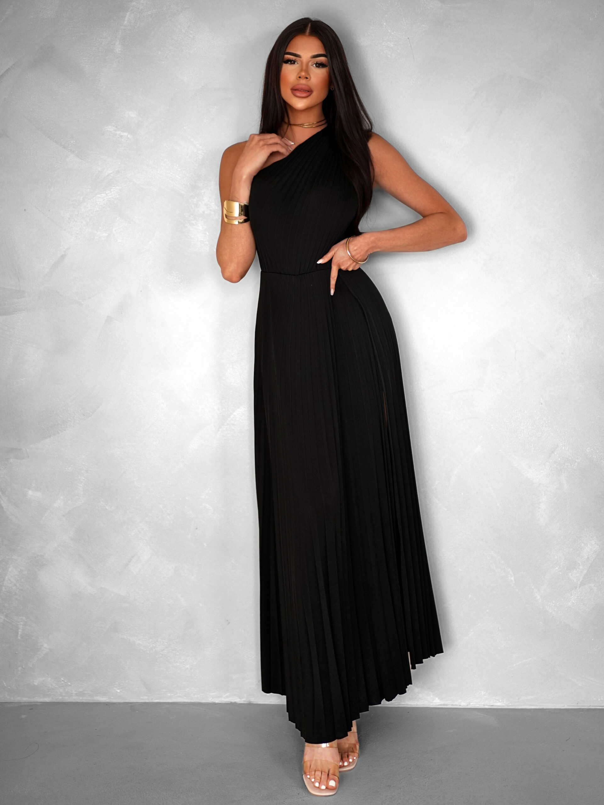 Černé elegantní dlouhé plisované šaty OLIVIE Velikost: ONESIZE