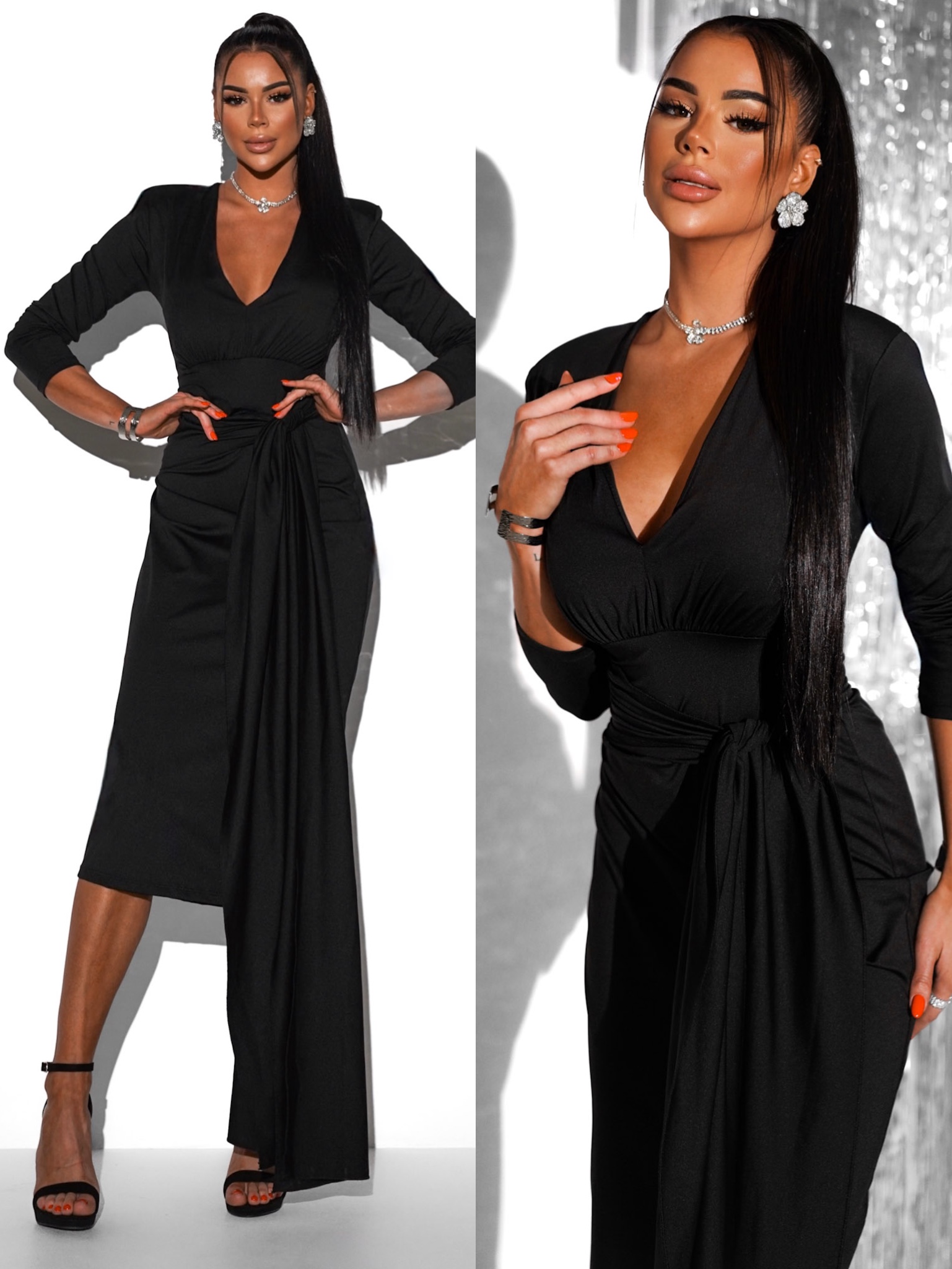 Černé elegantní šaty AUTIS s výstřihem Velikost: ONESIZE