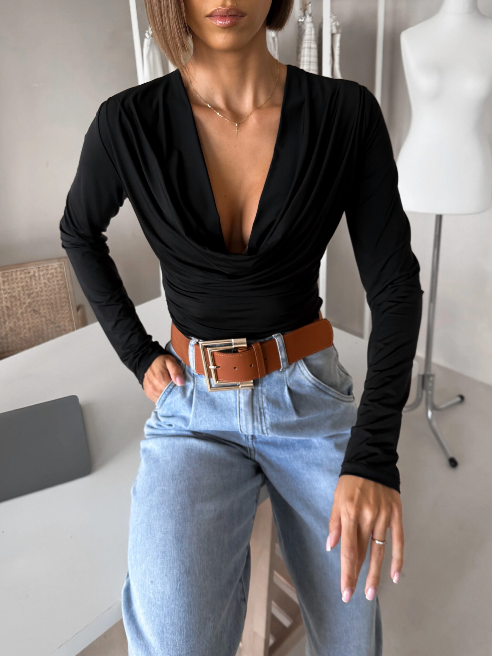 Černé elegantní triko CALIRA s výstřihem Velikost: ONESIZE