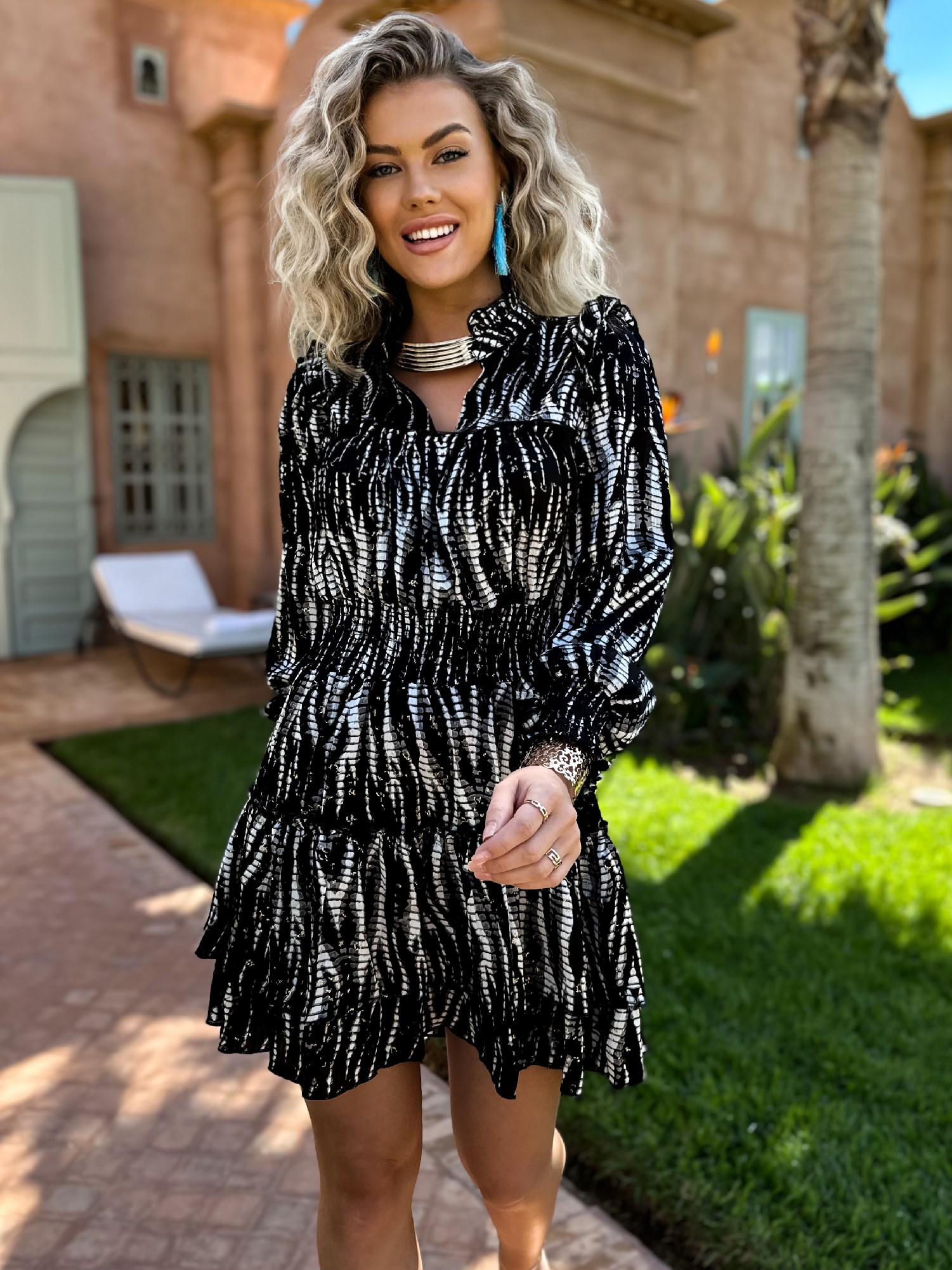 Černé krátké košilové šaty EMIRKAN s volány Velikost: M